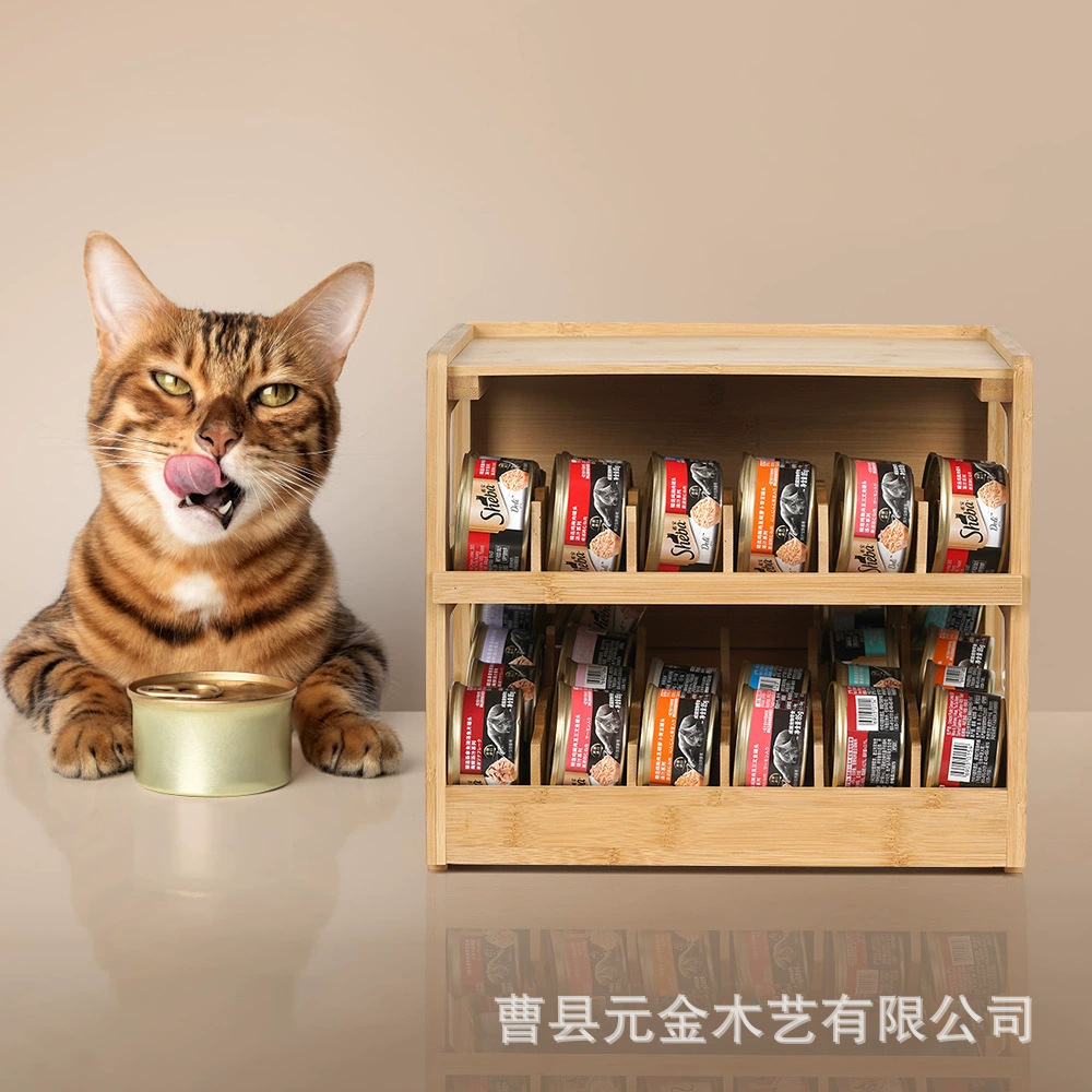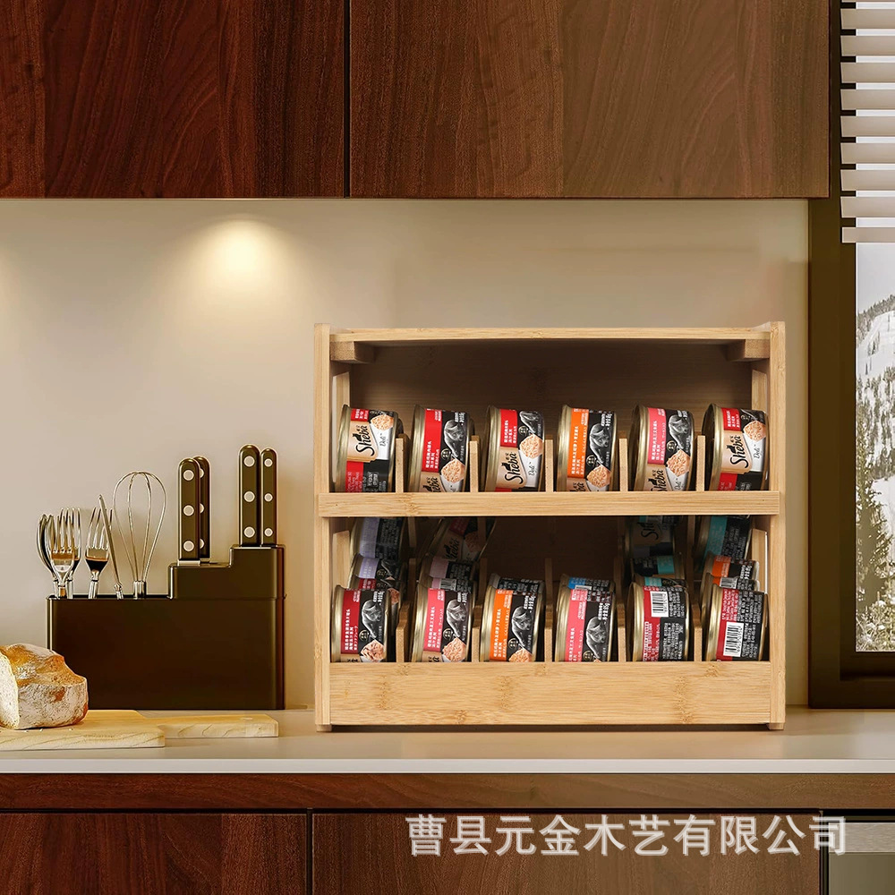 국경 간 대나무 고양이 캔 보관 랙 애완 동물 캔 랙 식품 스낵 보관 캔 랙 대나무 주방 보관 랙스토어 가기