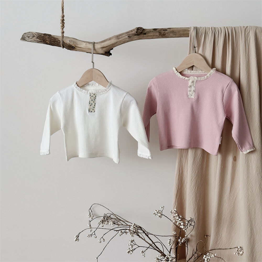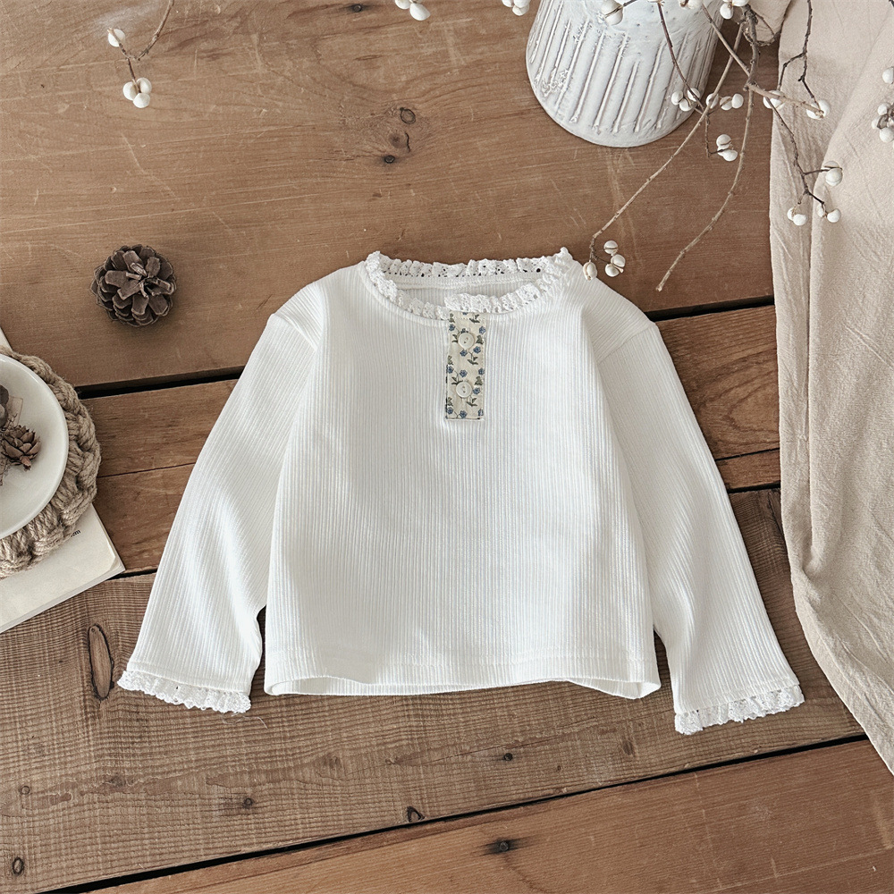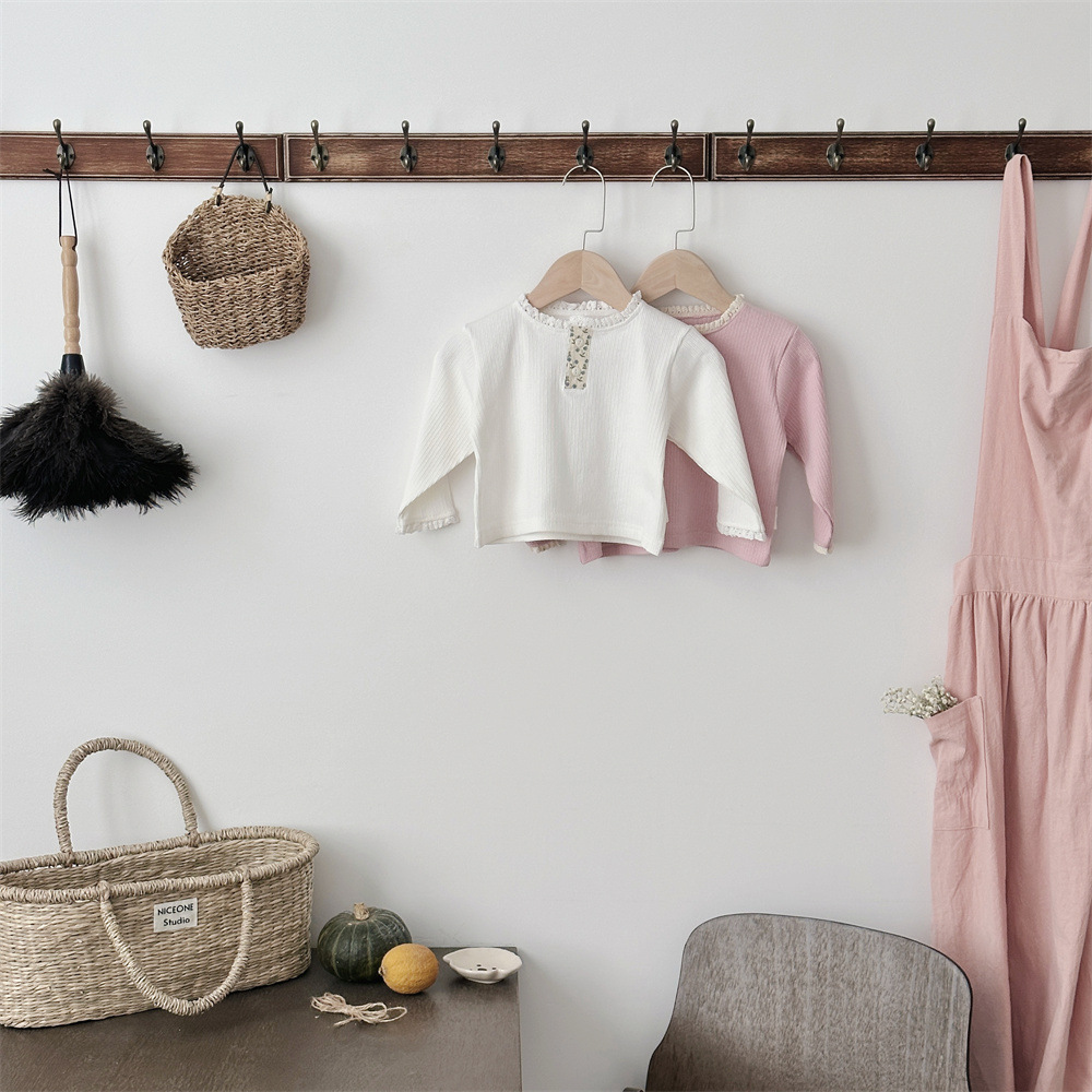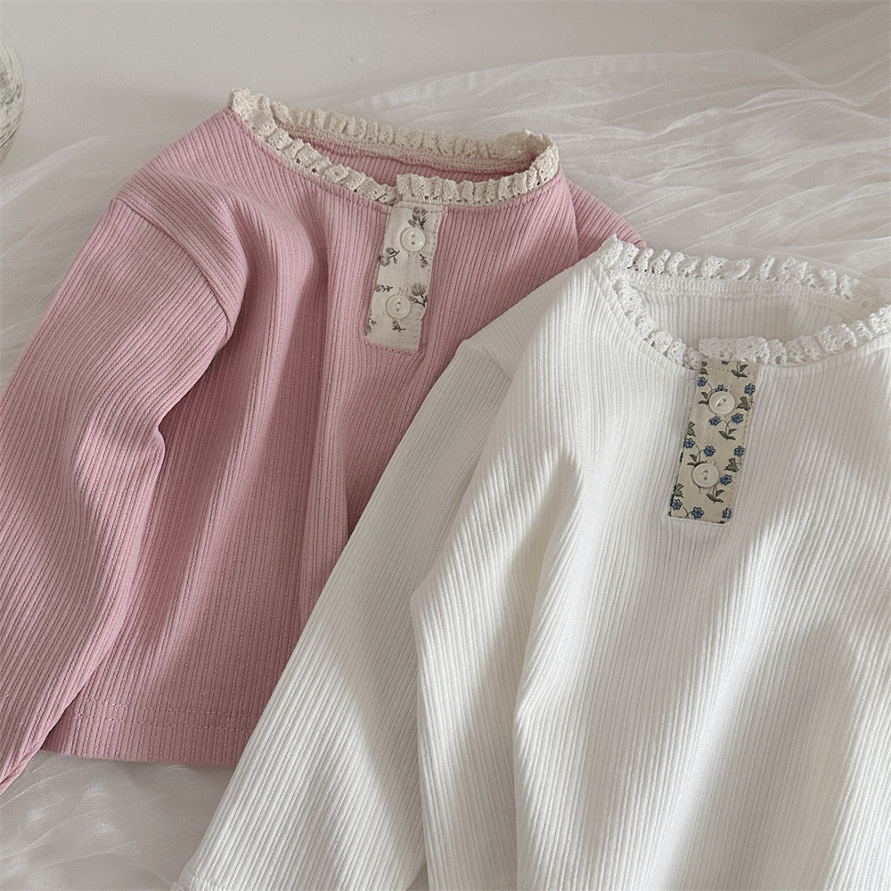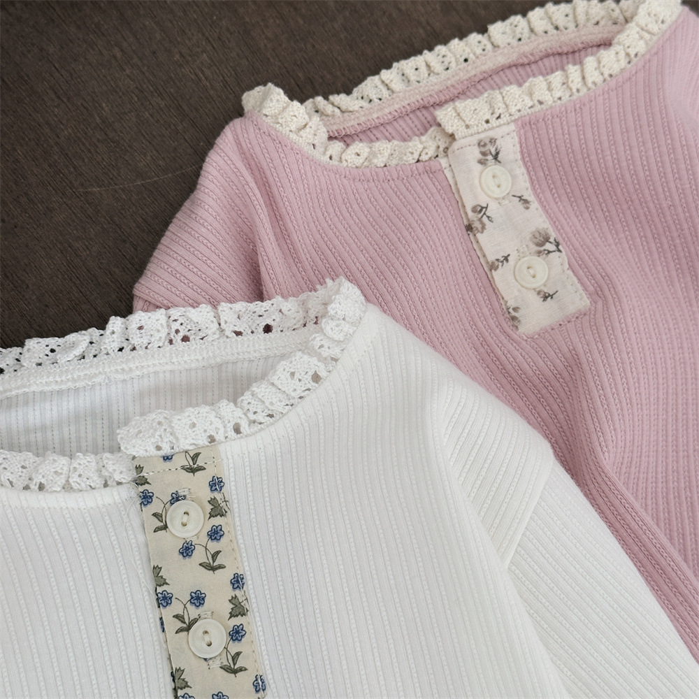 INS 봄과 가을 아기 레이스 칼라 핏 스트레치 티셔츠 여성용 보물 꽃 봉쇄 긴 소매베이스 셔츠스토어 가기