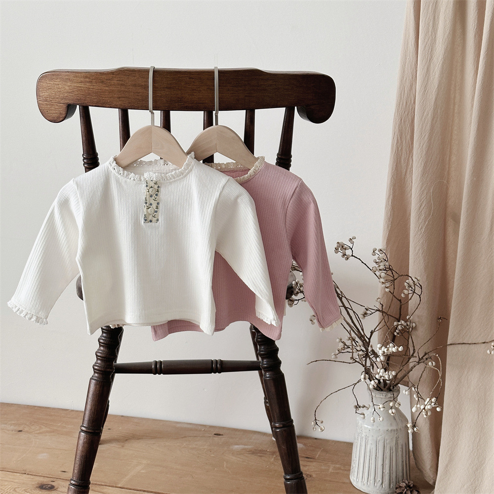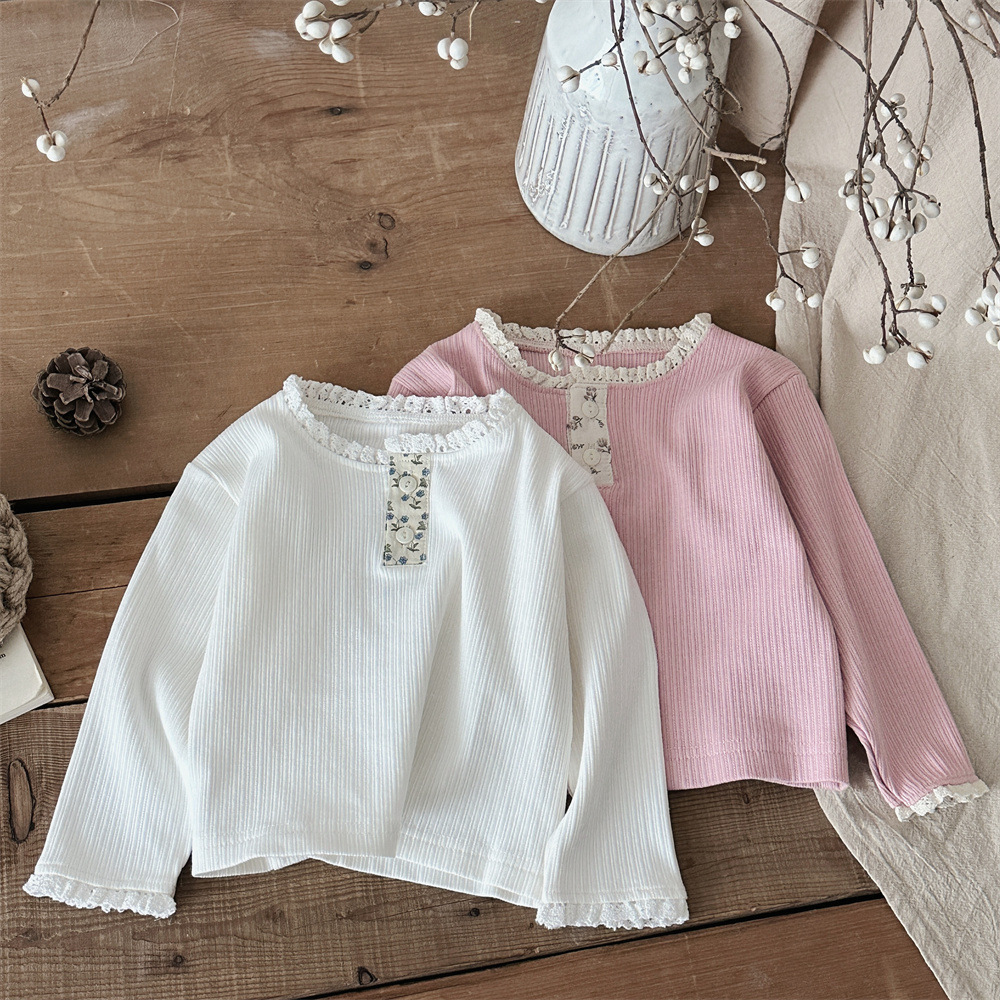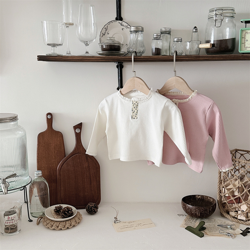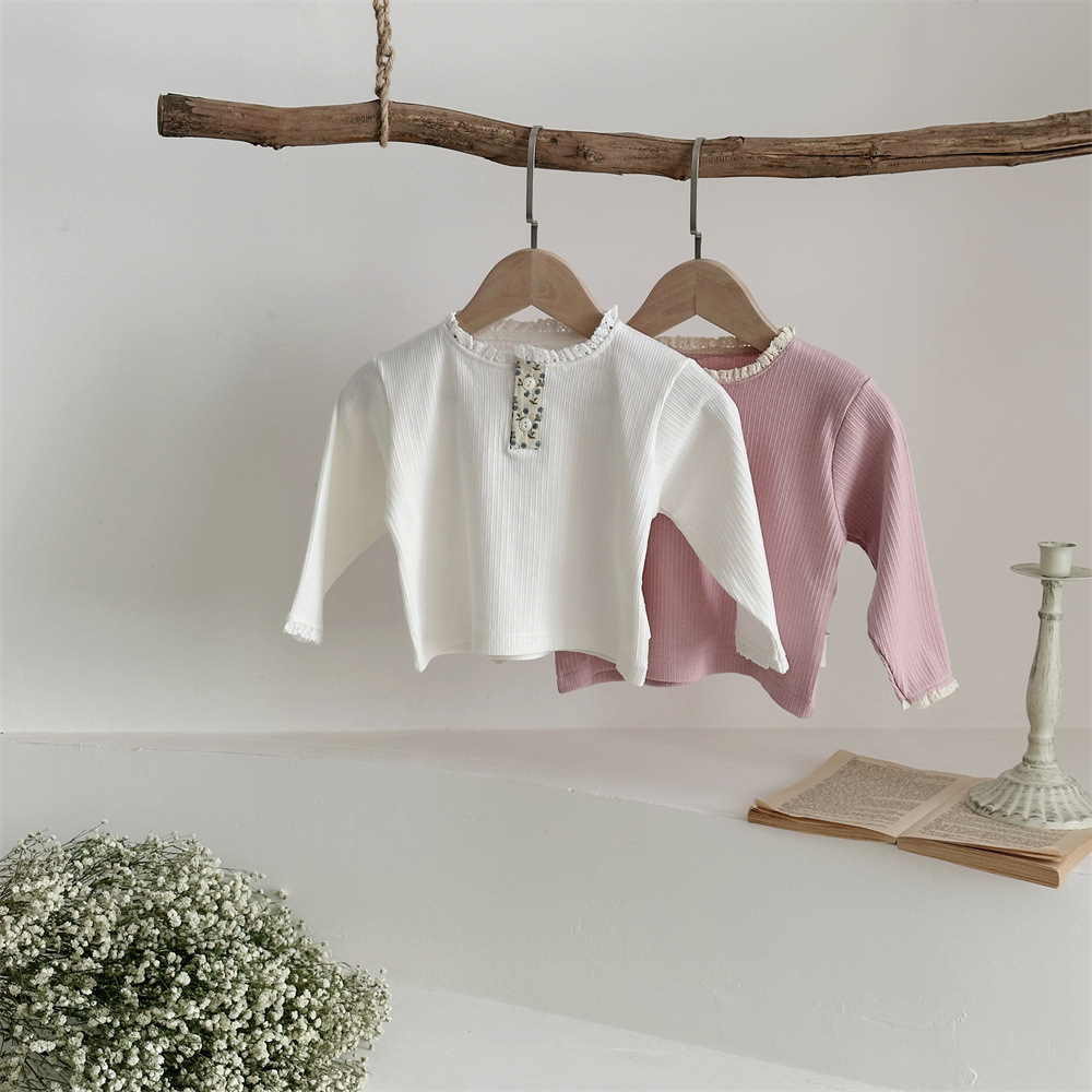 INS 봄과 가을 아기 레이스 칼라 핏 스트레치 티셔츠 여성용 보물 꽃 봉쇄 긴 소매베이스 셔츠스토어 가기