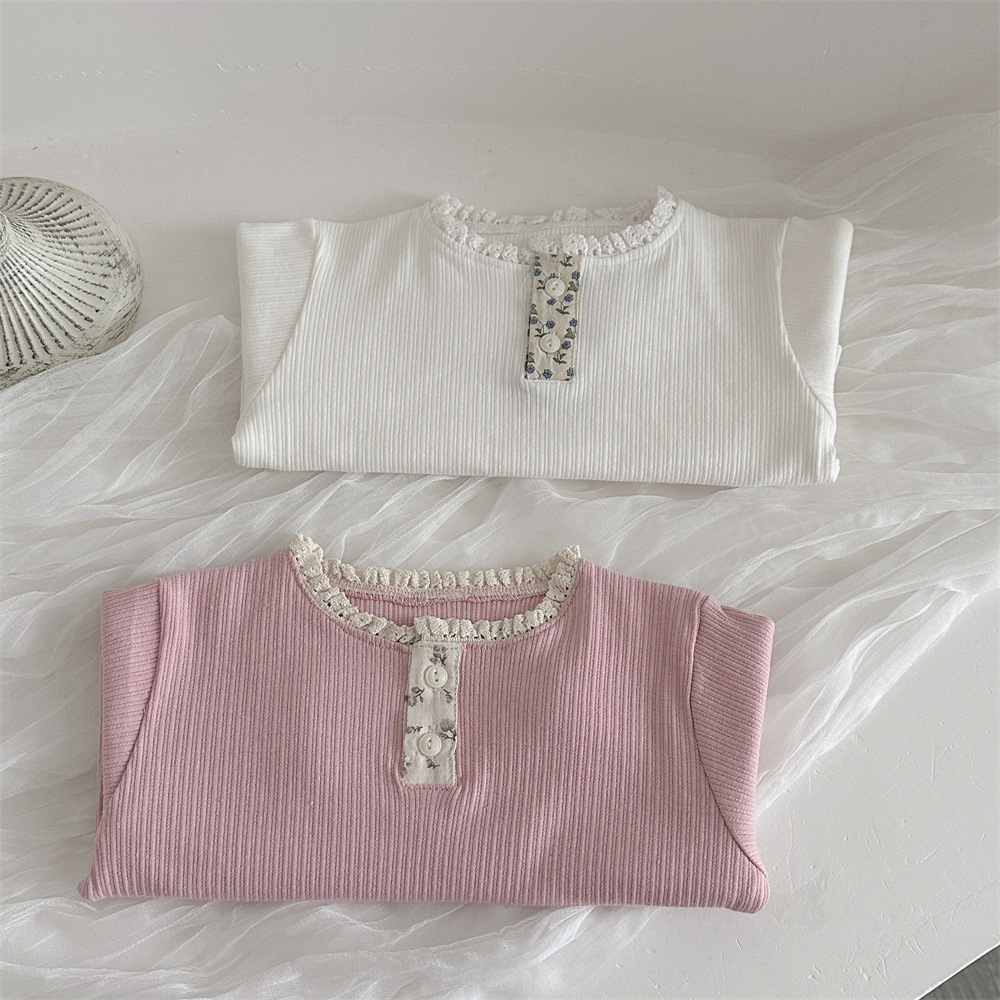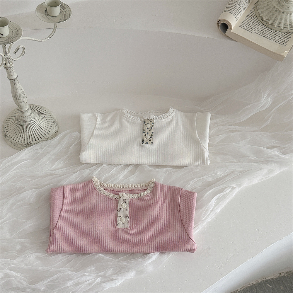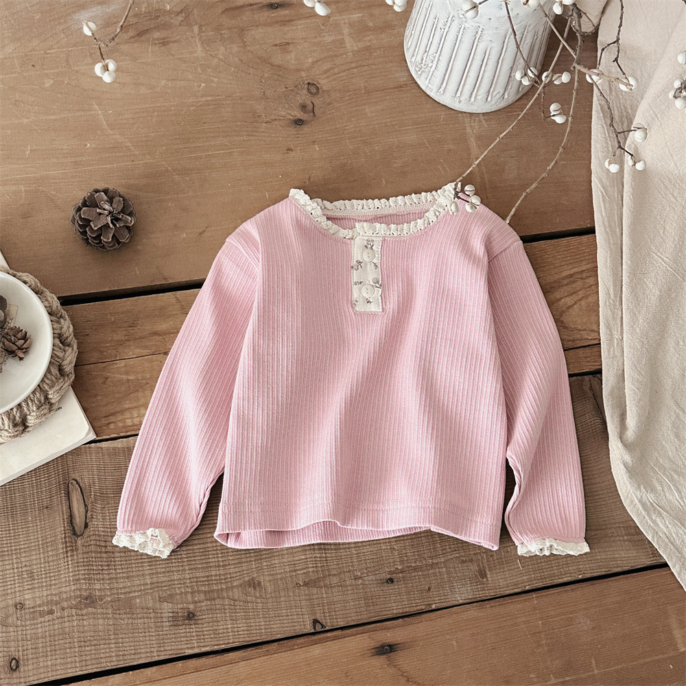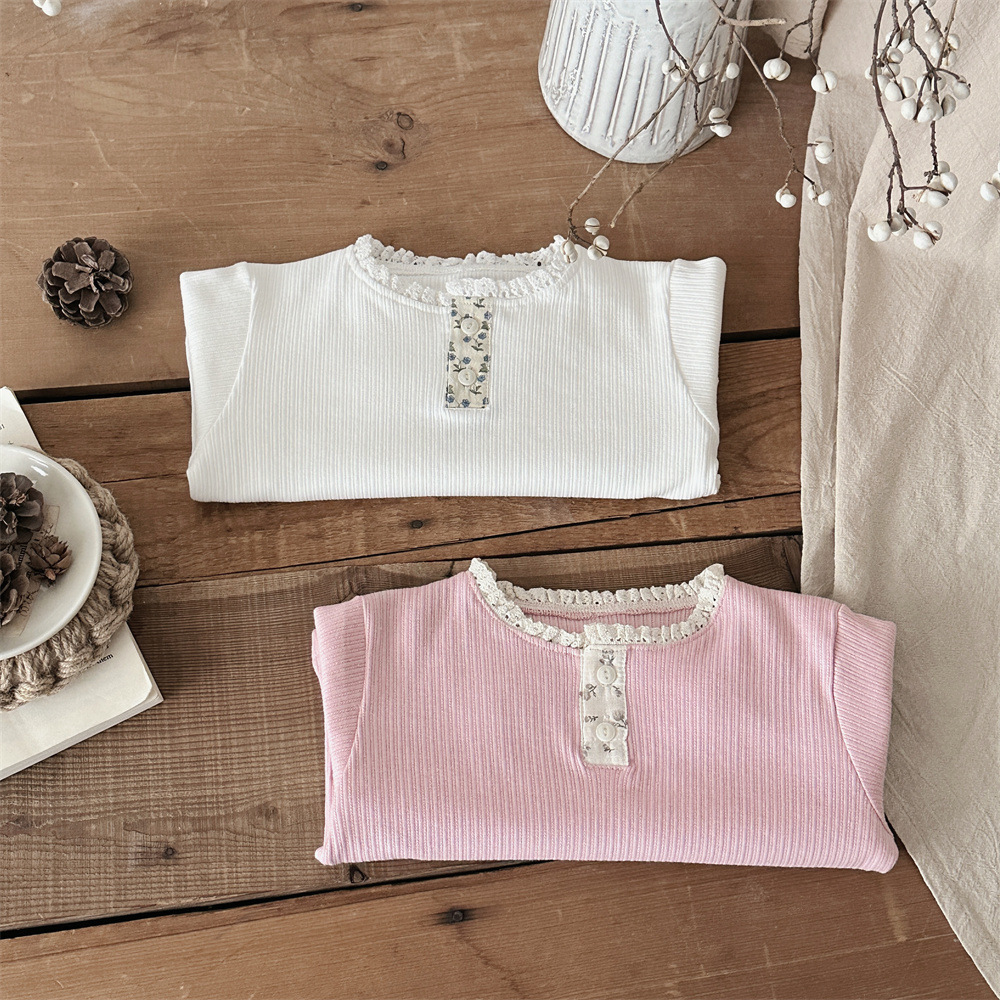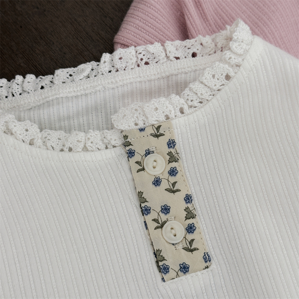 INS 봄과 가을 아기 레이스 칼라 핏 스트레치 티셔츠 여성용 보물 꽃 봉쇄 긴 소매베이스 셔츠스토어 가기