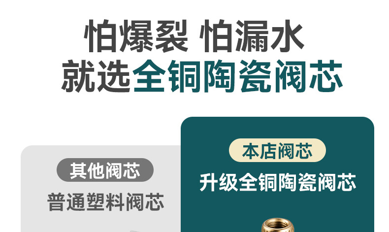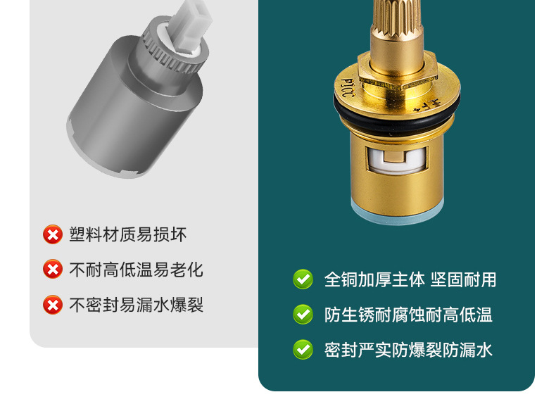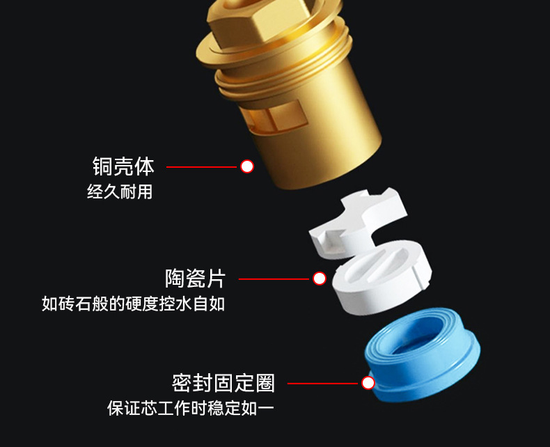 범용 모든 구리 4 점 주방 고온 및 냉간 수도꼭지 밸브 코어 고온 저항 두꺼운 빠른 개방 세라믹 수도꼭지 밸브 코어