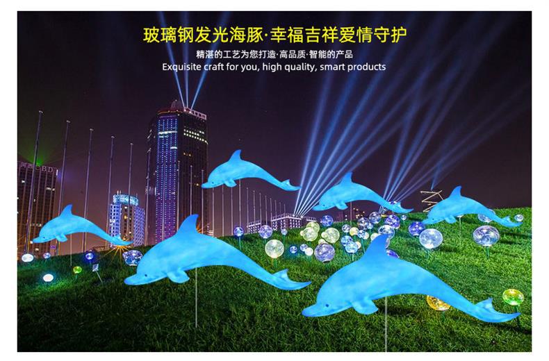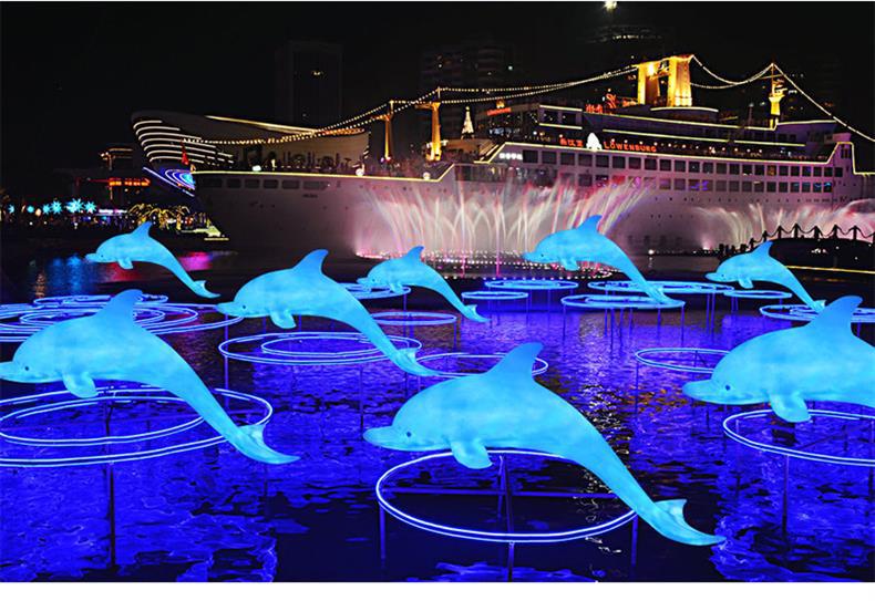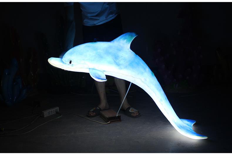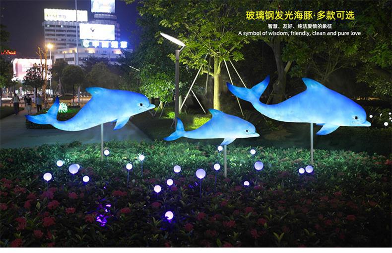 빛나는 시뮬레이션 돌고래 조각 수족관 장식품 야외 공원 숲 학교 분수 동물 램프 모델 장식품
