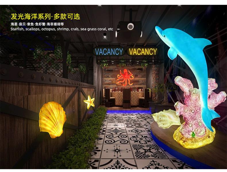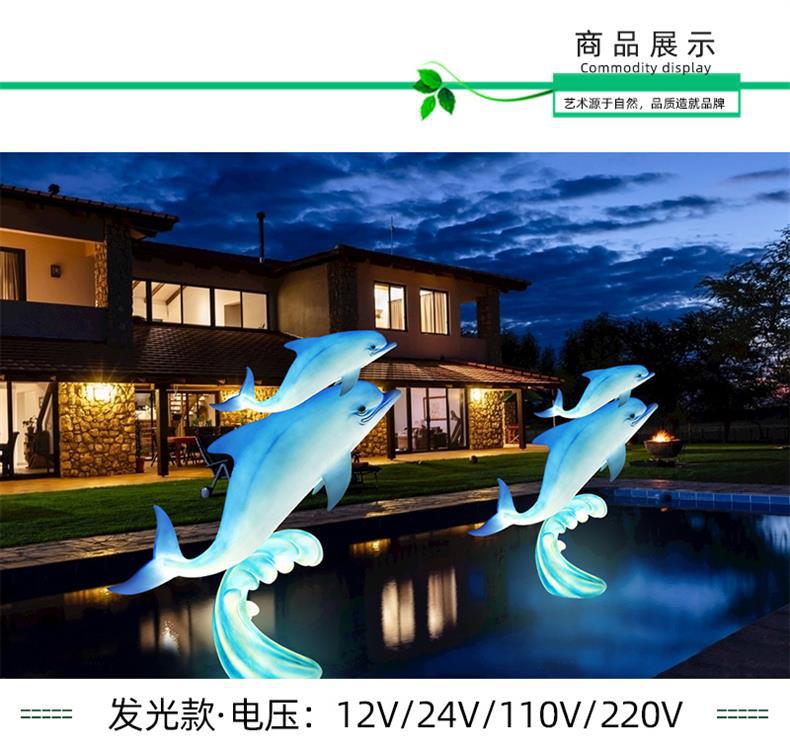 빛나는 시뮬레이션 돌고래 조각 수족관 장식품 야외 공원 숲 학교 분수 동물 램프 모델 장식품스토어 가기