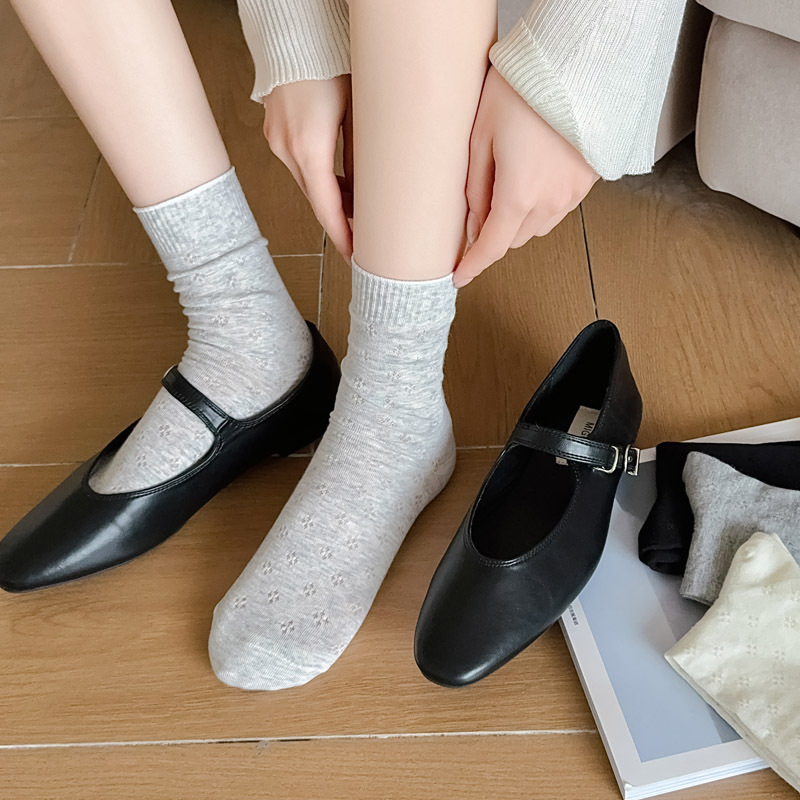 봄과 여름 얇은 양말 여성용 할로우 아웃 4 잎 클로버 트렌디 미드 튜브 여성용 양말 크림 화이트 메쉬 뼈없는 코튼 스택 양말스토어 가기