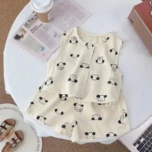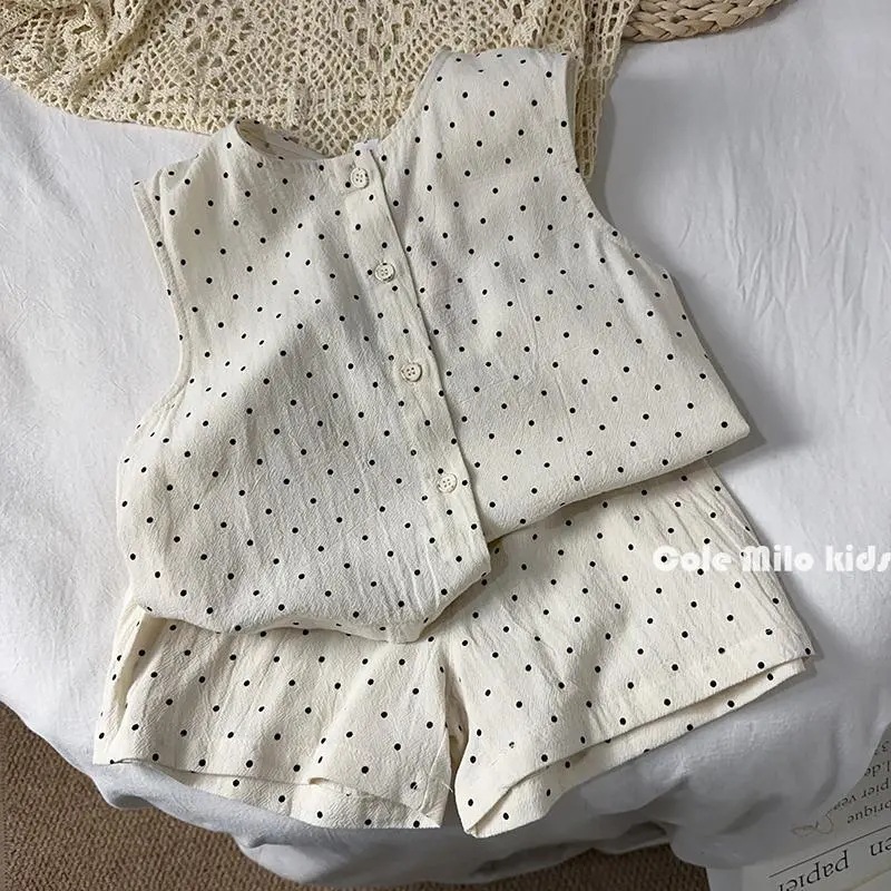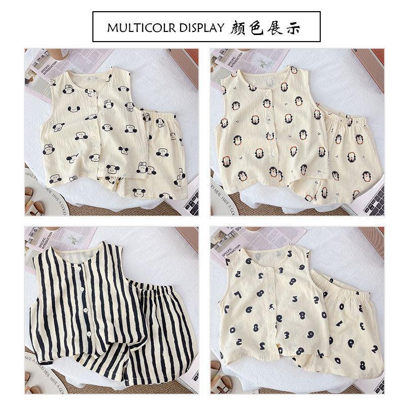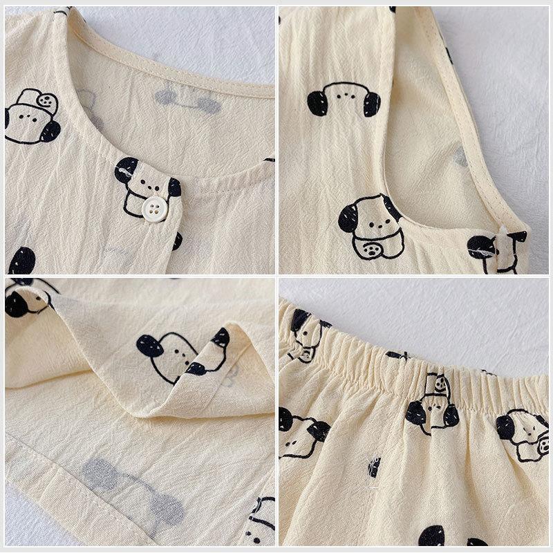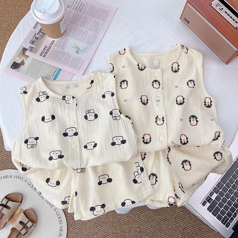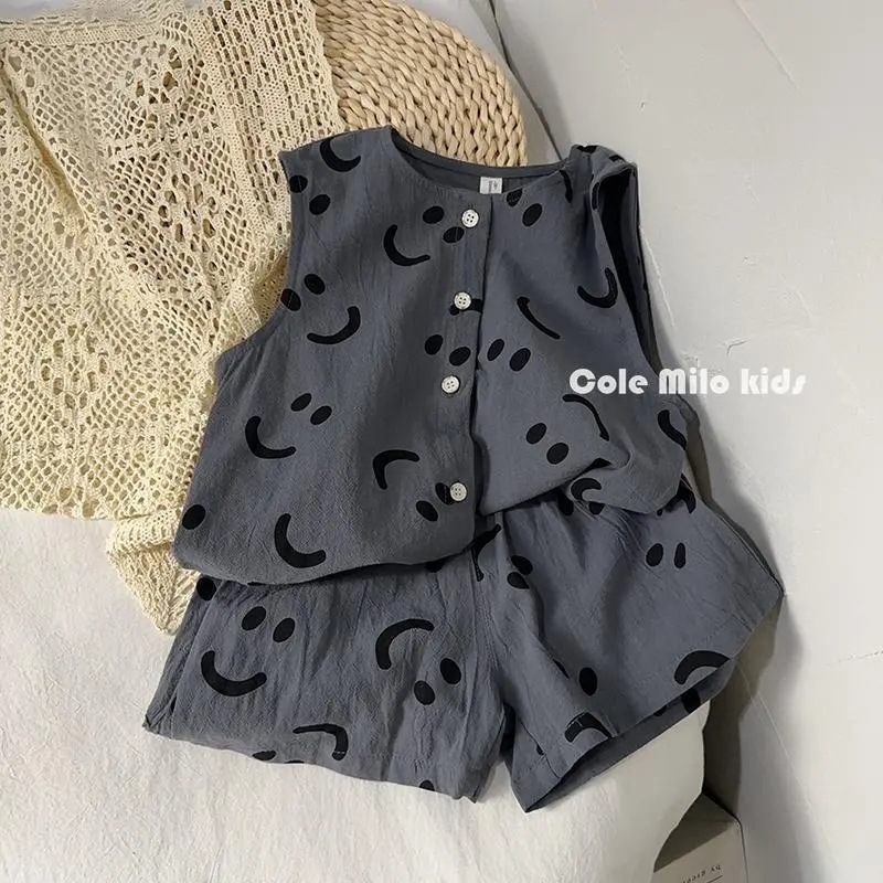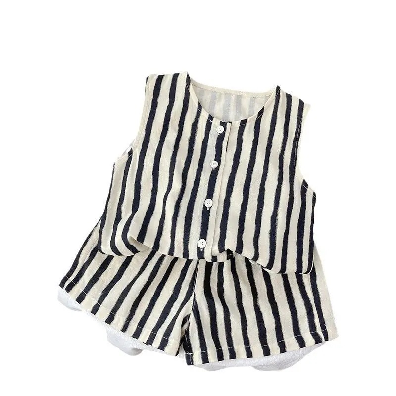어린이 여름 정장 소년과 소녀 면화 및 린넨 얇은 투피스 세트 유아 한국 순수 면화 조끼 반바지스토어 가기
