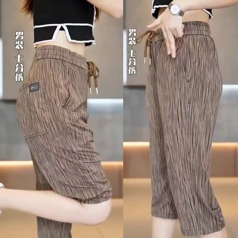 아이스 실크 스포츠 자른 바지 여자 여름 느슨한 슬리밍 빛과 얇은 빠른 건조 모든 경기 캐주얼 저렴한 에어컨 바지 트렌디 한 국경스토어 가기