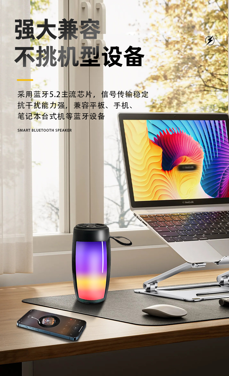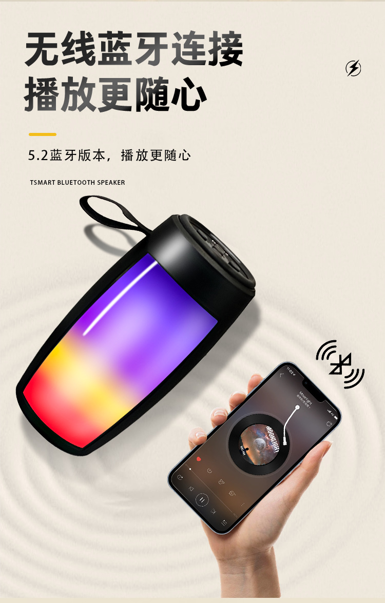 맞춤형 블루투스 스피커, 화려한 컬러의 중저음 서브우퍼, 야외용 휴대용 차량용 데스크탑 무선 USB 플래시 드라이브 휴대용