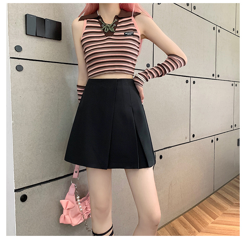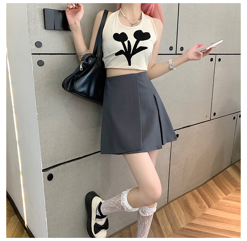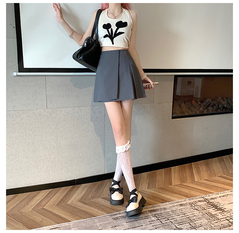 여름 회색 세트 주름 치마 절반 길이 치마 여자 2025 새로운 스타일 작은 높은 허리 A 라인 스커트 바지 치마스토어 가기