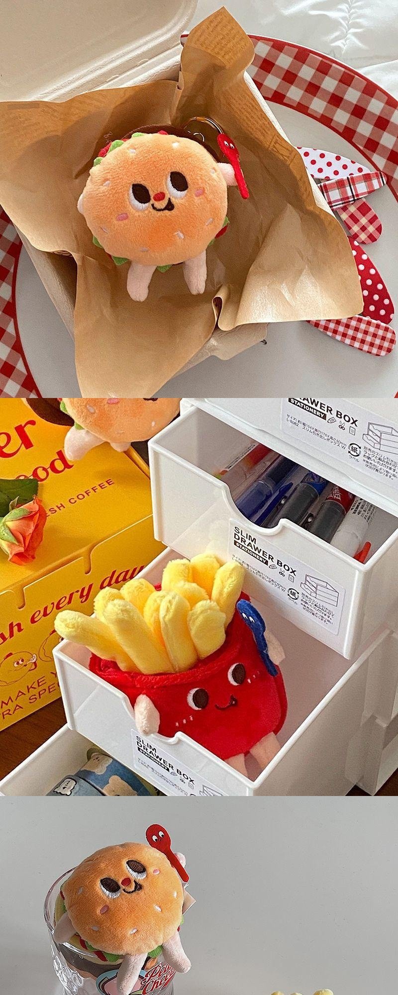 Ins Fries 햄버거 귀여운 봉제 인형 가방 펜던트 학생 커플 인형 교수형 창조적 인 새로운 키 체인스토어 가기