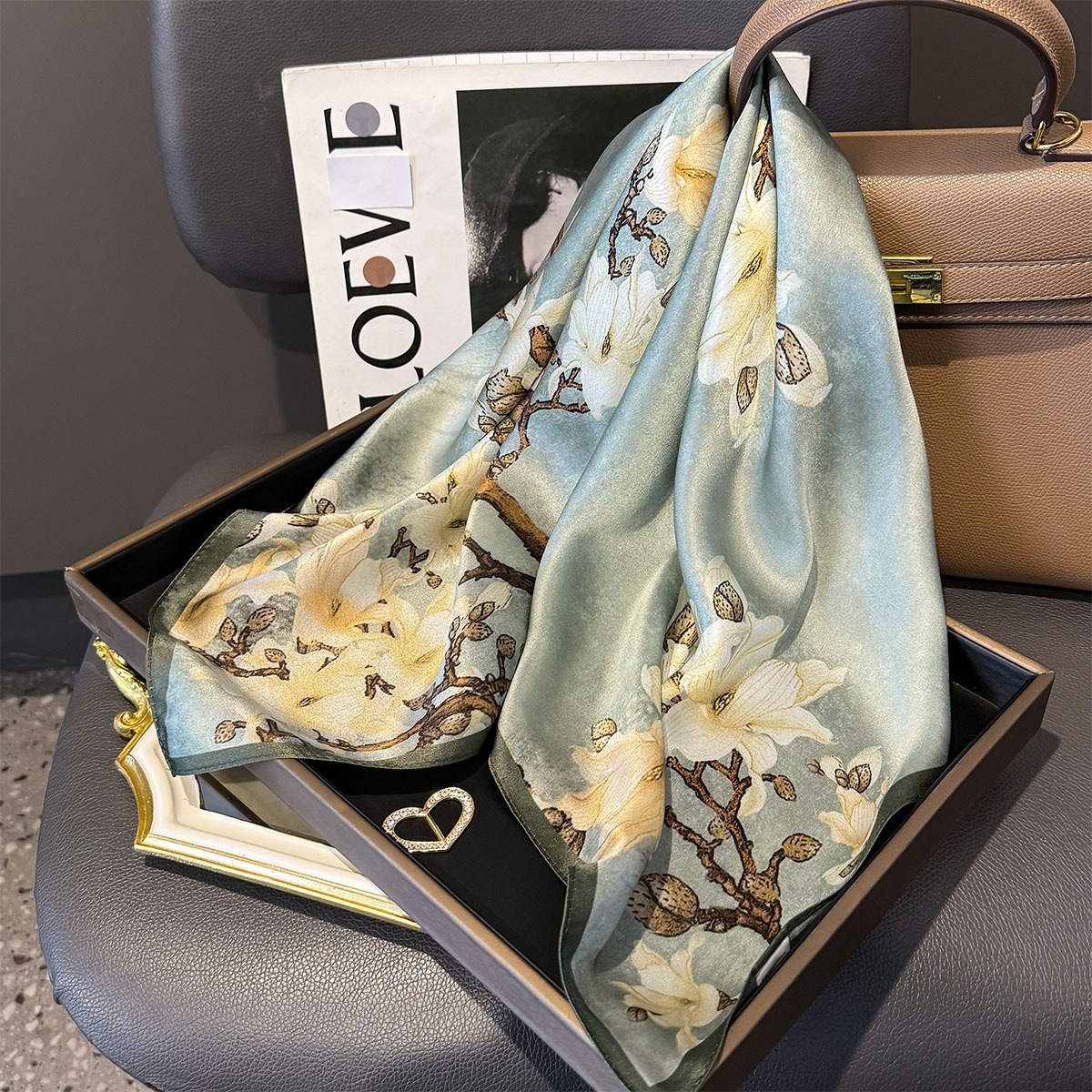 2025 인쇄 실크 스카프 여성의 봄과 여름 모든 경기 65cm 중간 사각형 스카프 장식 뽕나무 실크 스카프 목도리 국경스토어 가기