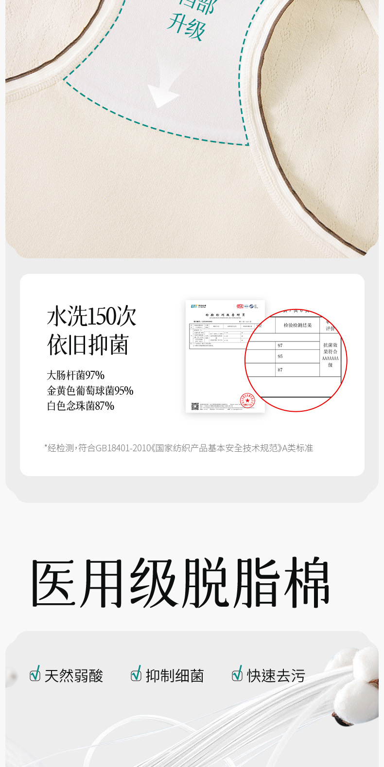 소녀 순수 면 속옷 7A 항균 가을 새로운 면 의료 면 클래스 A 항균 층 크로트 브리프