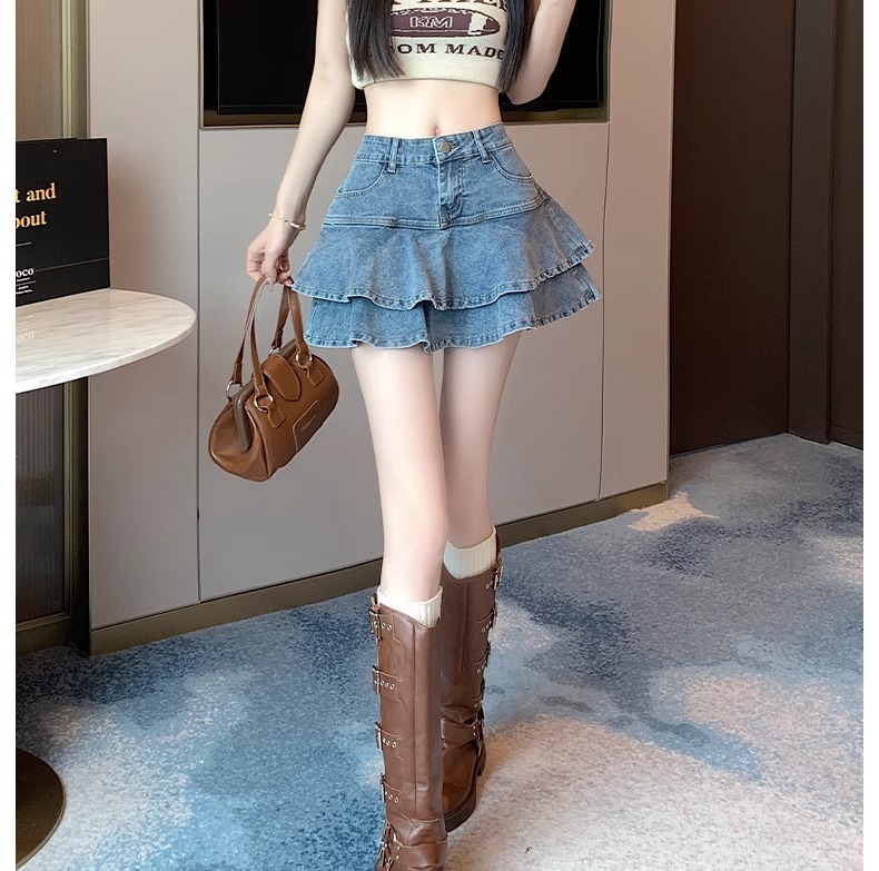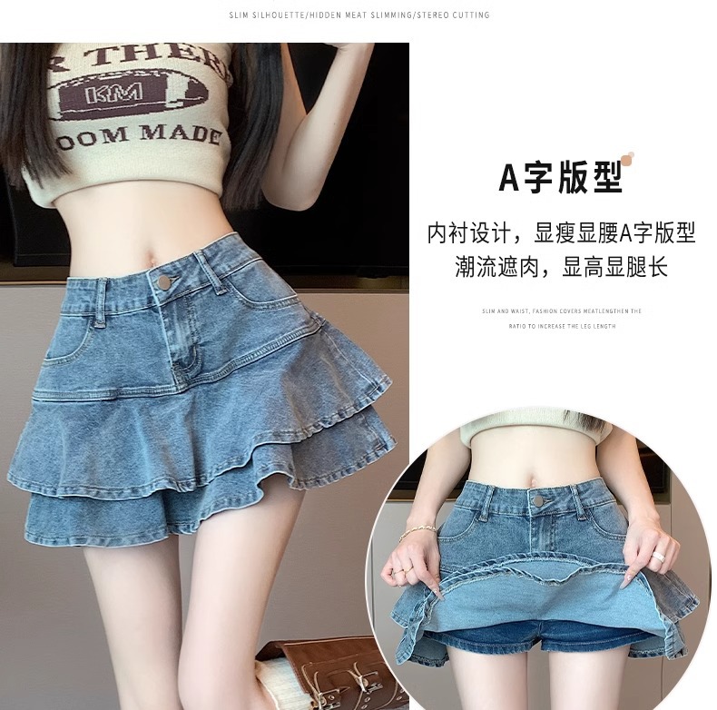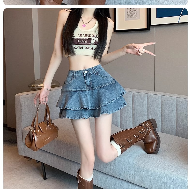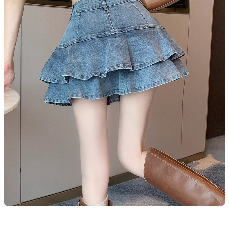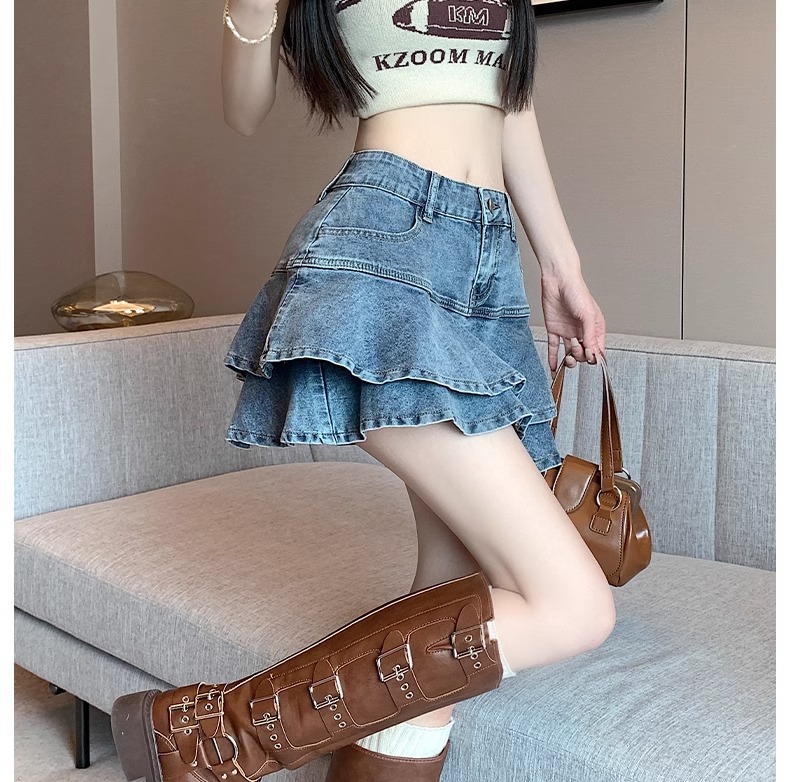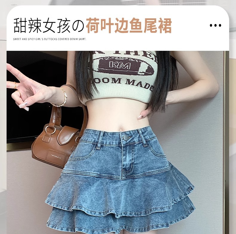 여성용 러플 데님 스커트, 여름 하이웨이스트 케이크 스커트, 슬리밍 힙 커버, A라인, 몸집이 작은 핫걸, 초짧은 피쉬테일 스커트스토어 가기