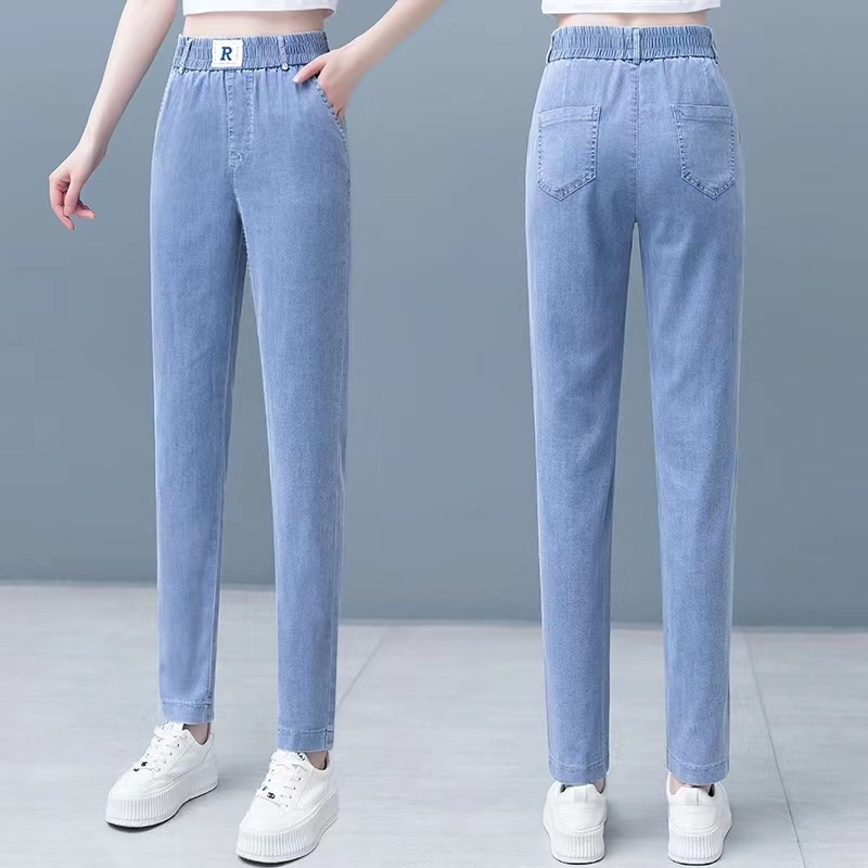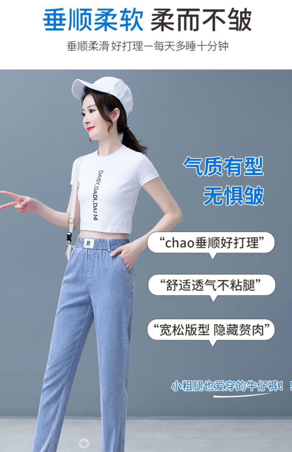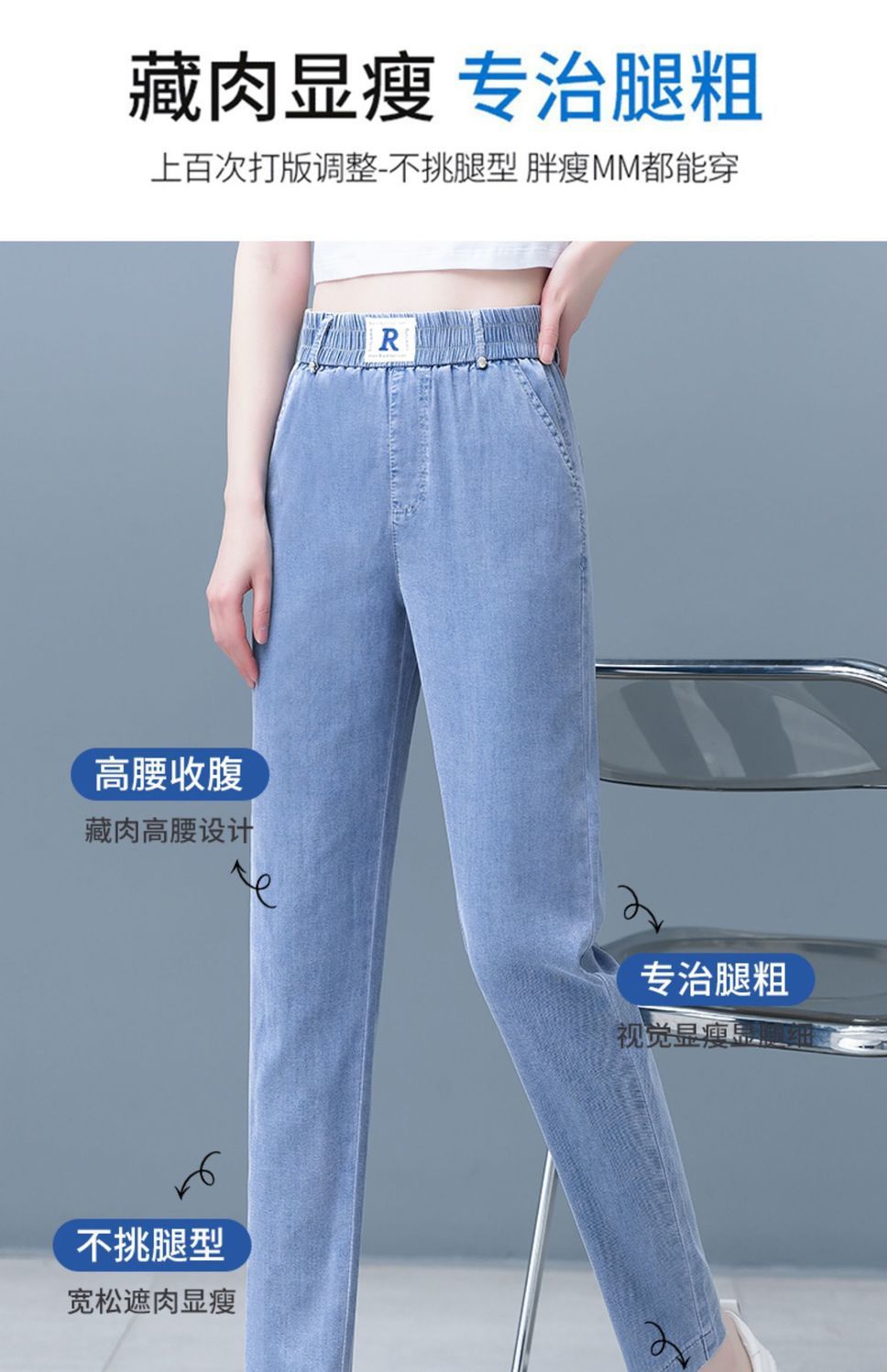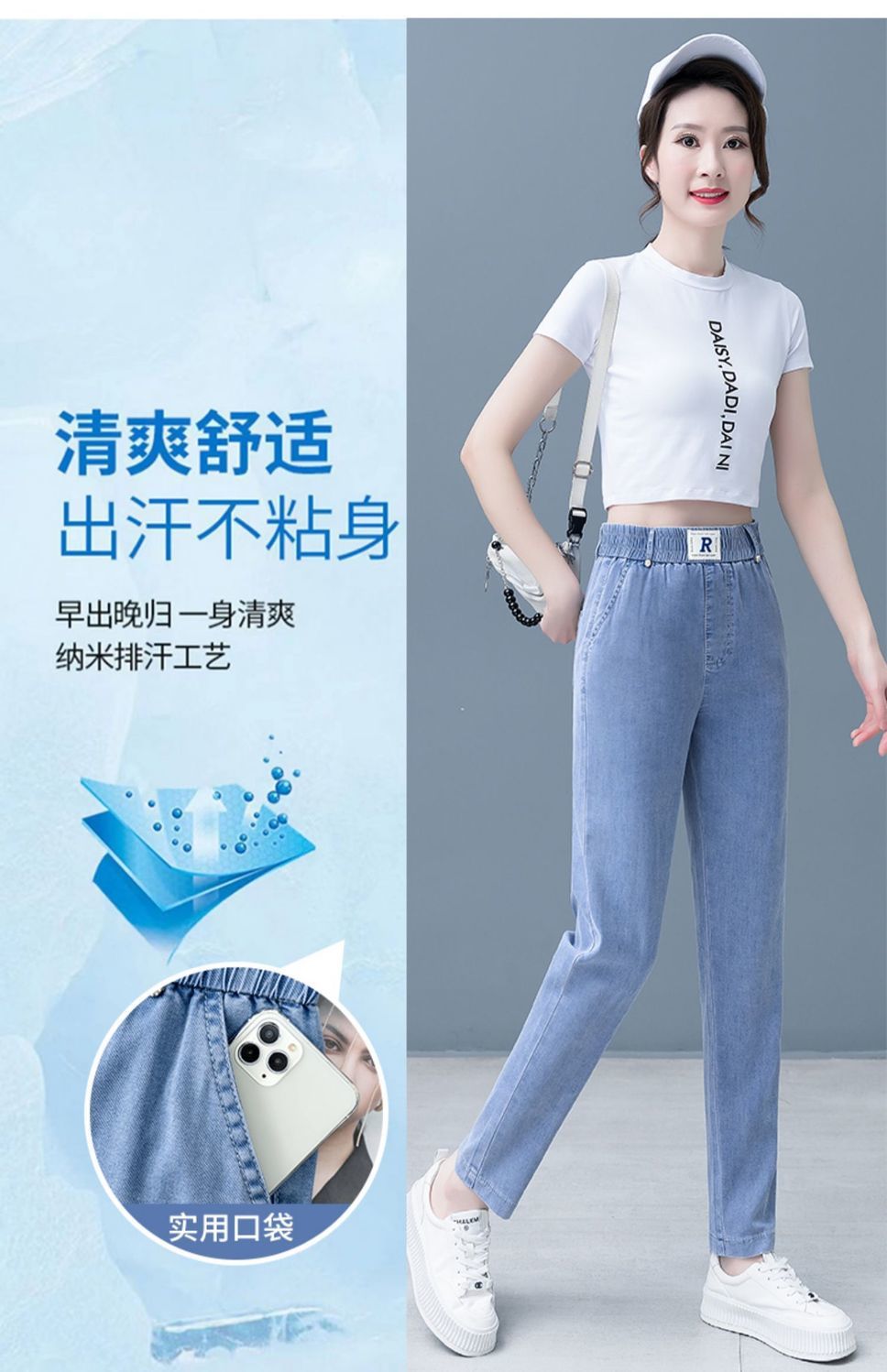 Tencel 청바지 여성의 봄과 여름 2025 새로운 높은 허리 딥 슬림 얇은 얼음 실크 하렘 바지스토어 가기