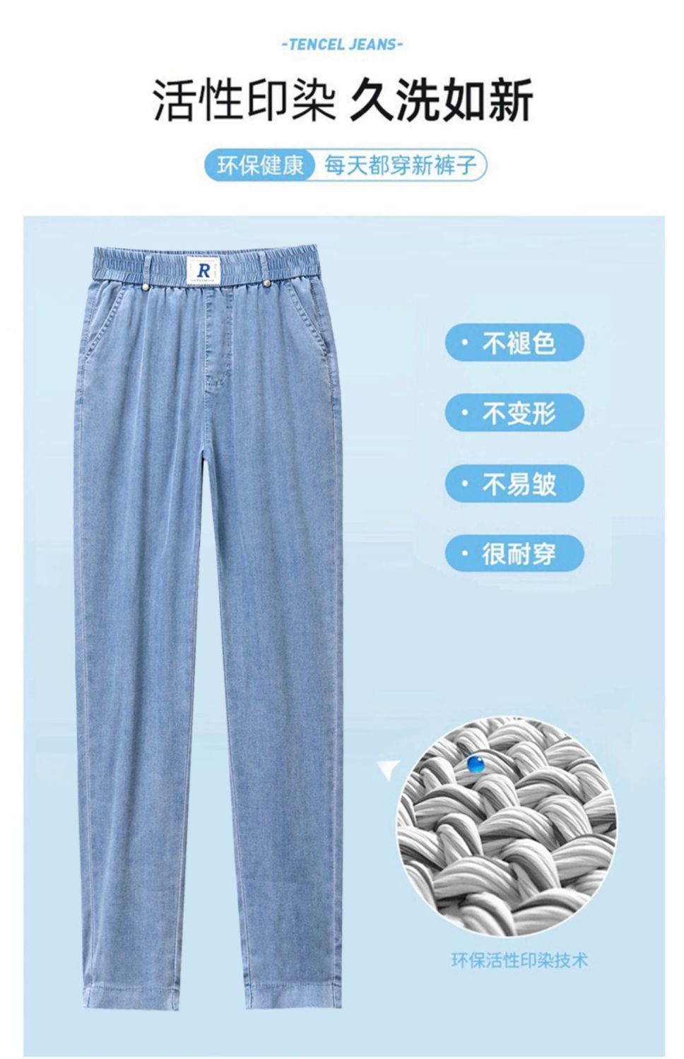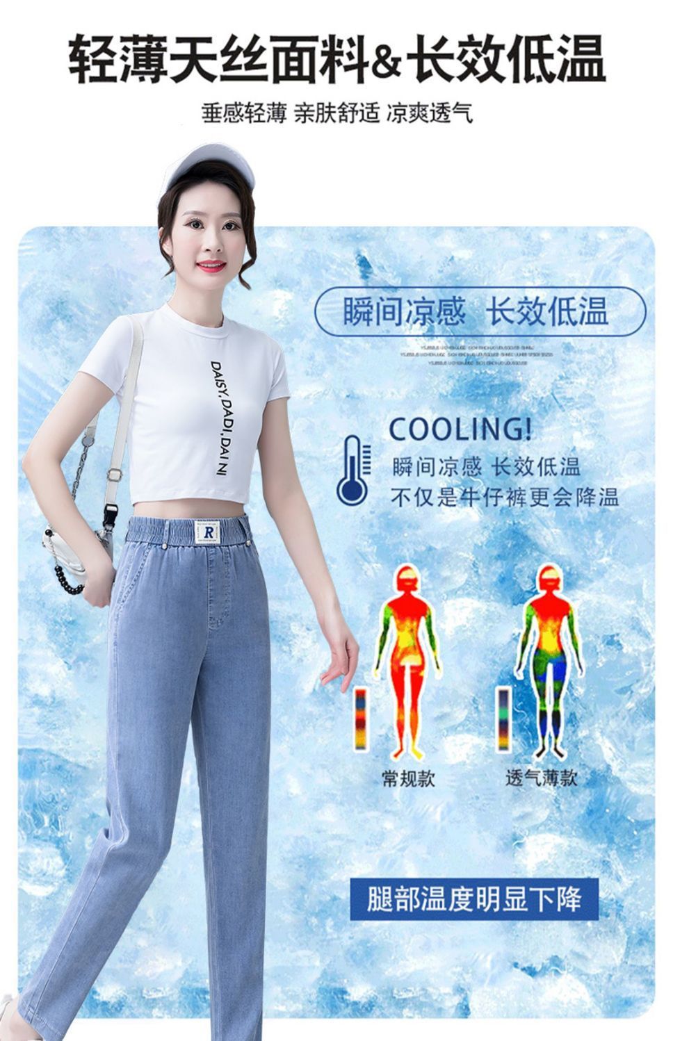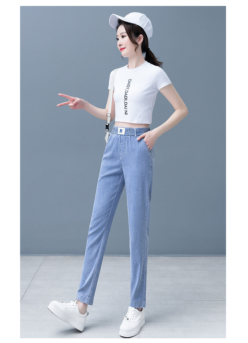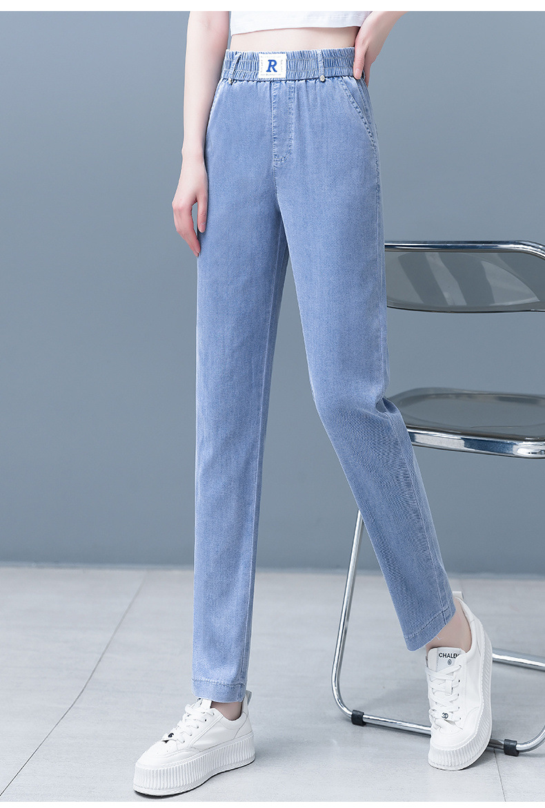 Tencel 청바지 여성의 봄과 여름 2025 새로운 높은 허리 딥 슬림 얇은 얼음 실크 하렘 바지스토어 가기