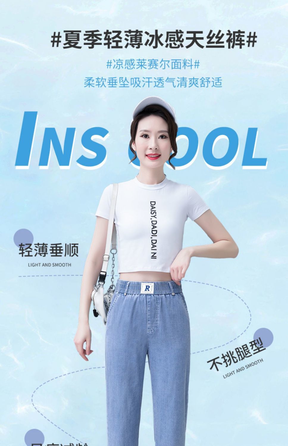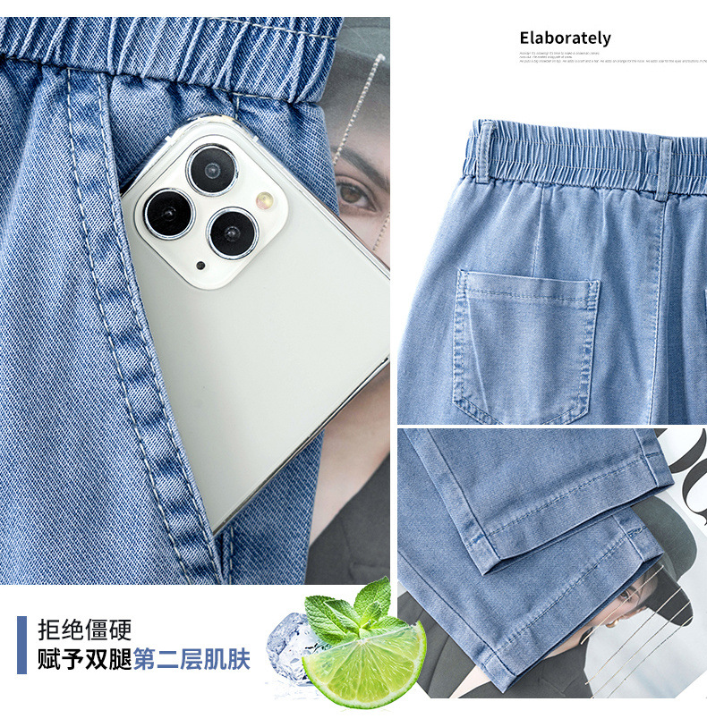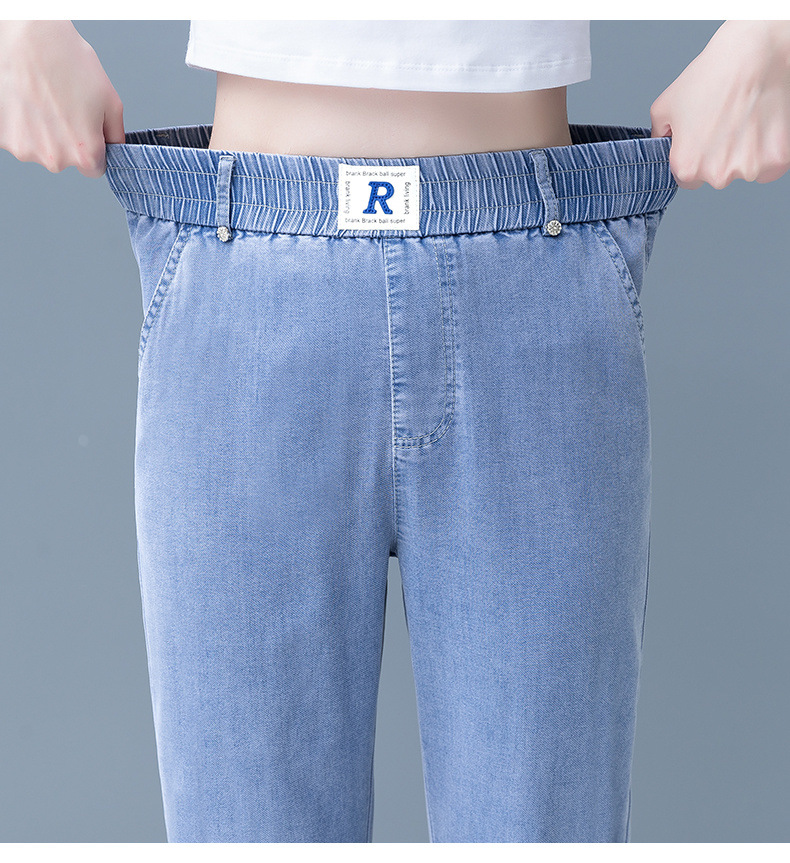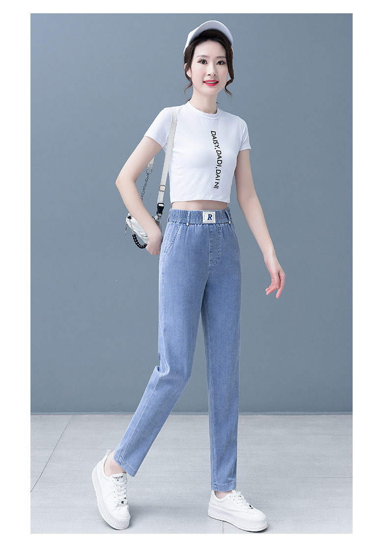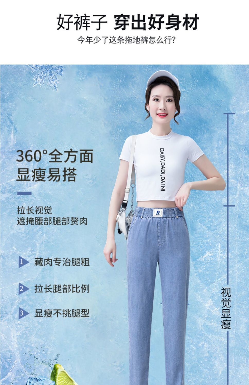 Tencel 청바지 여성의 봄과 여름 2025 새로운 높은 허리 딥 슬림 얇은 얼음 실크 하렘 바지스토어 가기