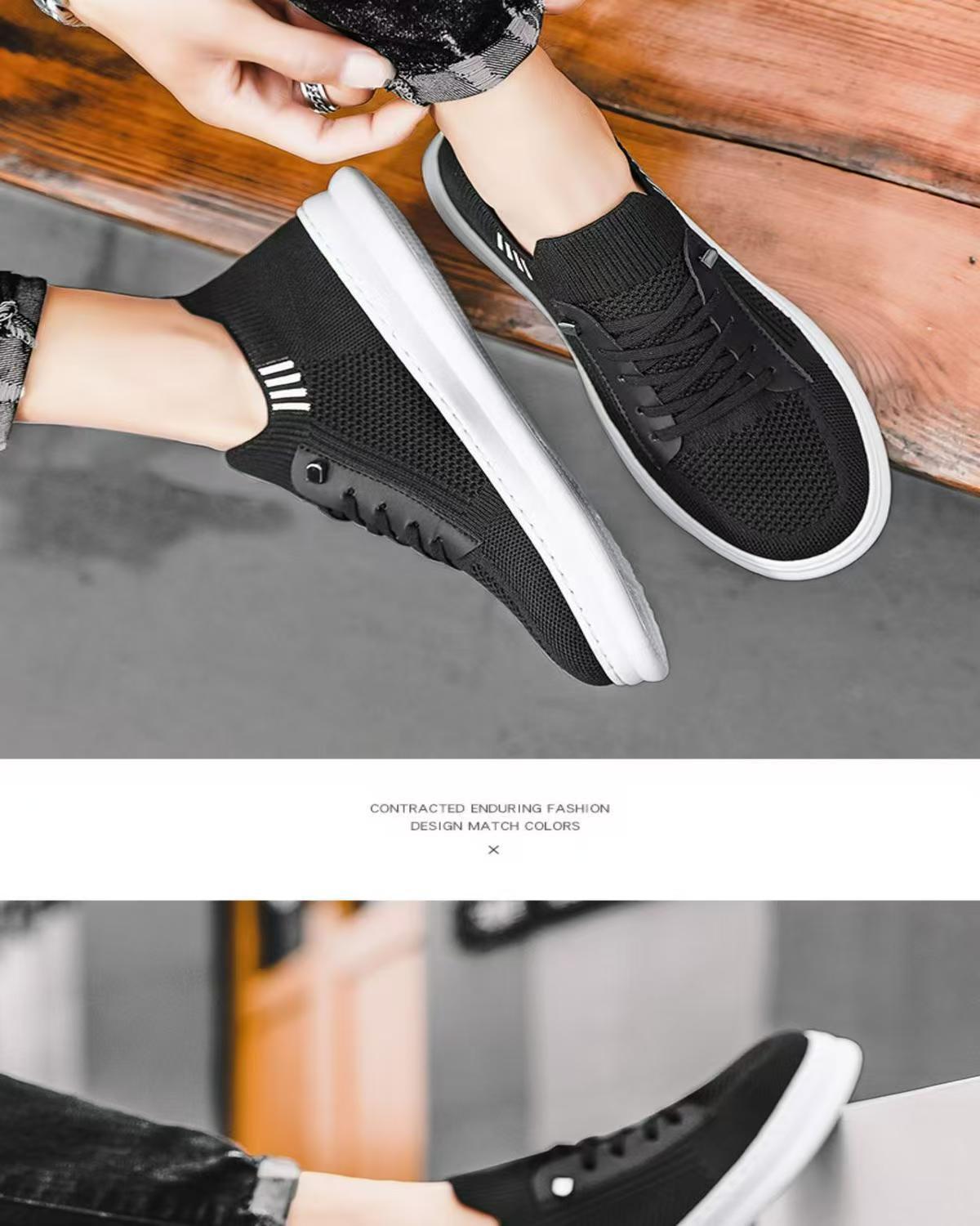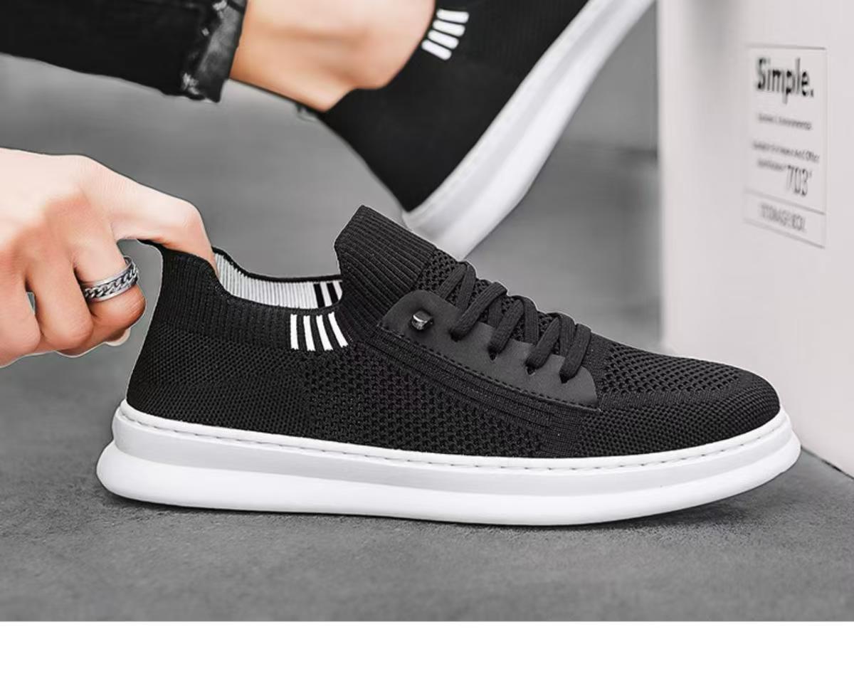남성용 신발 새로운 남성용 플라잉 웨브 통기성 메쉬 캐주얼 슈즈 트렌디 올매치 솔리드 컬러 보드 슈즈스토어 가기