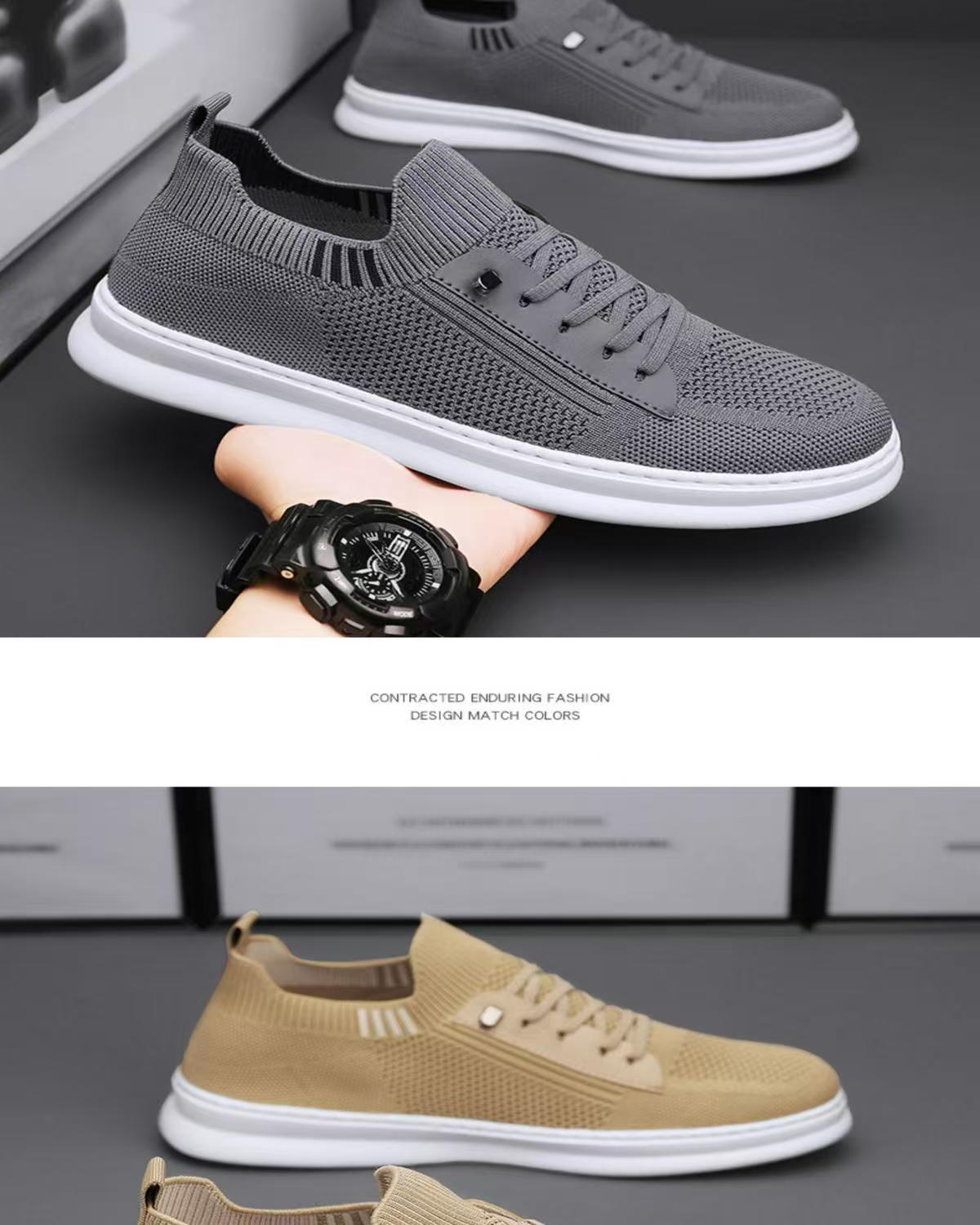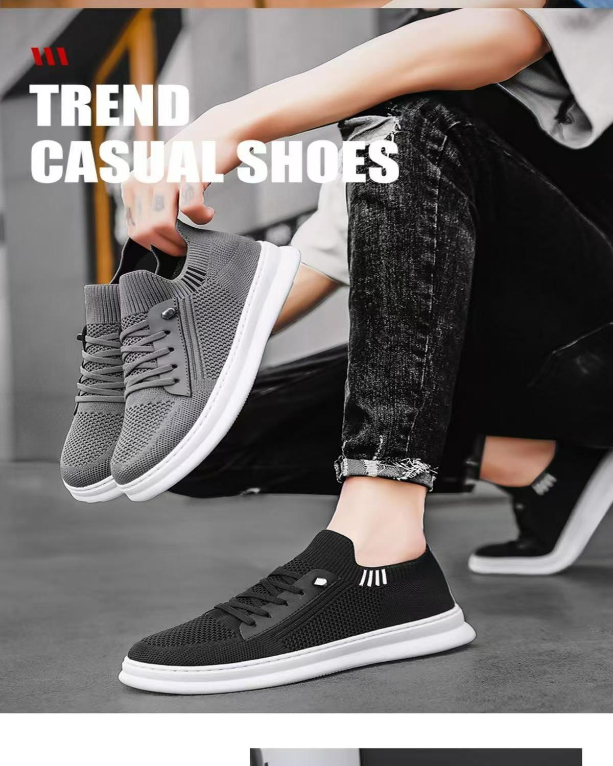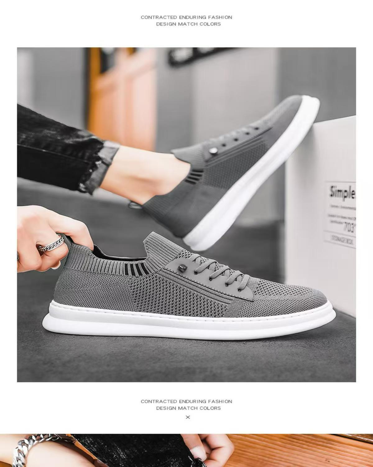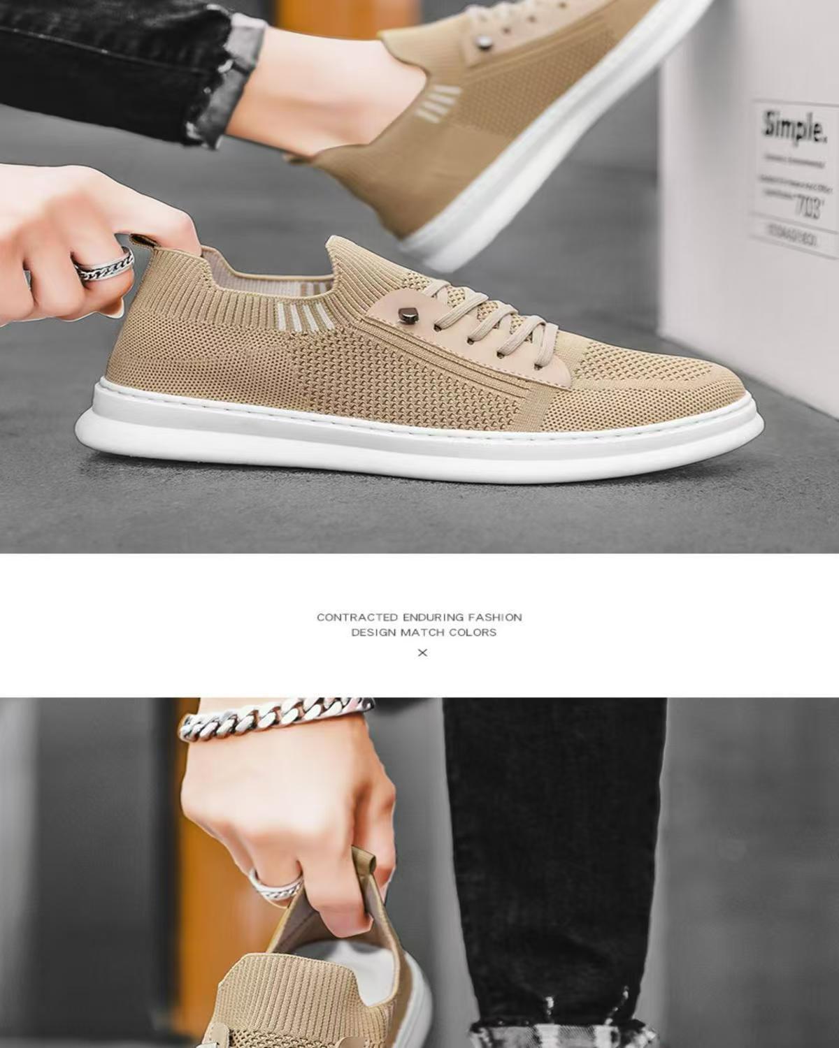 남성용 신발 새로운 남성용 플라잉 웨브 통기성 메쉬 캐주얼 슈즈 트렌디 올매치 솔리드 컬러 보드 슈즈