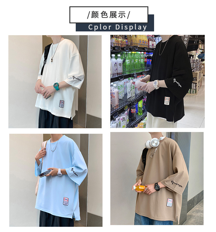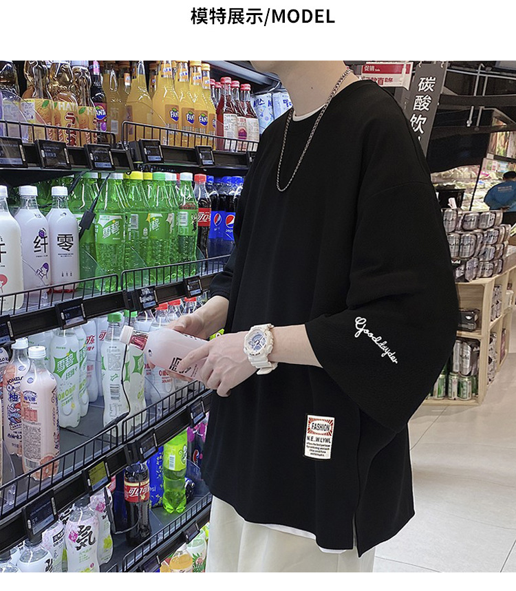 자수 7부소매 남성 티셔츠 여름 트렌디 브랜드 트렌디 루즈한 대형 반팔 티셔츠 헤비 반팔 아이스 실크 의류스토어 가기