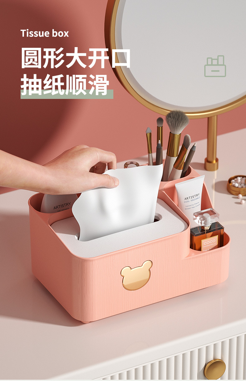 만화 곰 보관 티슈 상자 귀여운 금도금 곰 칸막이 종이 상자 곰 다기능 거실 및 레스토랑 티슈 상자스토어 가기