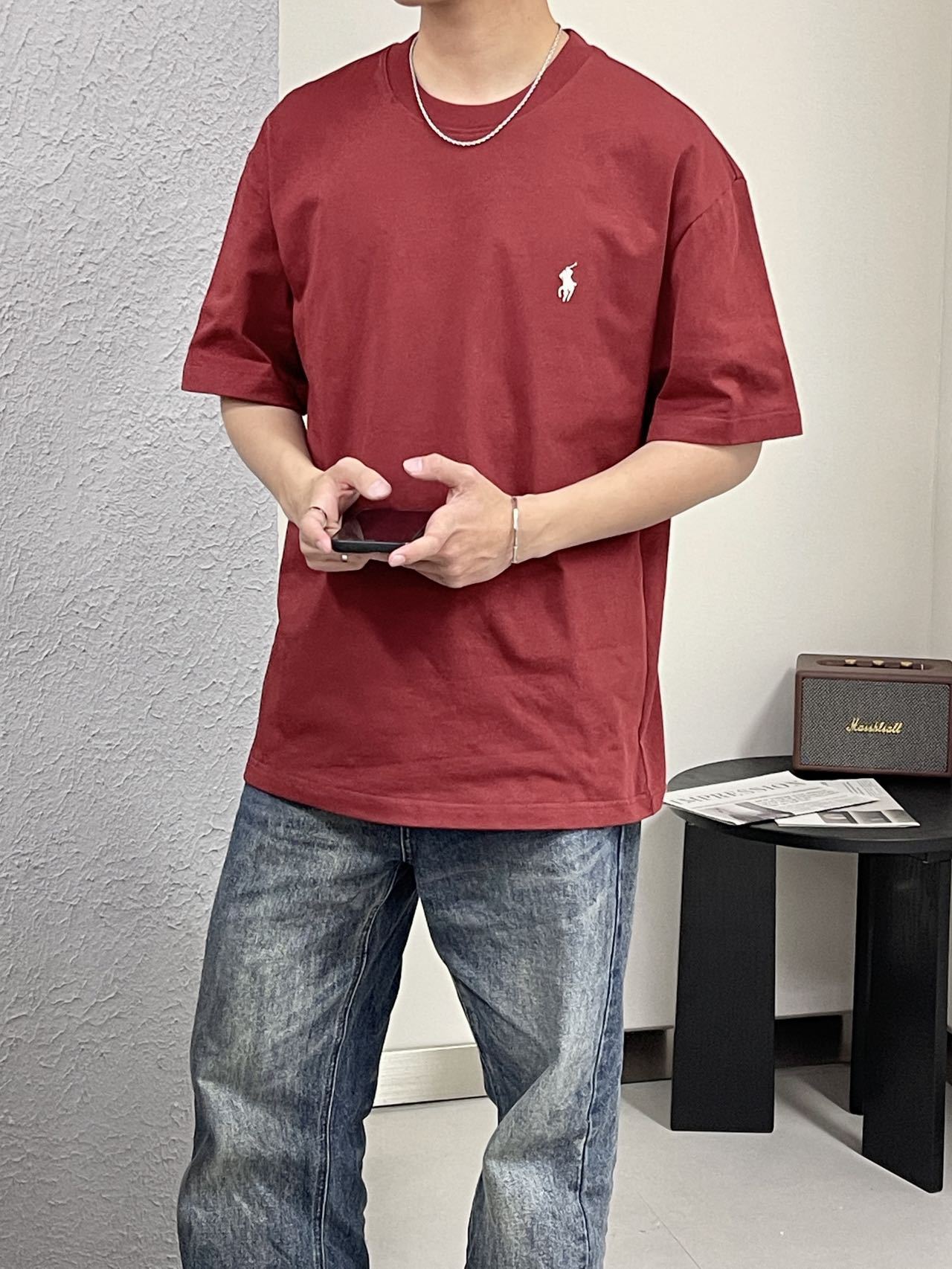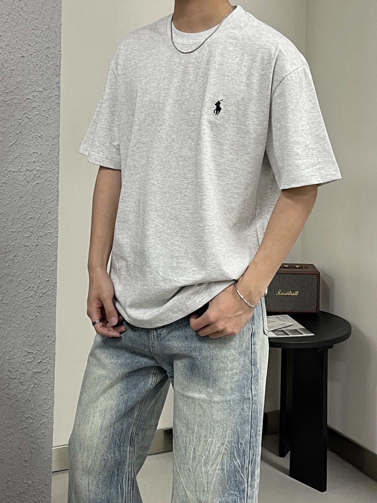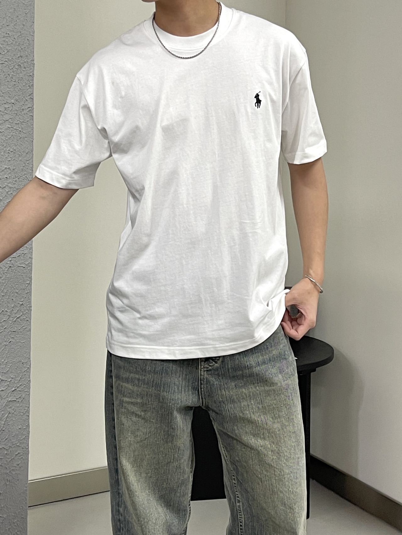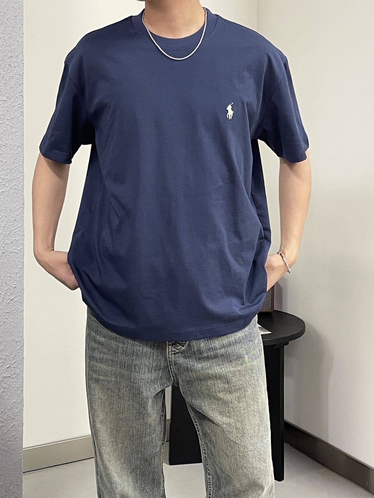 2025 새로운 솔리드 컬러 오리지널 반팔 클래식 자수 포니 라벨 멀티 컬러 캐주얼 라운드 넥 커플 반팔 티셔츠스토어 가기
