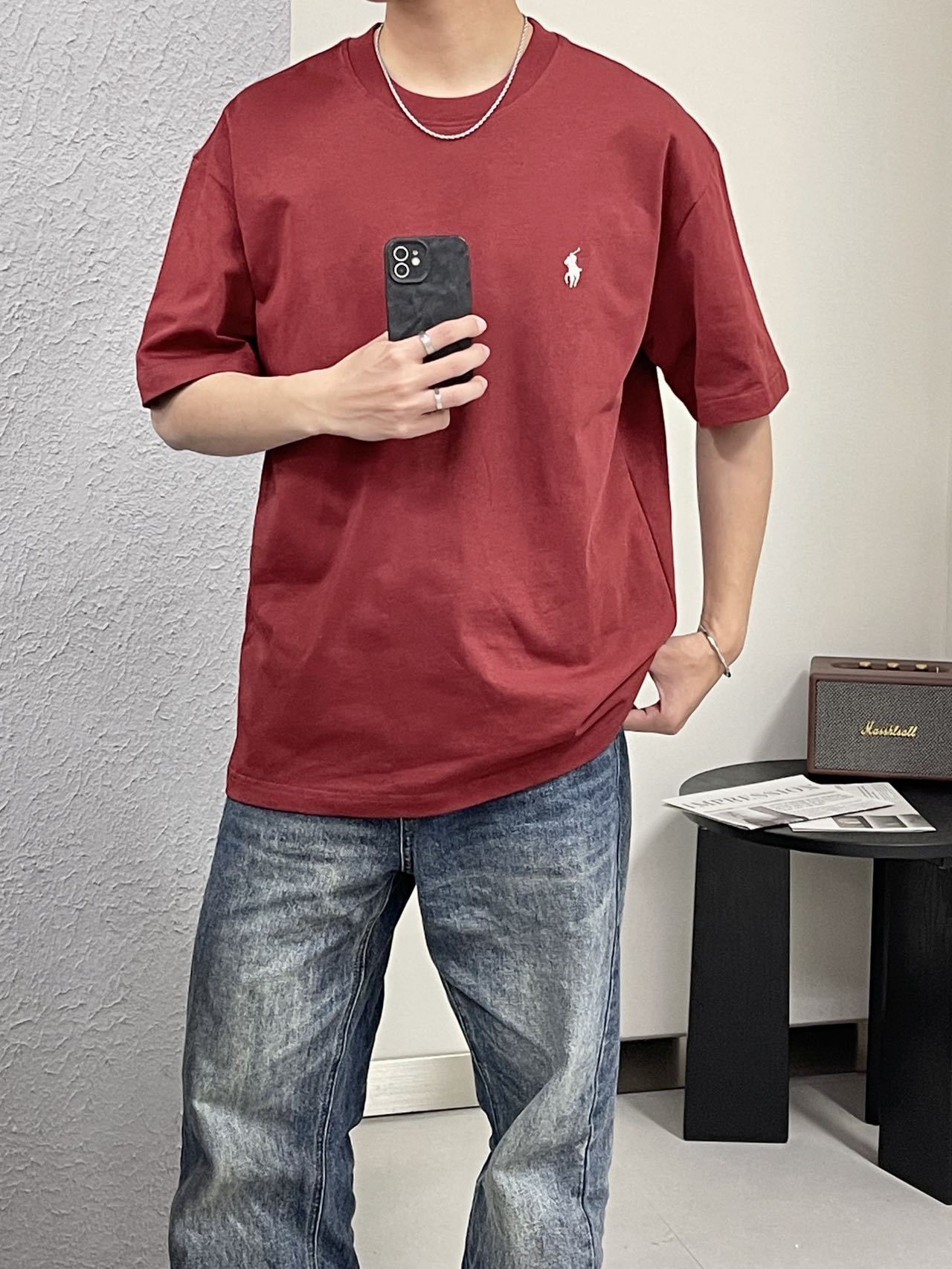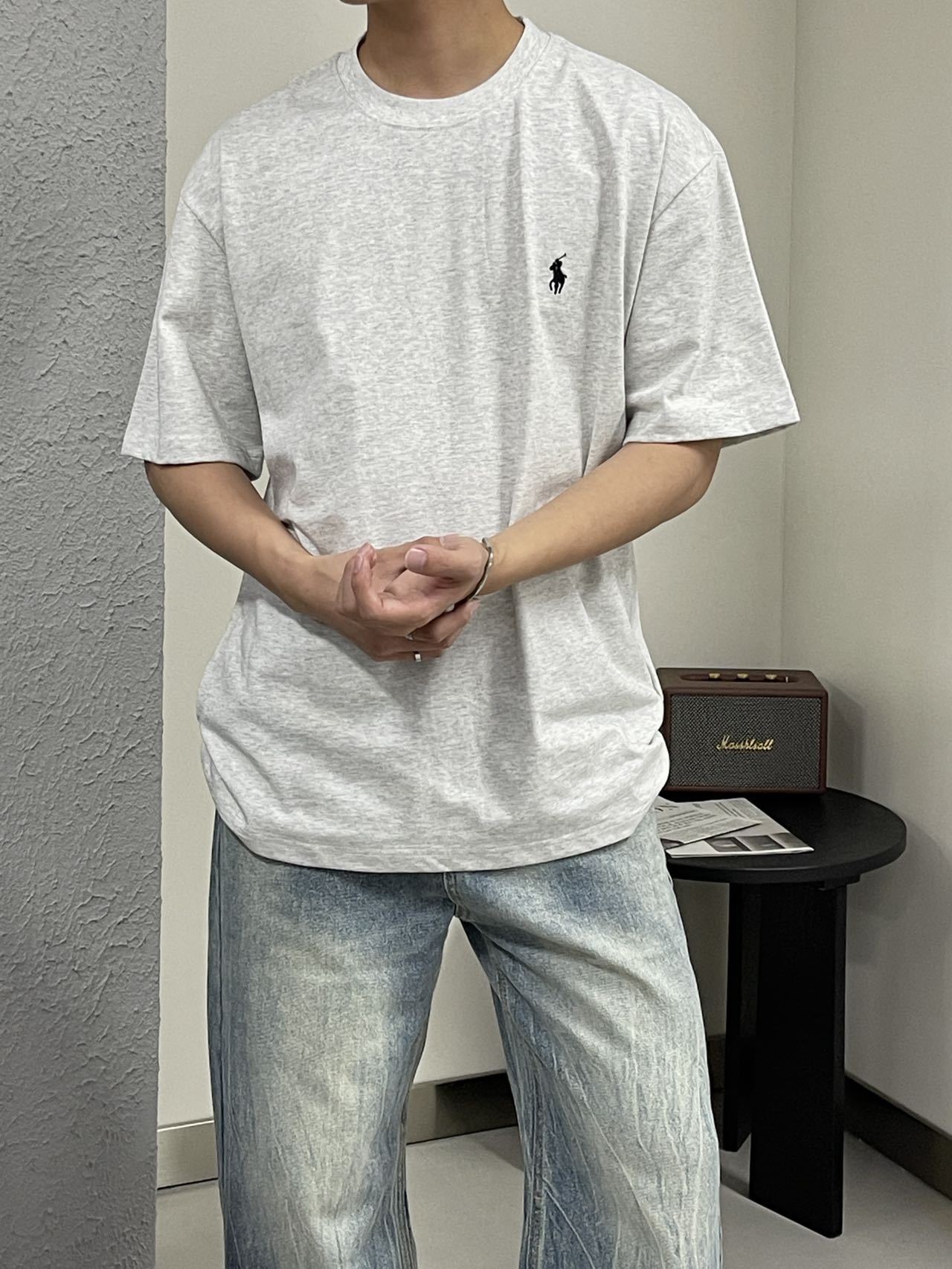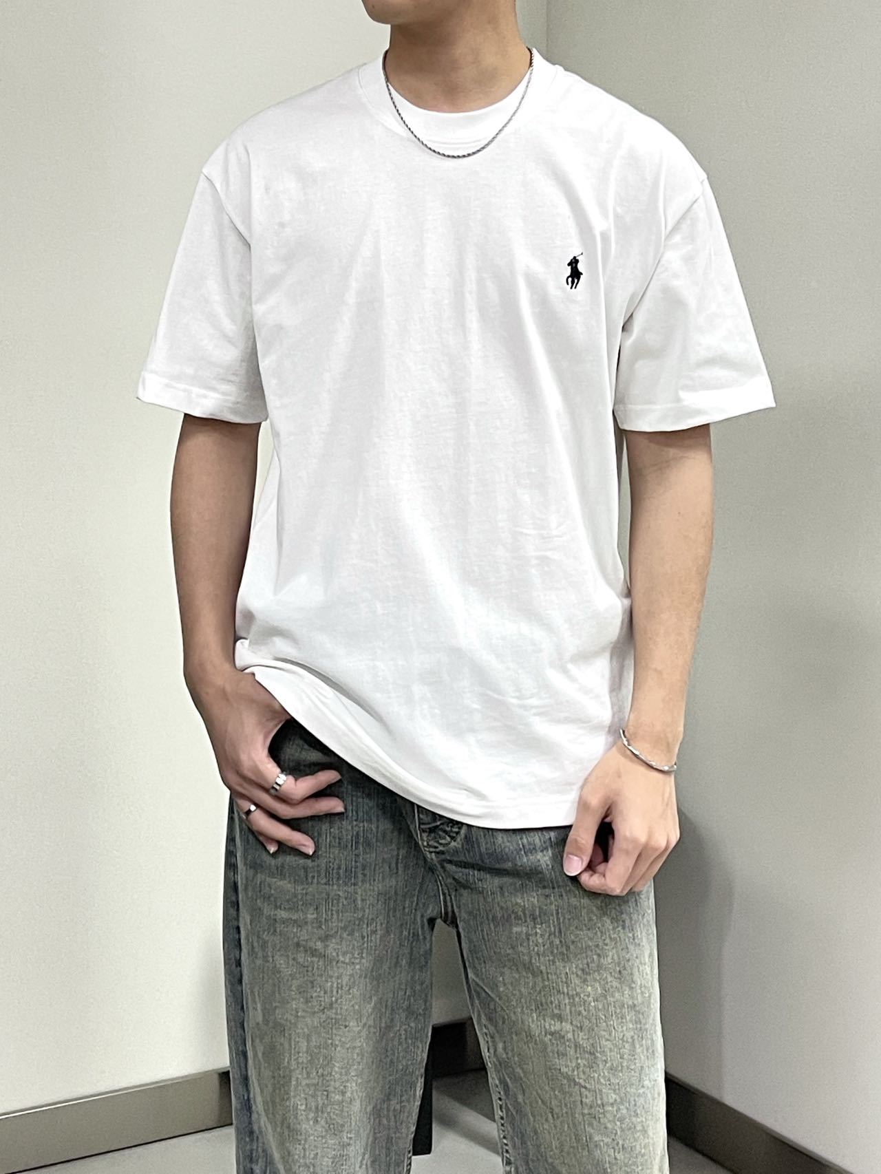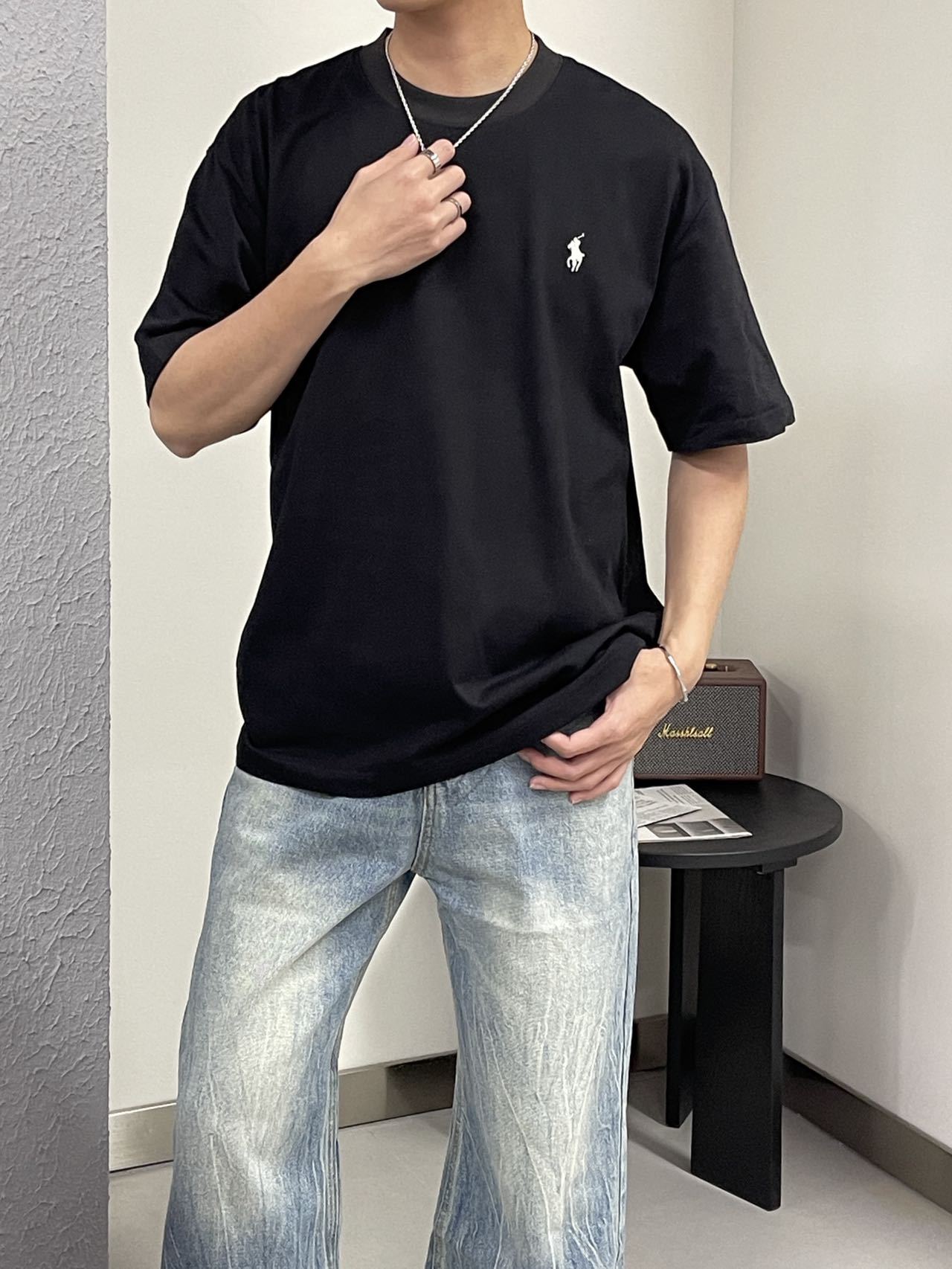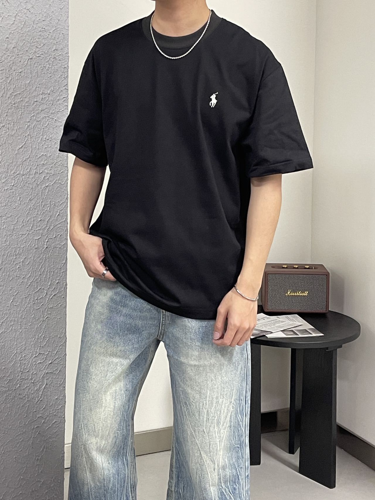 2025 새로운 솔리드 컬러 오리지널 반팔 클래식 자수 포니 라벨 멀티 컬러 캐주얼 라운드 넥 커플 반팔 티셔츠스토어 가기