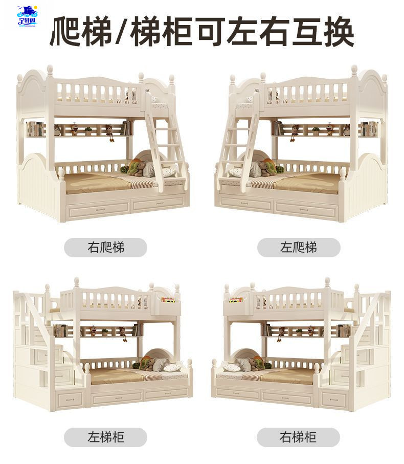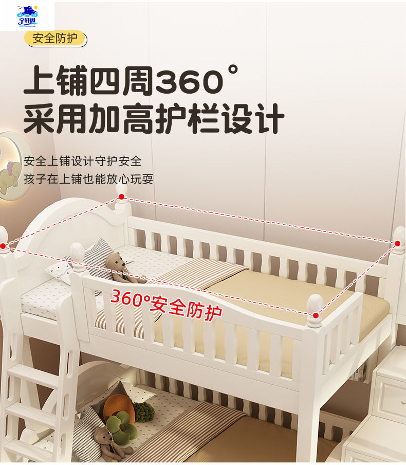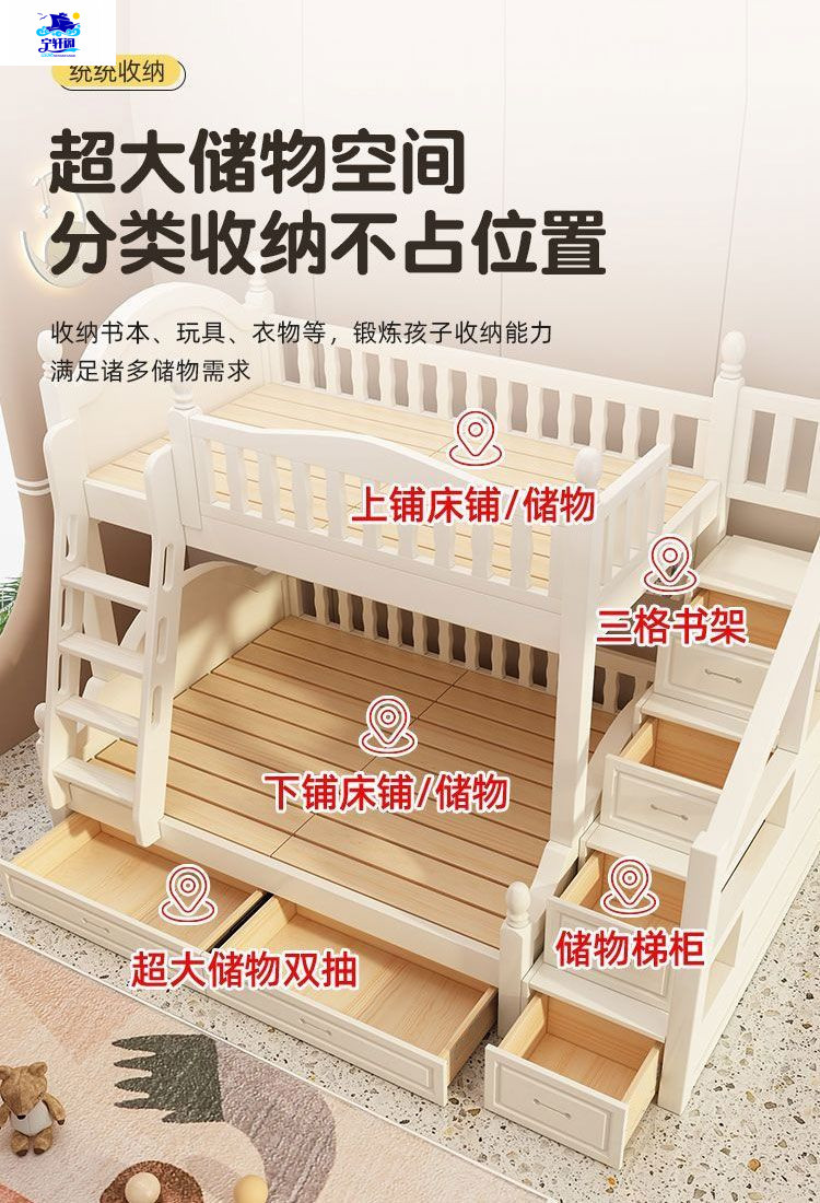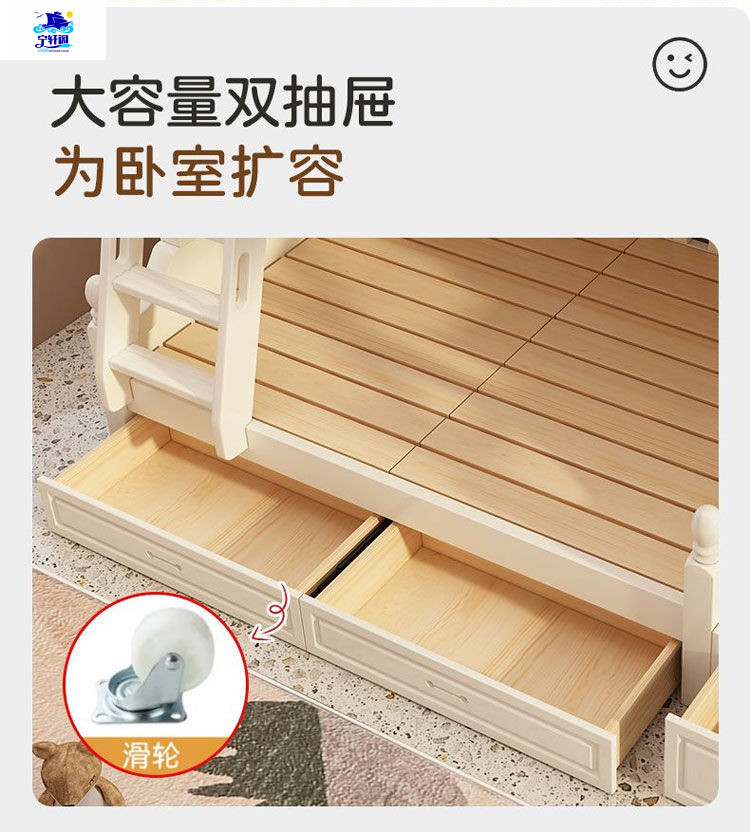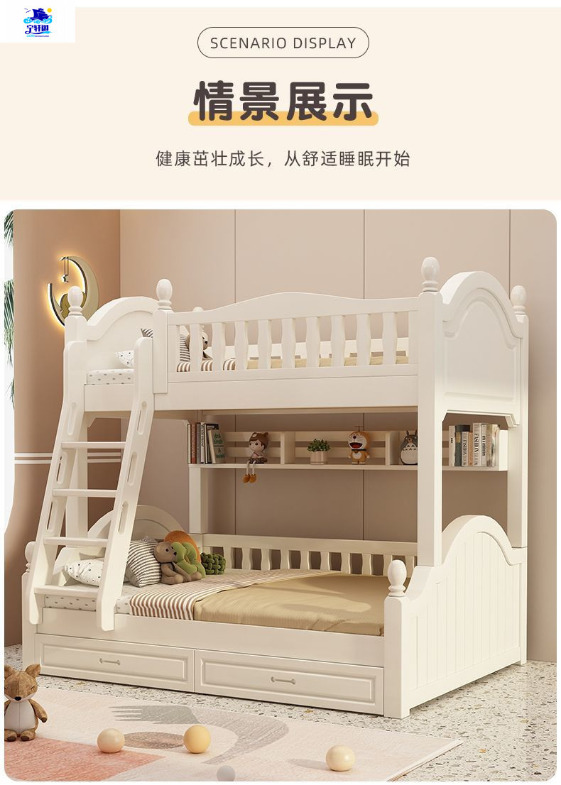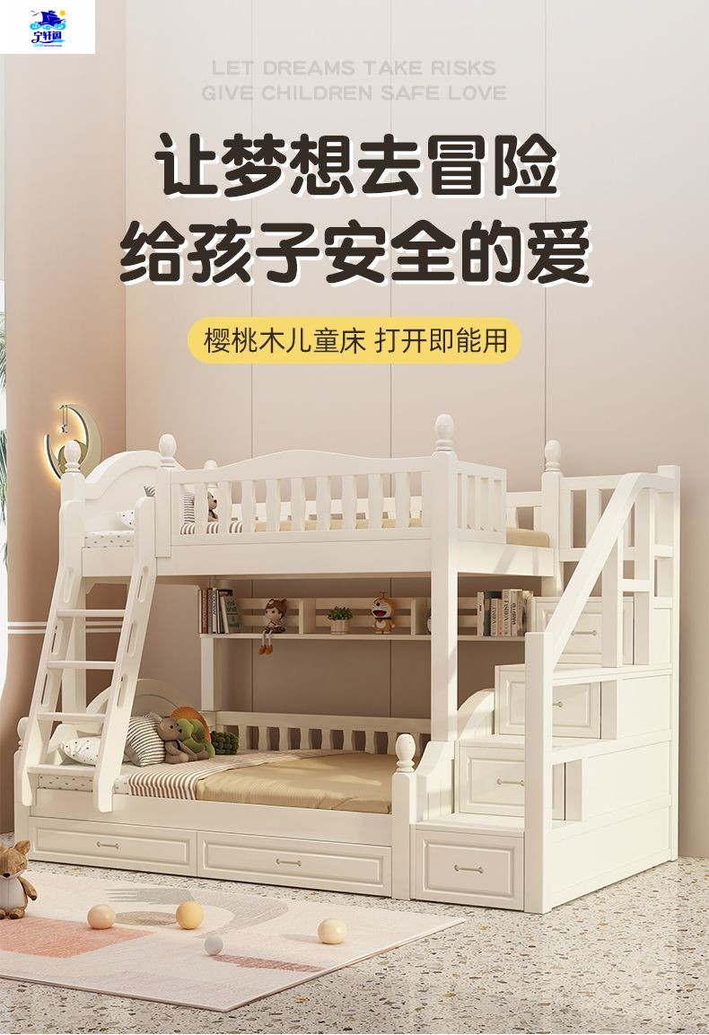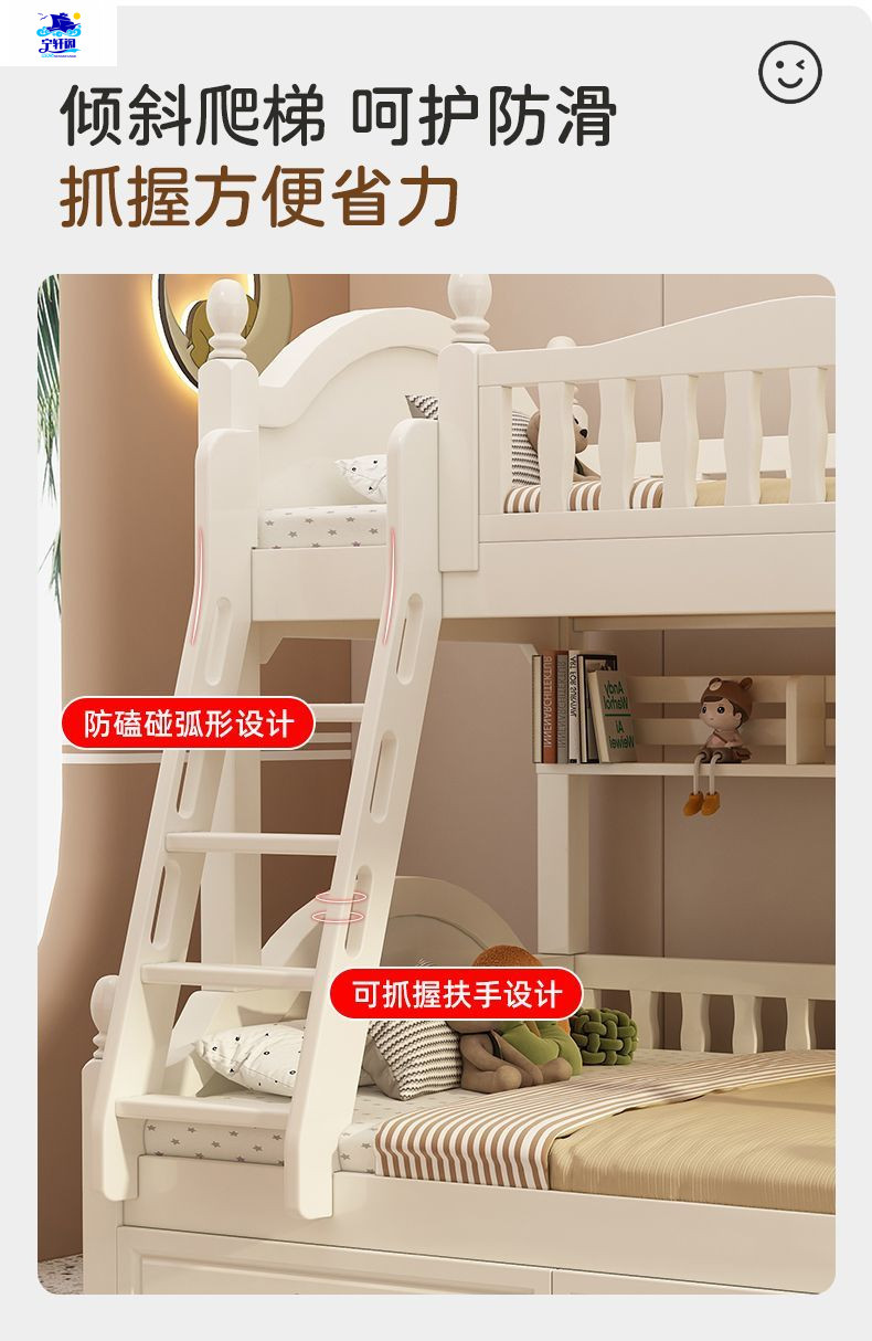 2025년 신형 미국식 원목 이층침대, 더블 하이앤로우 침대, 2층 어린이 다기능 이층침대스토어 가기