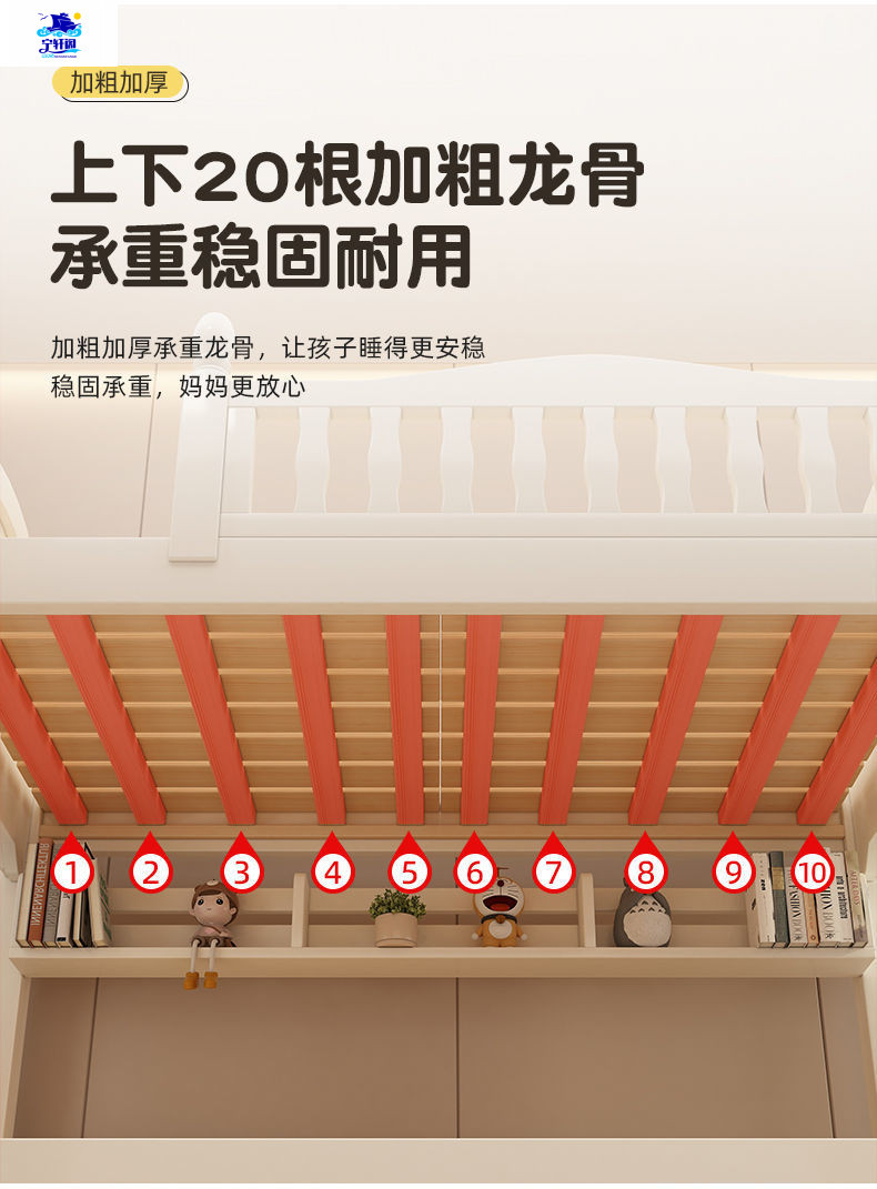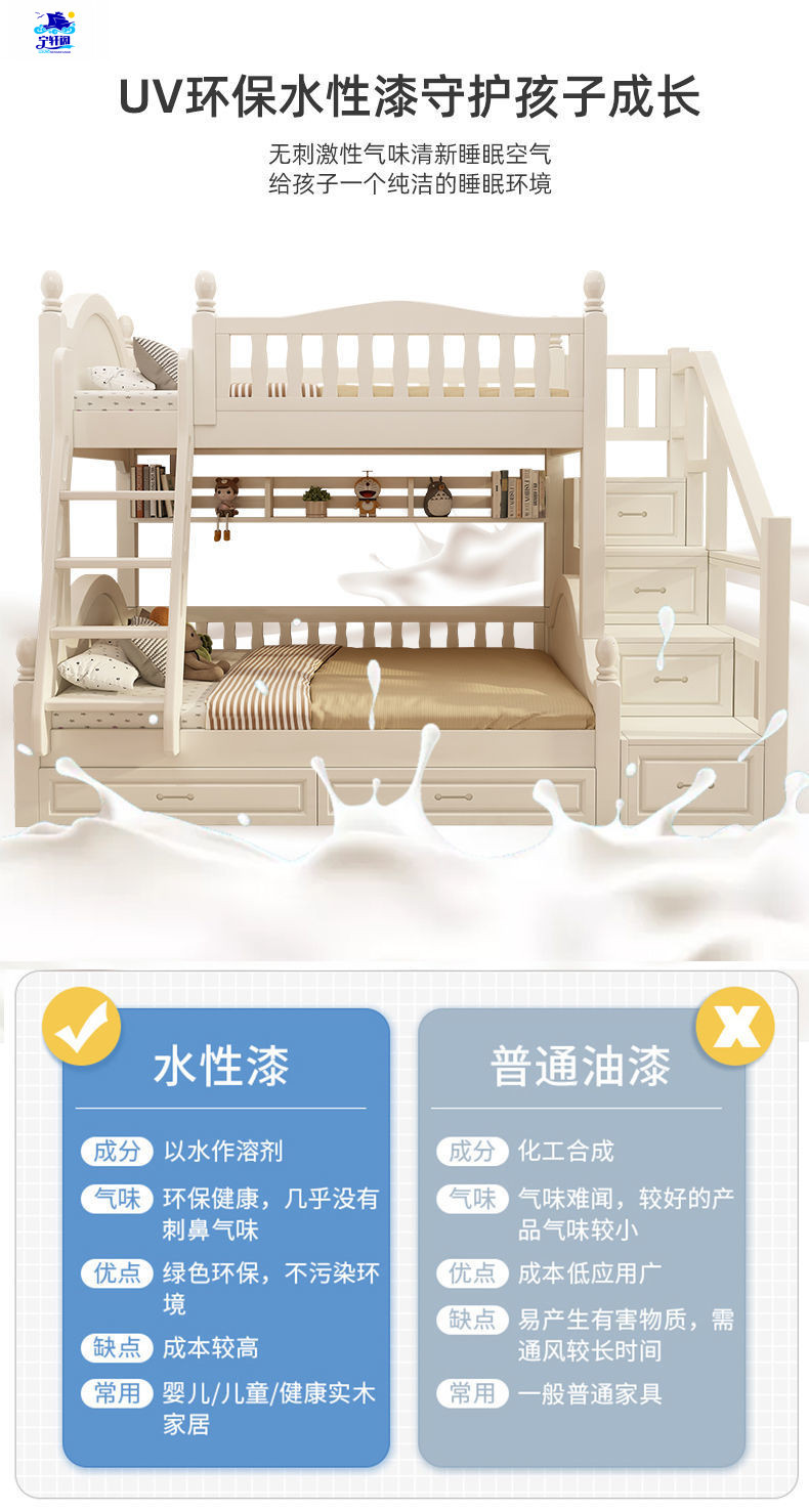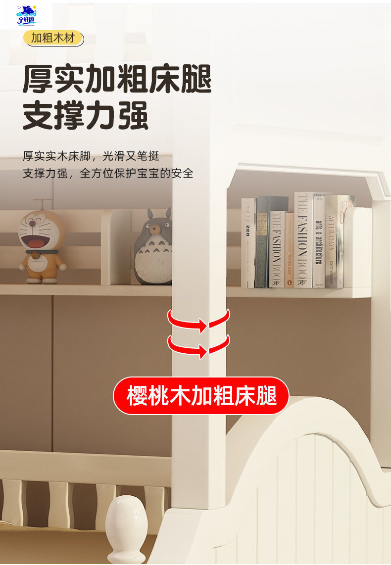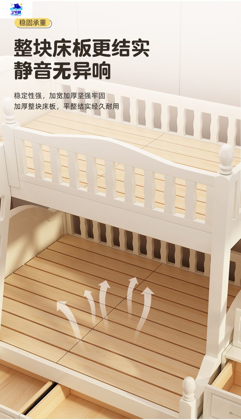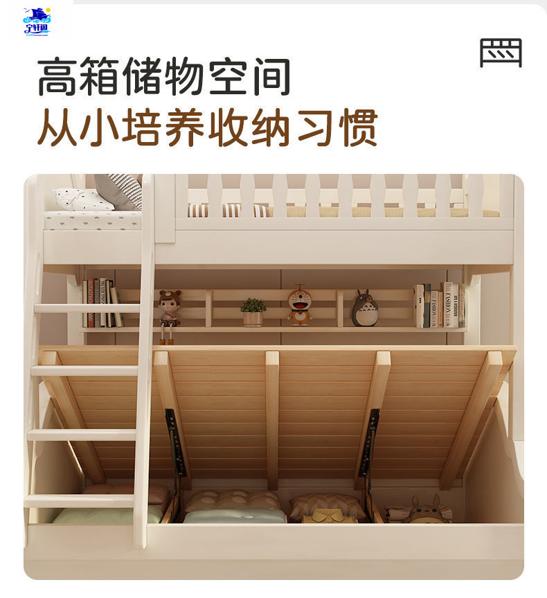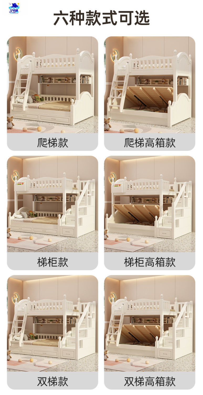 2025년 신형 미국식 원목 이층침대, 더블 하이앤로우 침대, 2층 어린이 다기능 이층침대스토어 가기