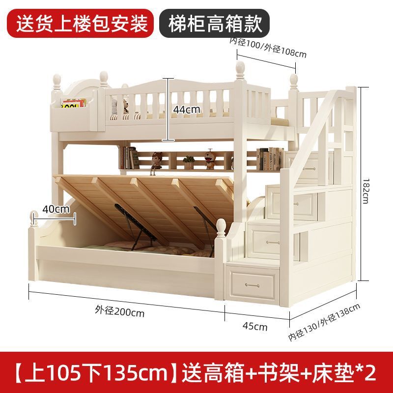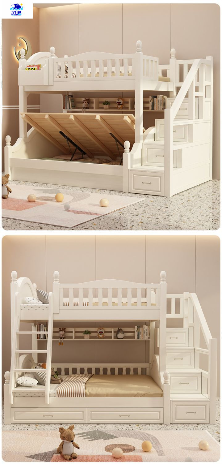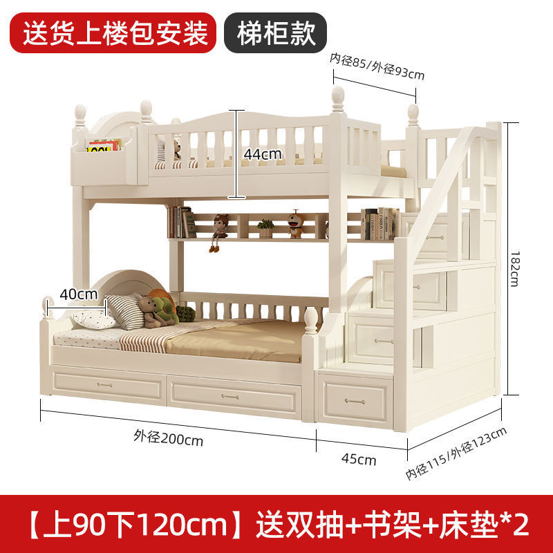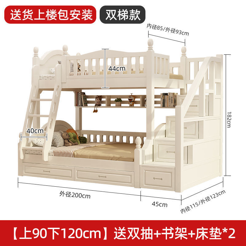 2025년 신형 미국식 원목 이층침대, 더블 하이앤로우 침대, 2층 어린이 다기능 이층침대