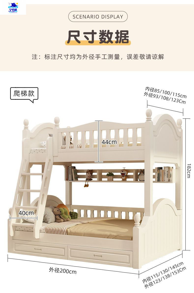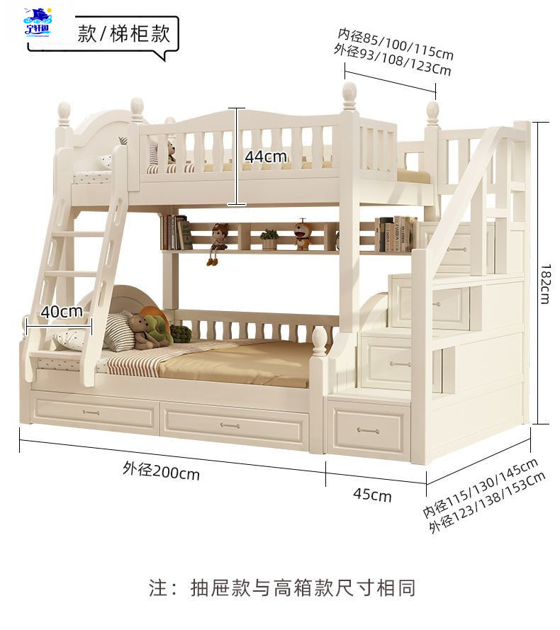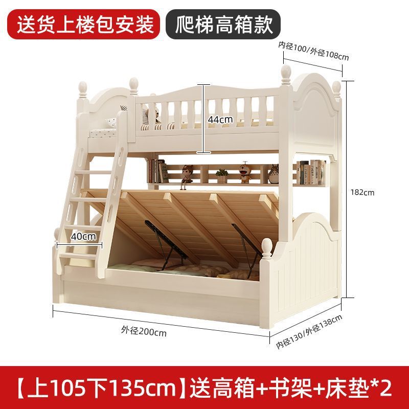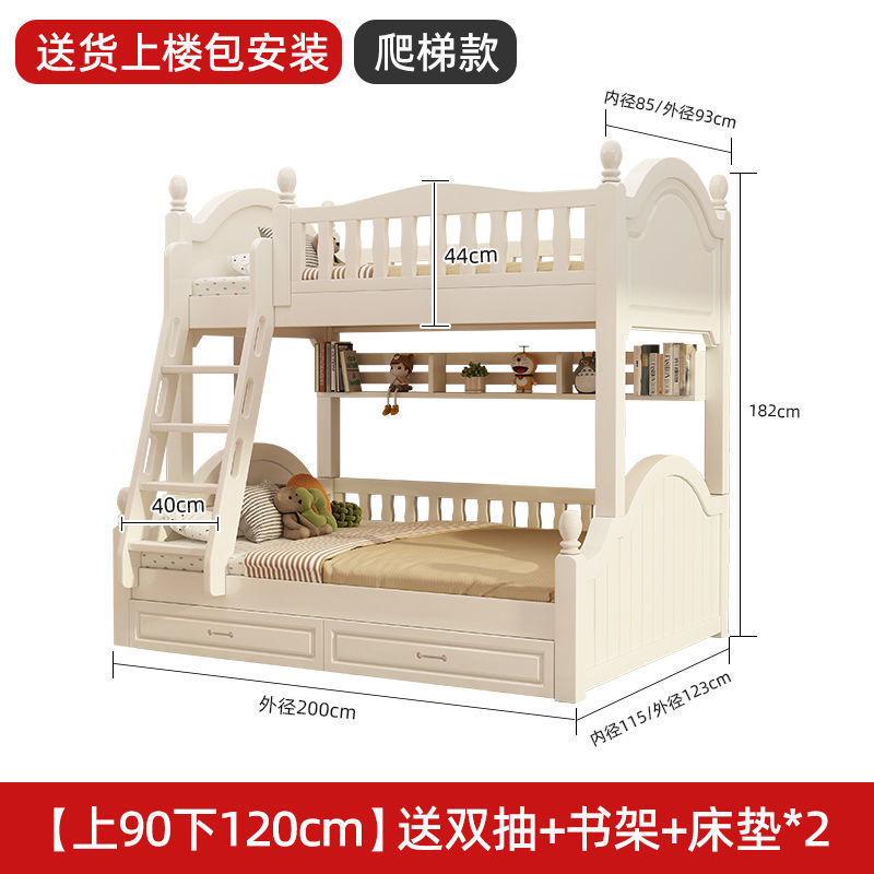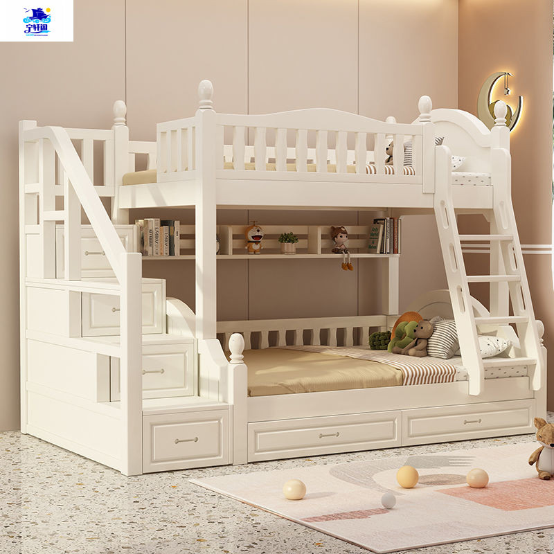 2025년 신형 미국식 원목 이층침대, 더블 하이앤로우 침대, 2층 어린이 다기능 이층침대