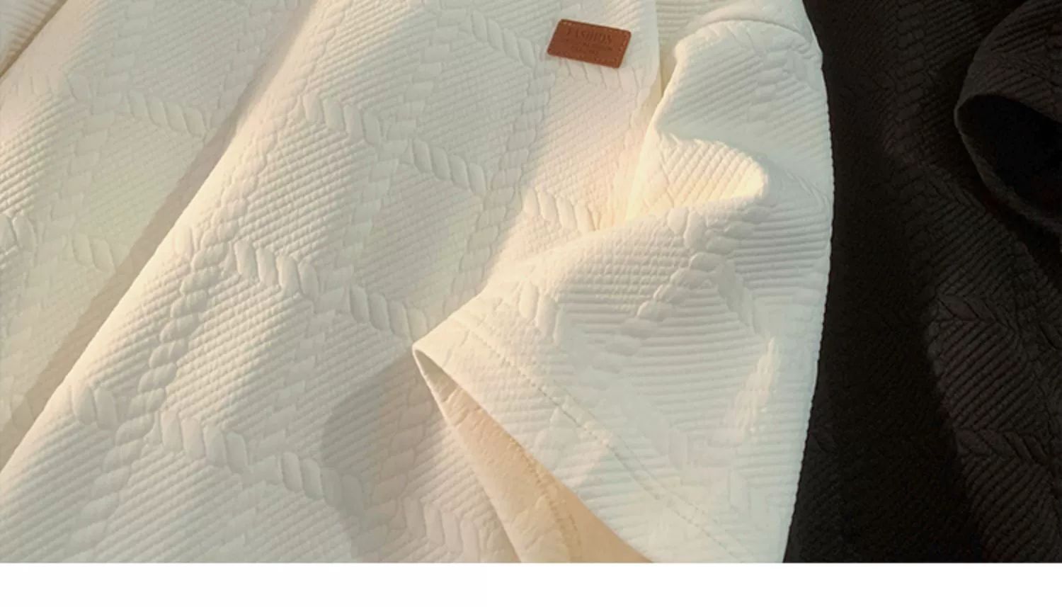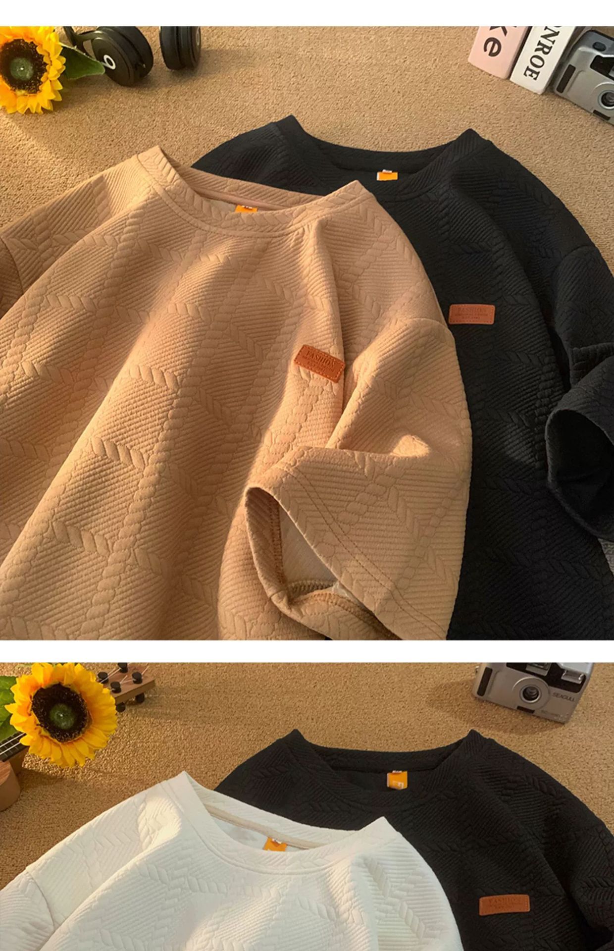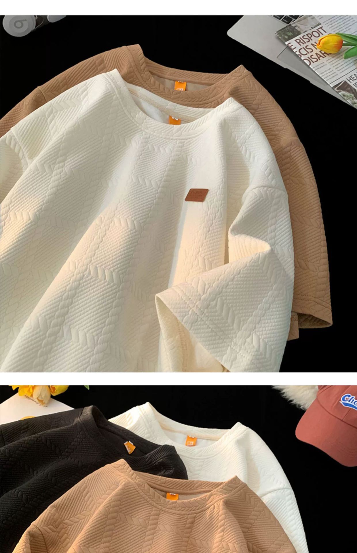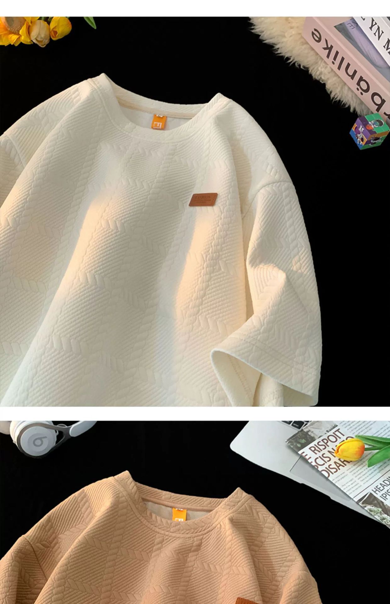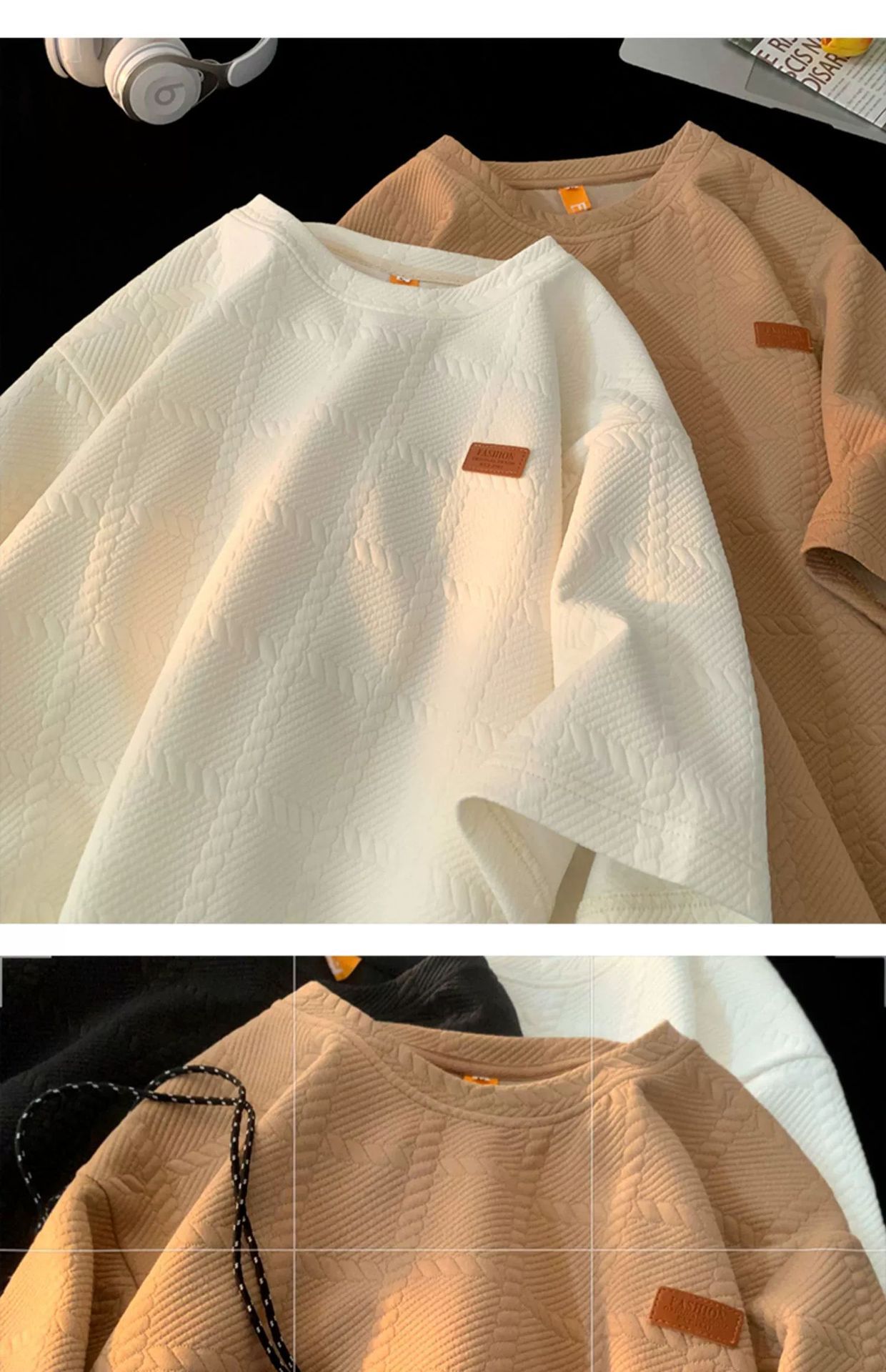 남성용 텍스처 자카드 헤비 반팔 티셔츠 여름 플러스 사이즈 느슨한 라운드 넥 캐주얼 5 점 티셔츠 반팔스토어 가기