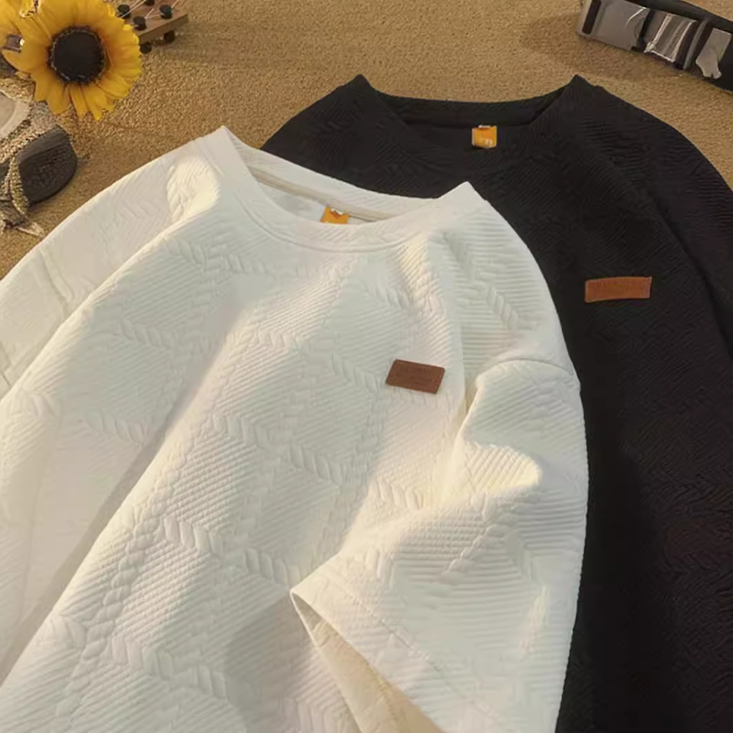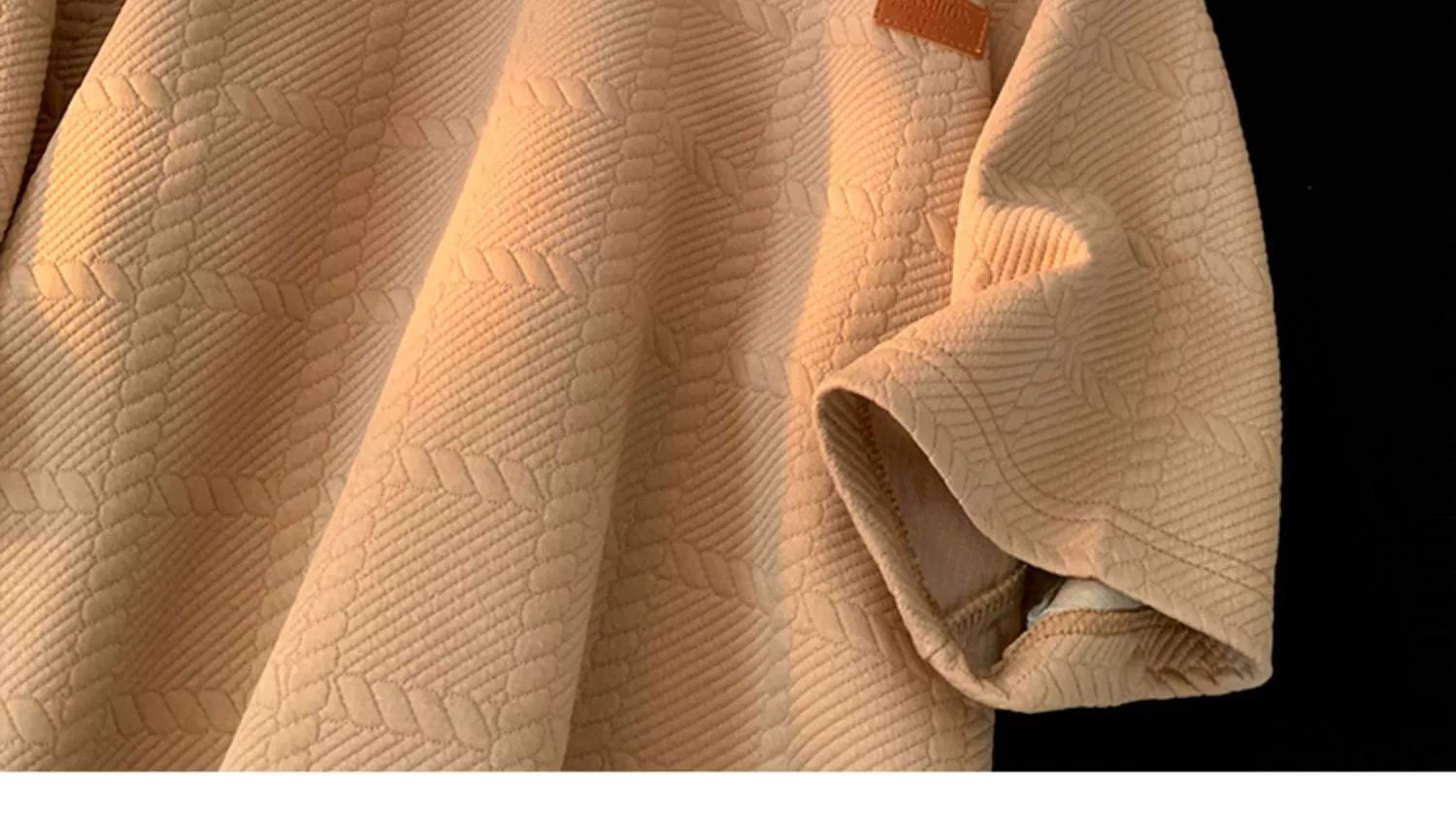남성용 텍스처 자카드 헤비 반팔 티셔츠 여름 플러스 사이즈 느슨한 라운드 넥 캐주얼 5 점 티셔츠 반팔