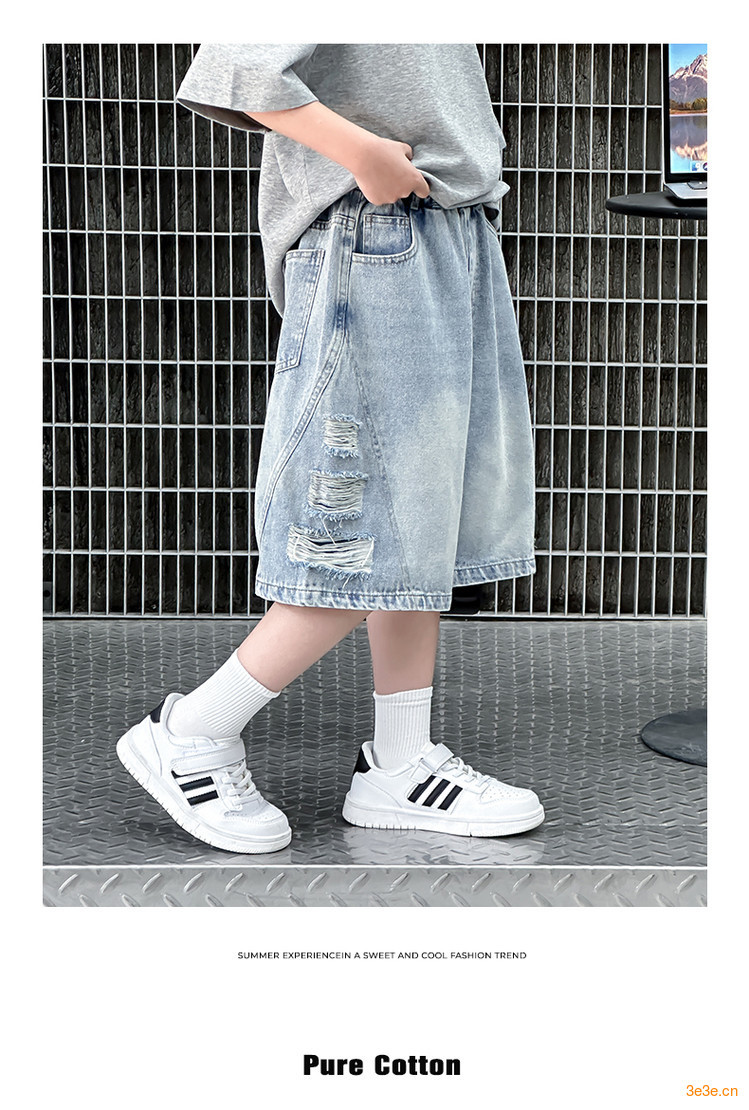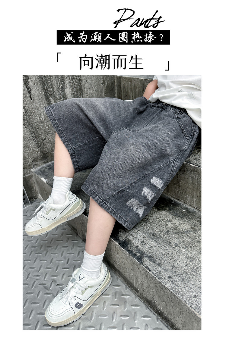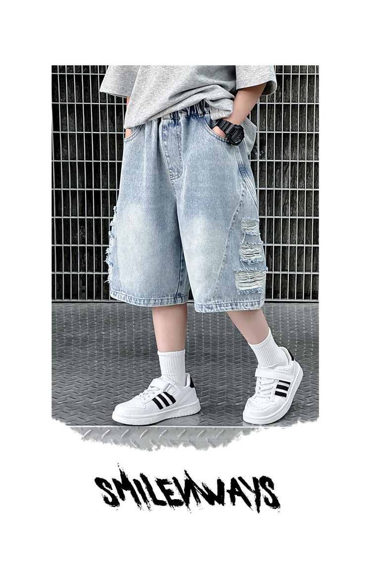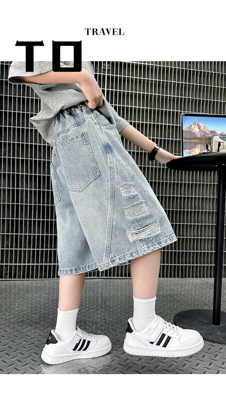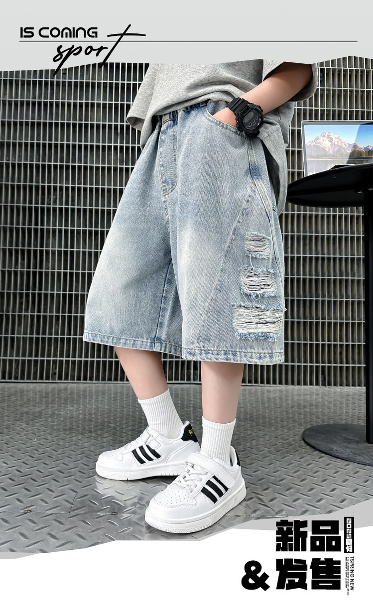 남아용 찢어진 청바지 여름 패셔너블 반바지 2025년 신형 큰 아동용 루즈한 5부 바지 다용도 중간 길이 바지 대외 무역스토어 가기