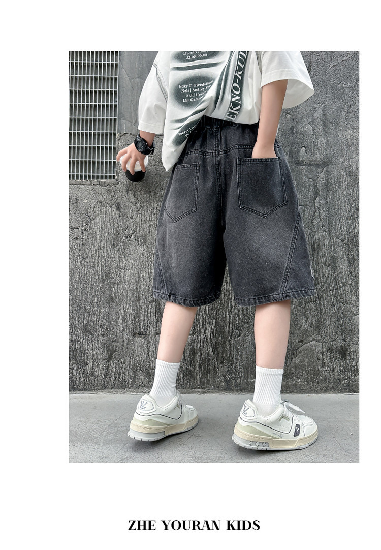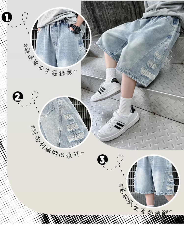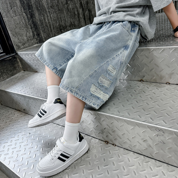남아용 찢어진 청바지 여름 패셔너블 반바지 2025년 신형 큰 아동용 루즈한 5부 바지 다용도 중간 길이 바지 대외 무역