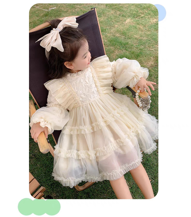 여자 봄, 가을 드레스 어린 소녀 공주 드레스 생일 드레스 퍼프 스커트 유행 레이스 로리타 드레스 유행스토어 가기