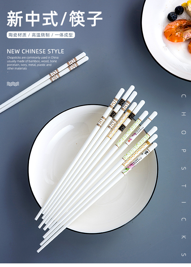 ✅ 세라믹 젓가락 가정용 세척 용이 세라믹 젓가락 북유럽 금장 세라믹 식기 젓가락 10쌍 연례 선물 도매스토어 가기