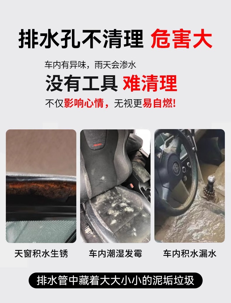 자동차 선루프 배수구 막힘 방지기 2m 방향 배수구 파이프 세척 도구 누수 막힘 청소 브러쉬스토어 가기