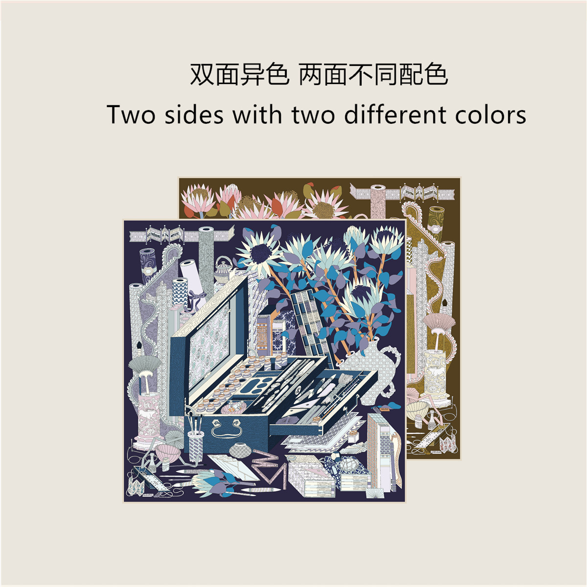 새로운 오리지널 양면 이색 53 실크 스카프 시뮬레이션 실크 스카프 한국 여름 장식 다용도 스퀘어 스카프 머리띠 하이 엔드스토어 가기