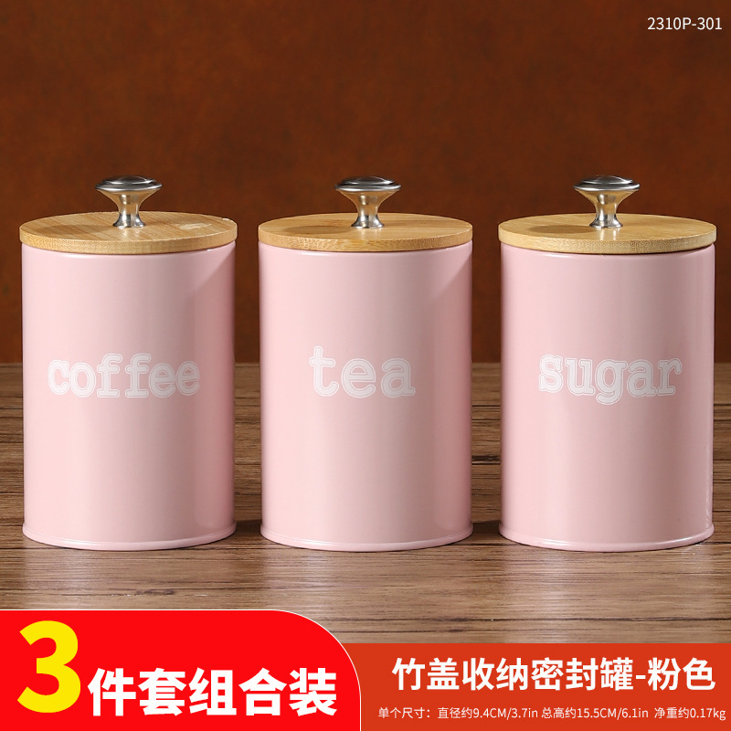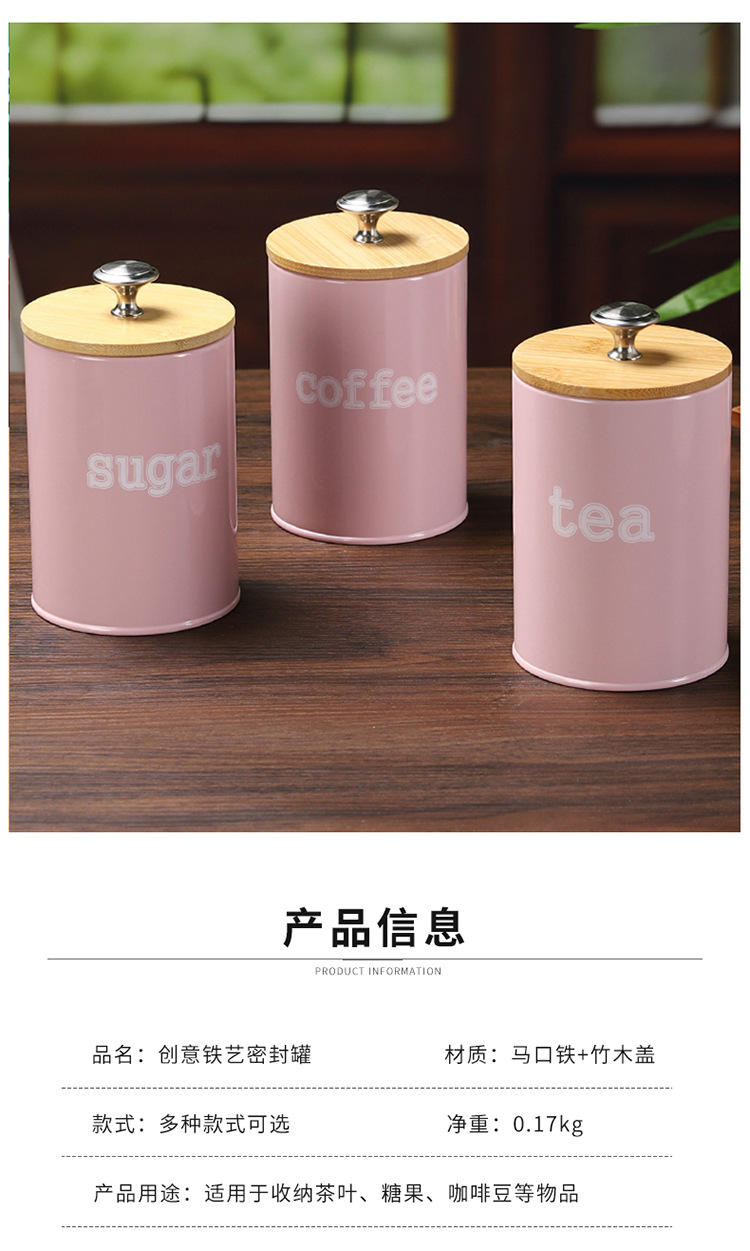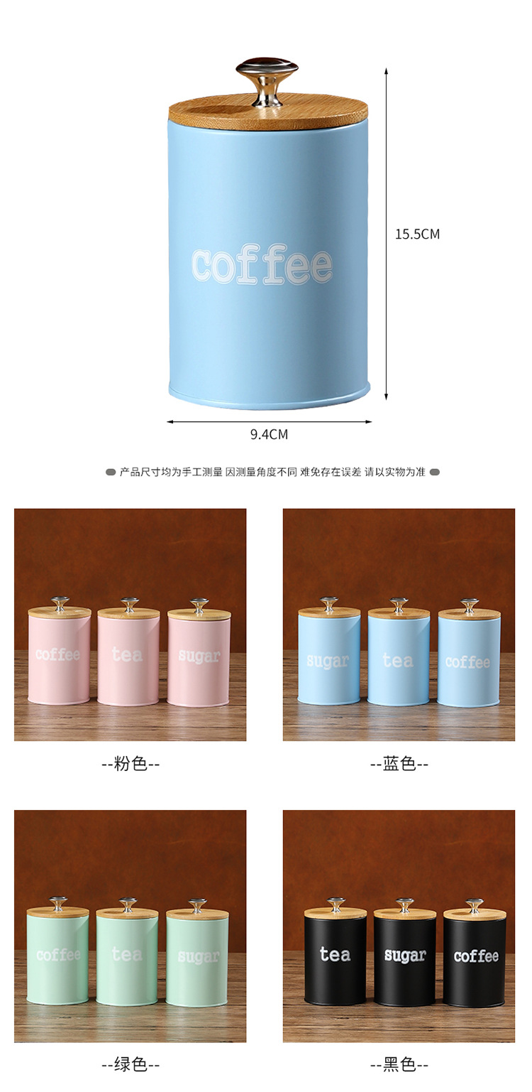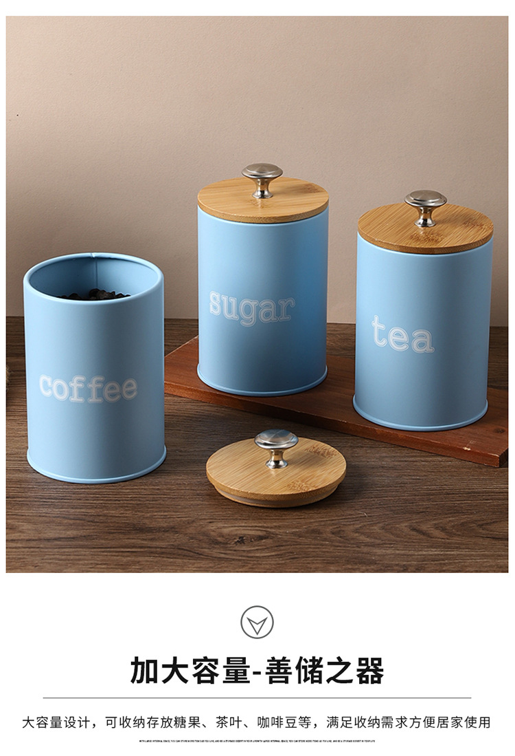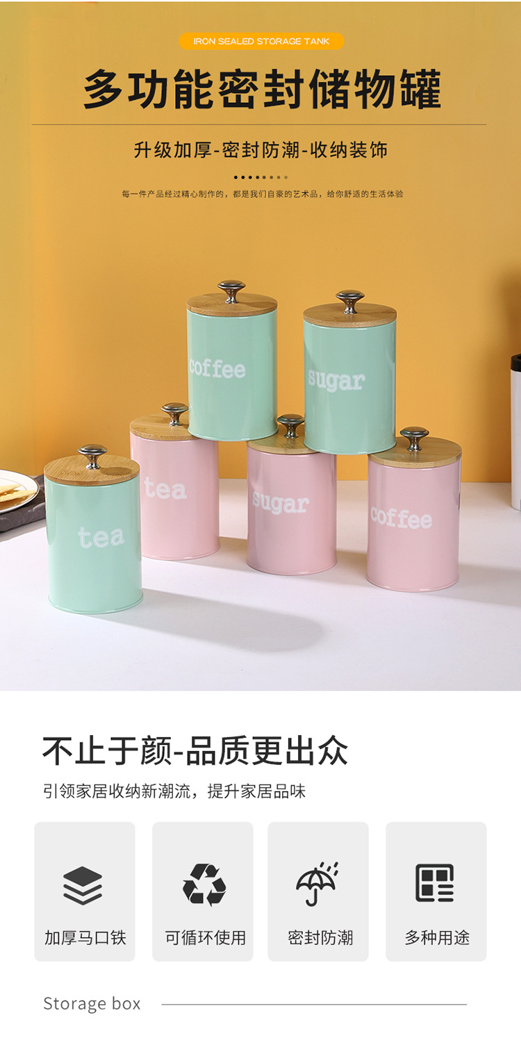 다기능 밀봉 된 저장 항아리 스타일 커피 차 사탕 저장 철 항아리 대나무 뚜껑 주방 조미료 보관 항아리