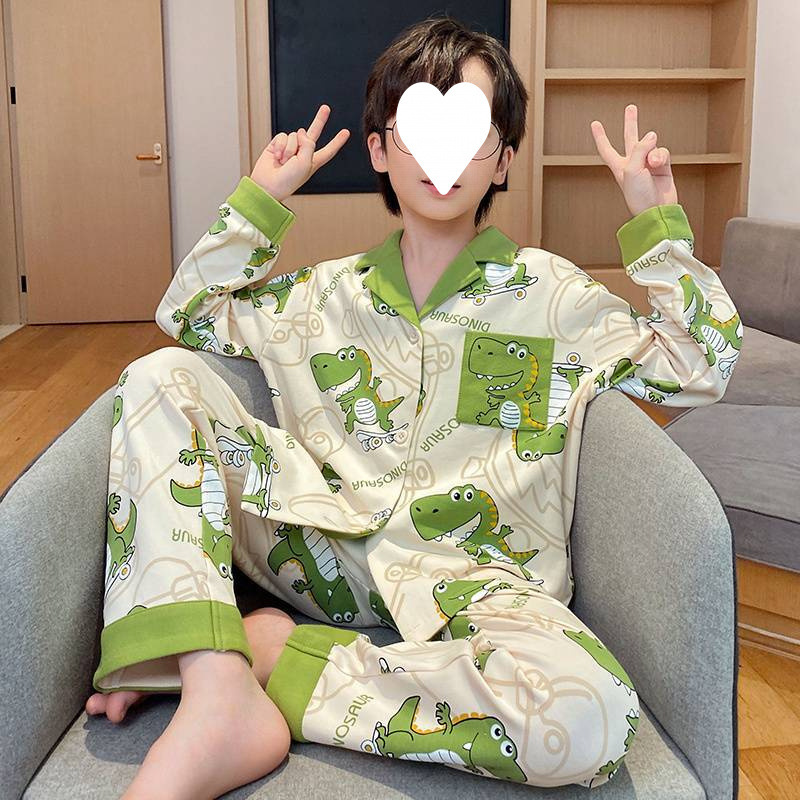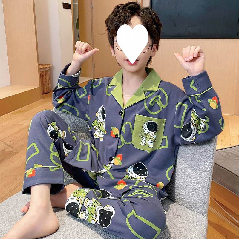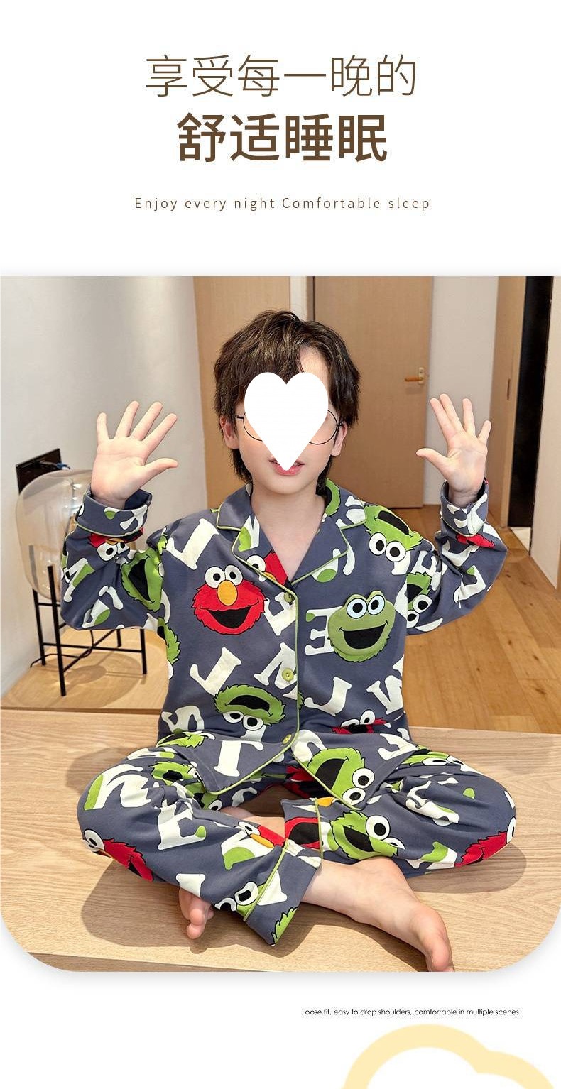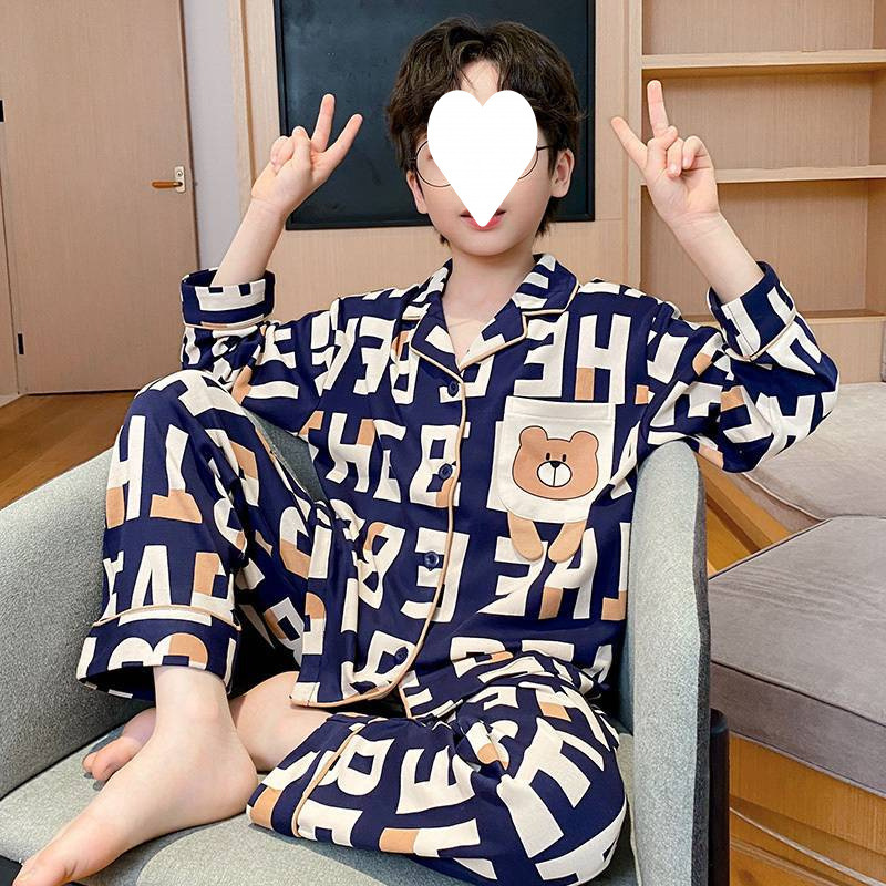 남아용 아동용 잠옷, 남아용 면 긴팔 봄, 가을 얇은 홈 슈트, 대형 아동용 면 에어컨 홈 내구성스토어 가기