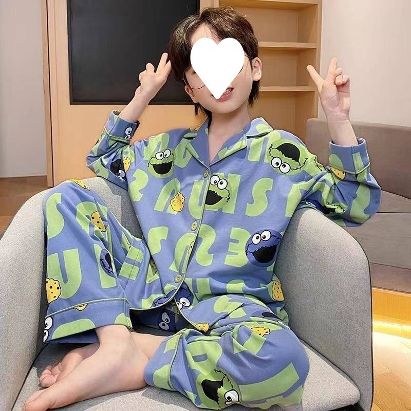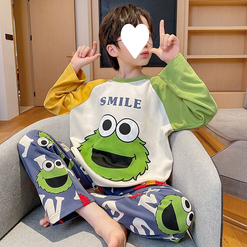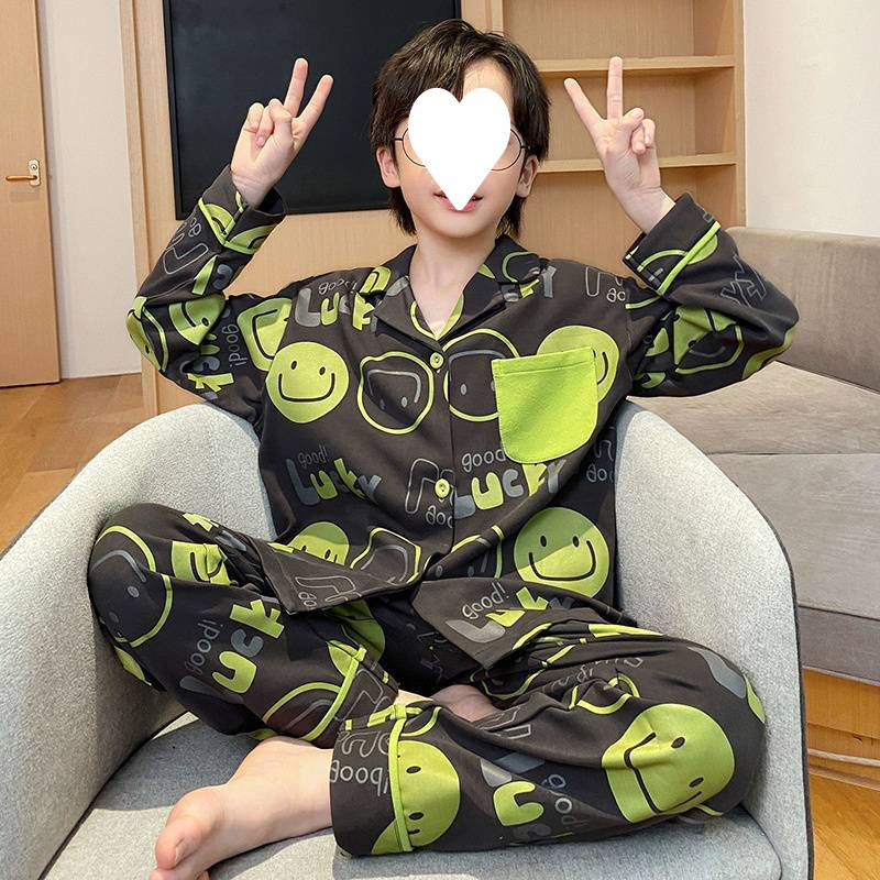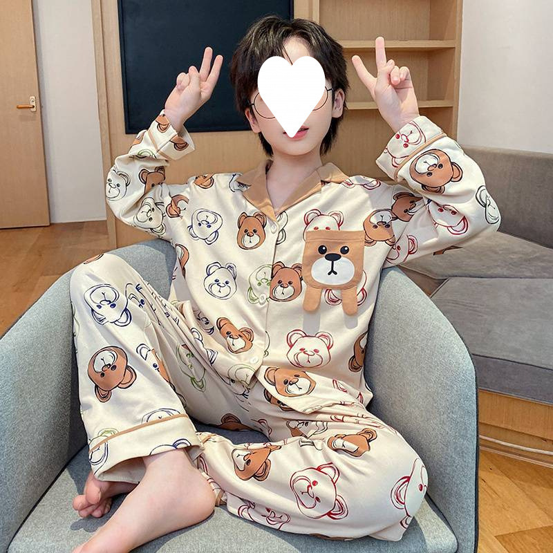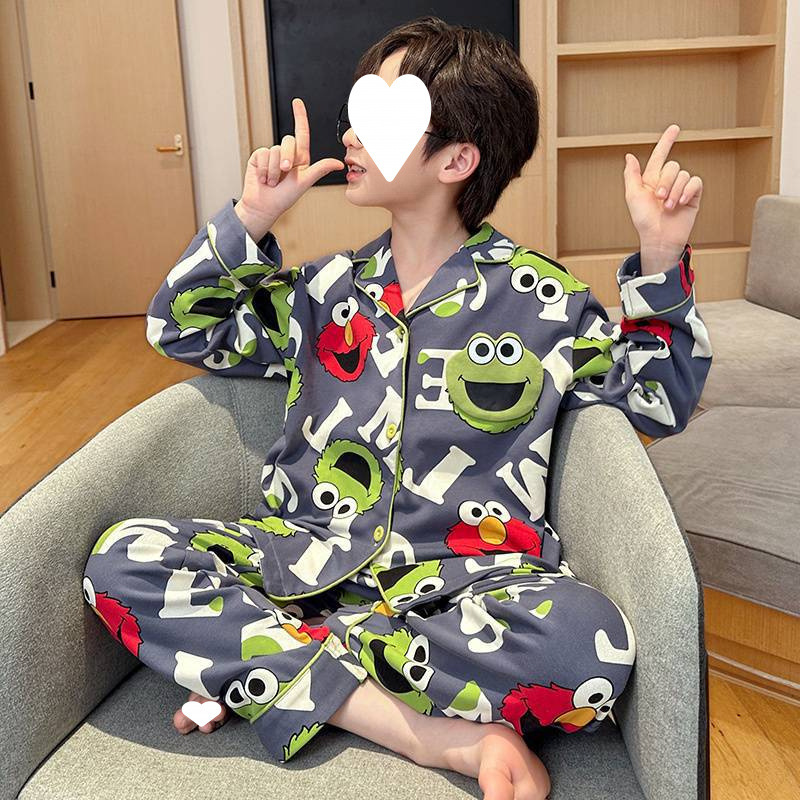 남아용 아동용 잠옷, 남아용 면 긴팔 봄, 가을 얇은 홈 슈트, 대형 아동용 면 에어컨 홈 내구성스토어 가기