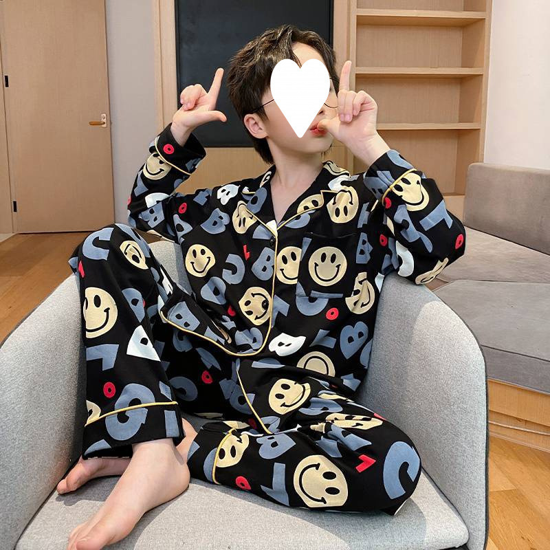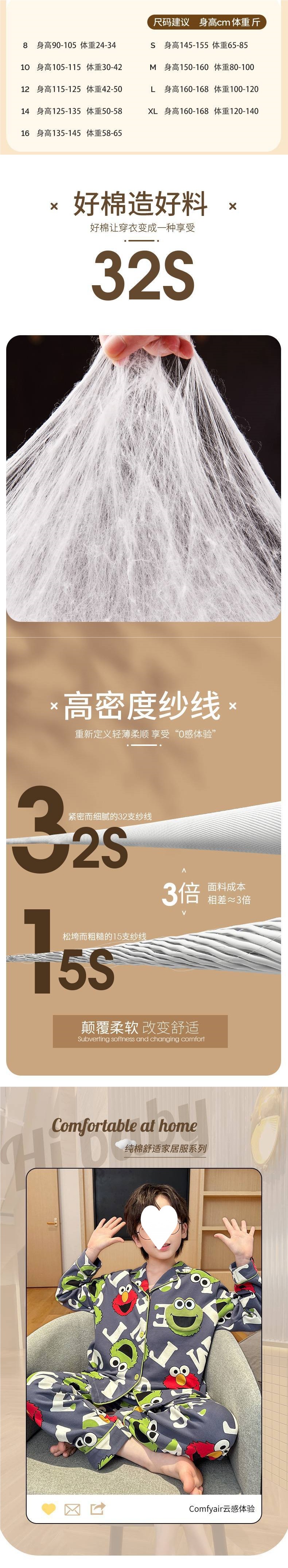 남아용 아동용 잠옷, 남아용 면 긴팔 봄, 가을 얇은 홈 슈트, 대형 아동용 면 에어컨 홈 내구성
