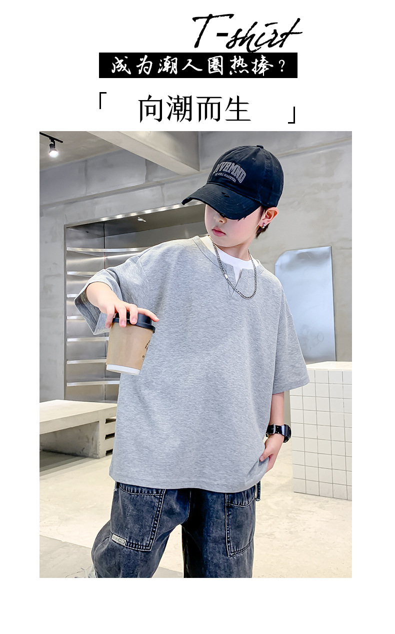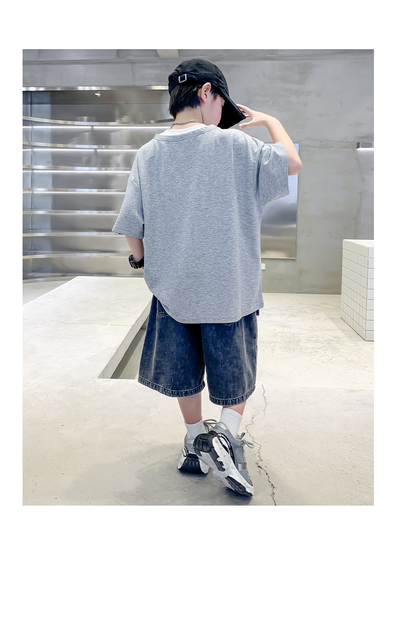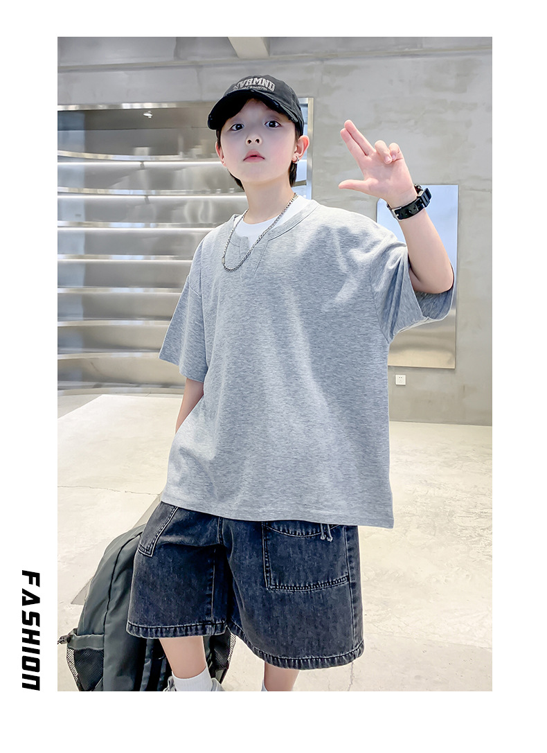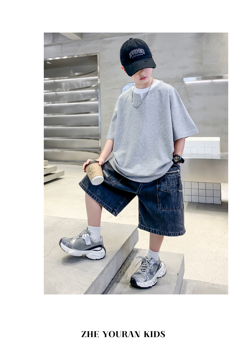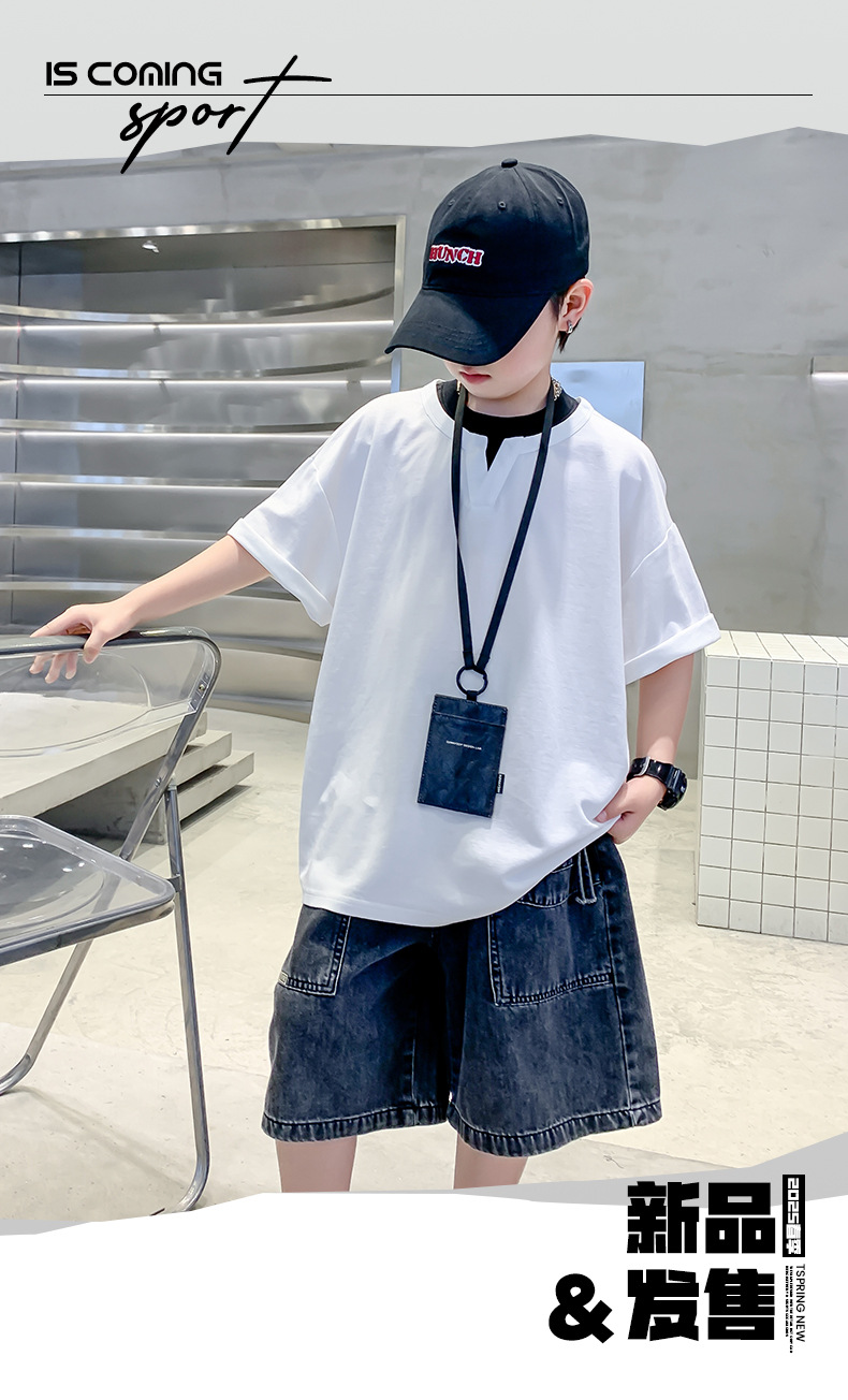남자들의 여름 반팔 티셔츠 2025 대형 어린이와 소년을위한 새로운 여름 원피스 여름 탑 얇은 멋진 핸섬 트렌디 티셔츠스토어 가기