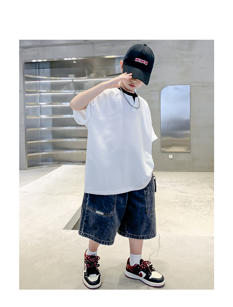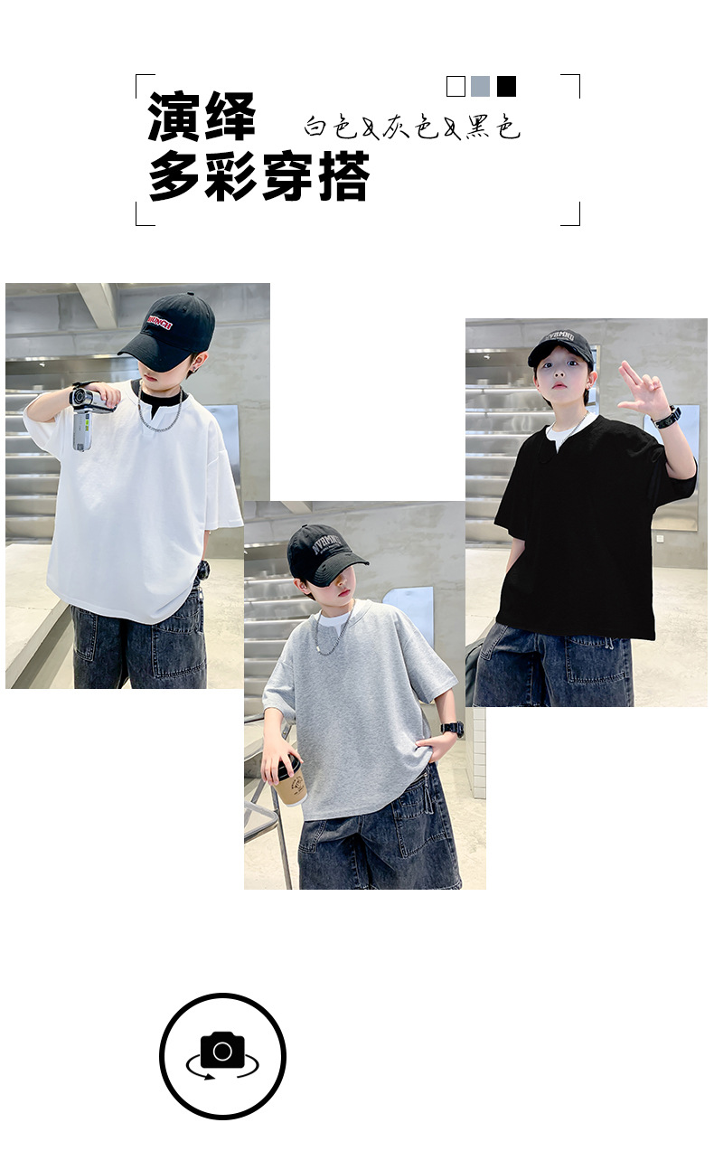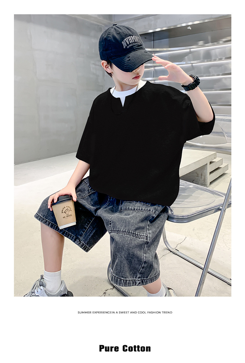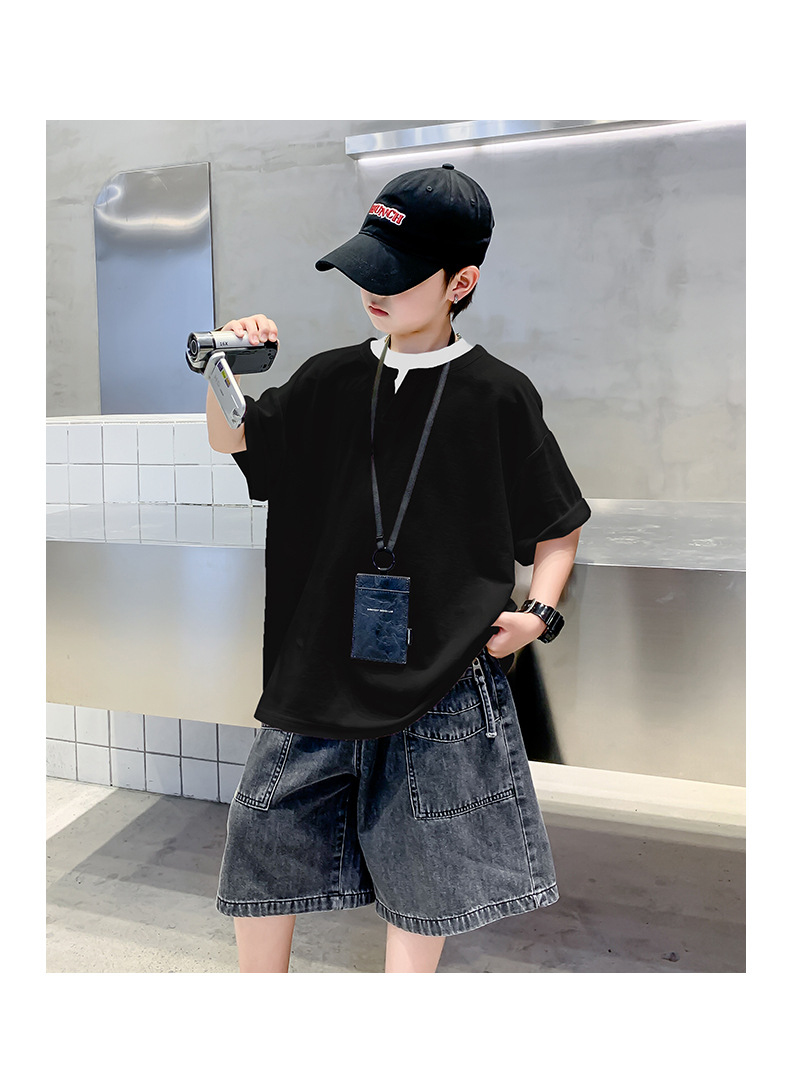 남자들의 여름 반팔 티셔츠 2025 대형 어린이와 소년을위한 새로운 여름 원피스 여름 탑 얇은 멋진 핸섬 트렌디 티셔츠스토어 가기