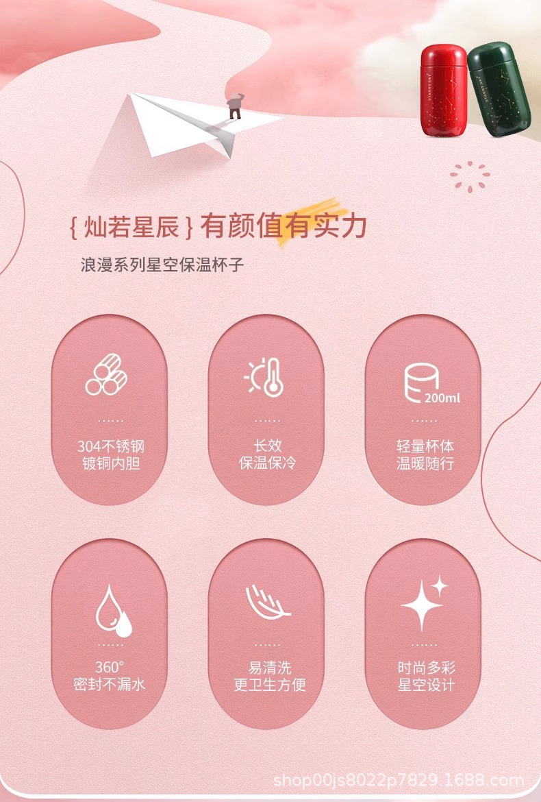 별빛컵 304 스테인리스 계란형 미니 귀여운 이중 진공 단열컵 휴대용 소형 커플용스토어 가기