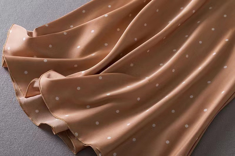 • 새틴 실크 잠옷 - 옐로우 브라운 폴카 도트 스타일