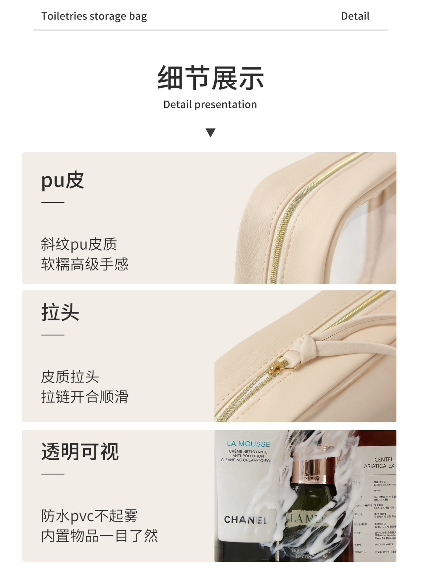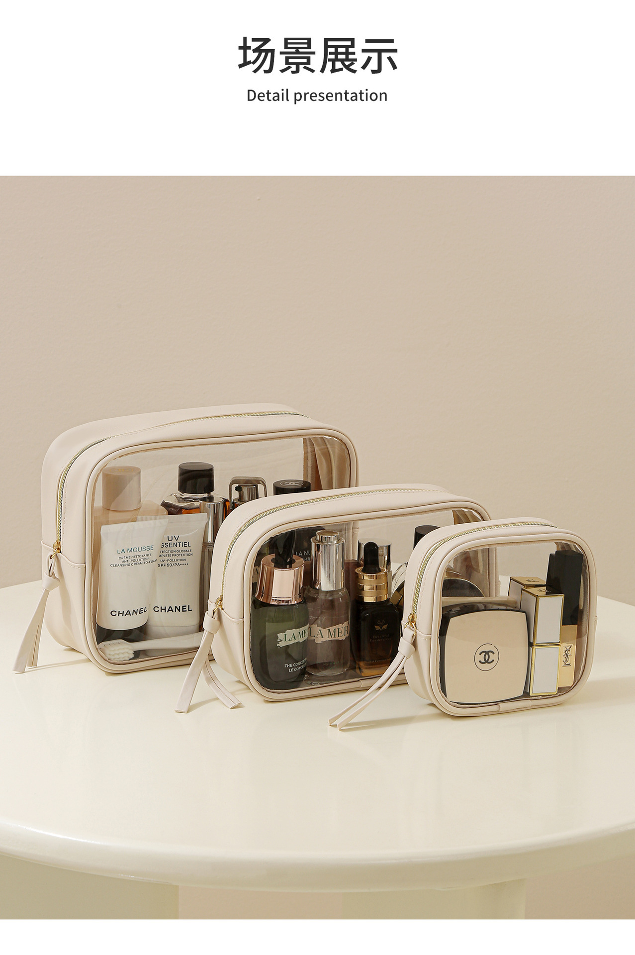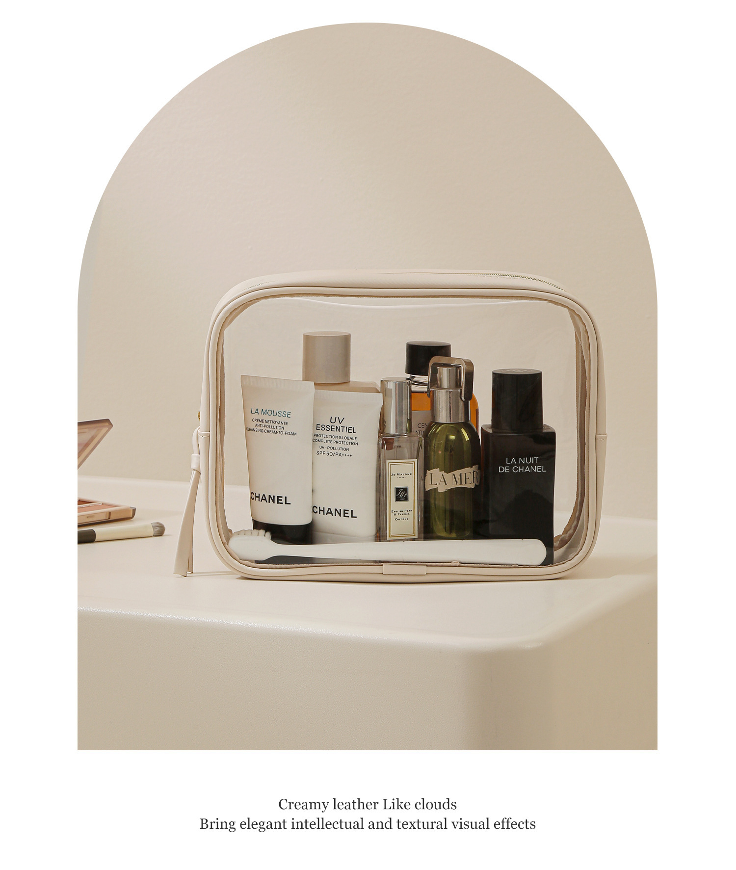 고투명 PU 화장품 수납 가방, 고급스러운 대용량 수납, 휴대용 방수 방진 립스틱 화장품 가방스토어 가기