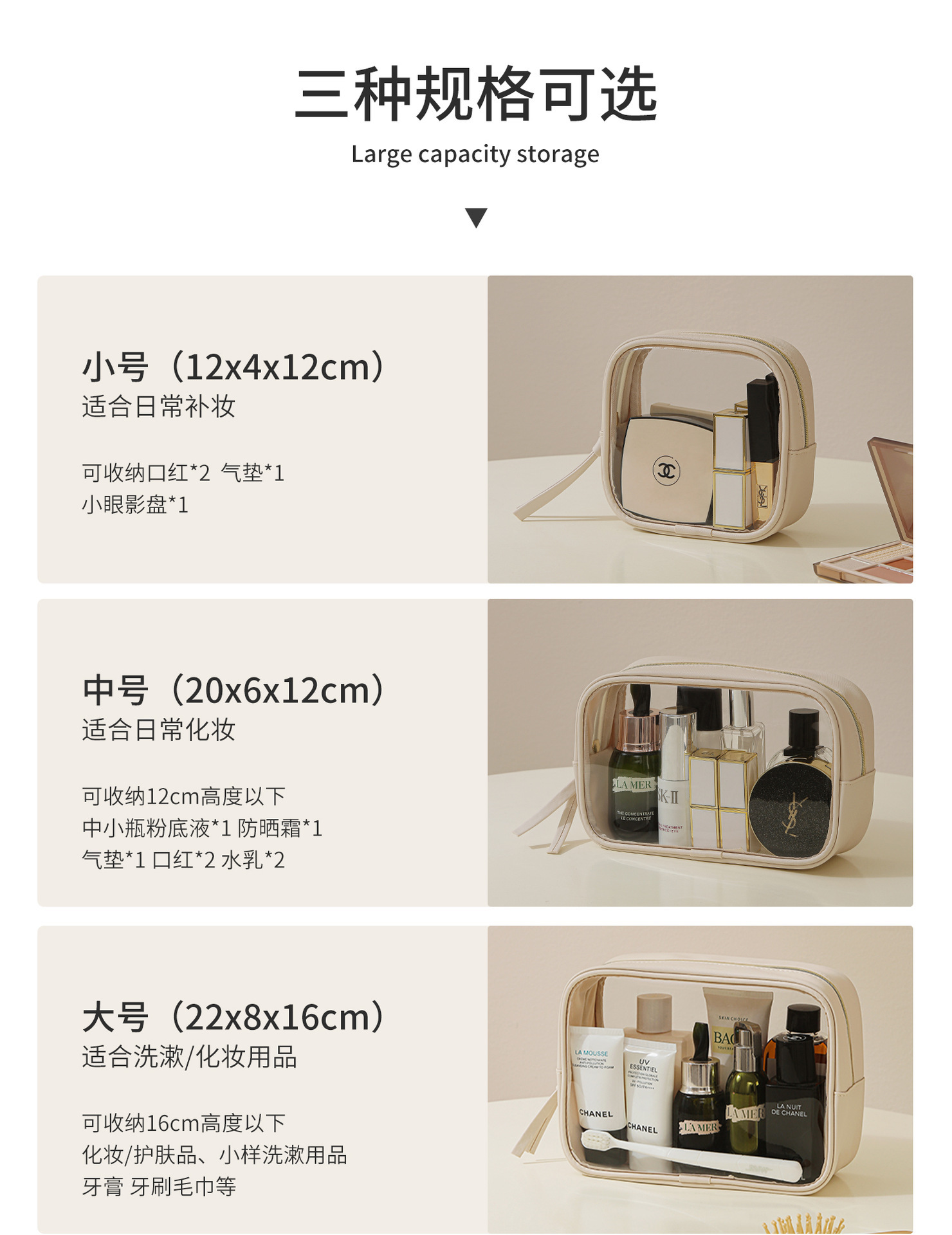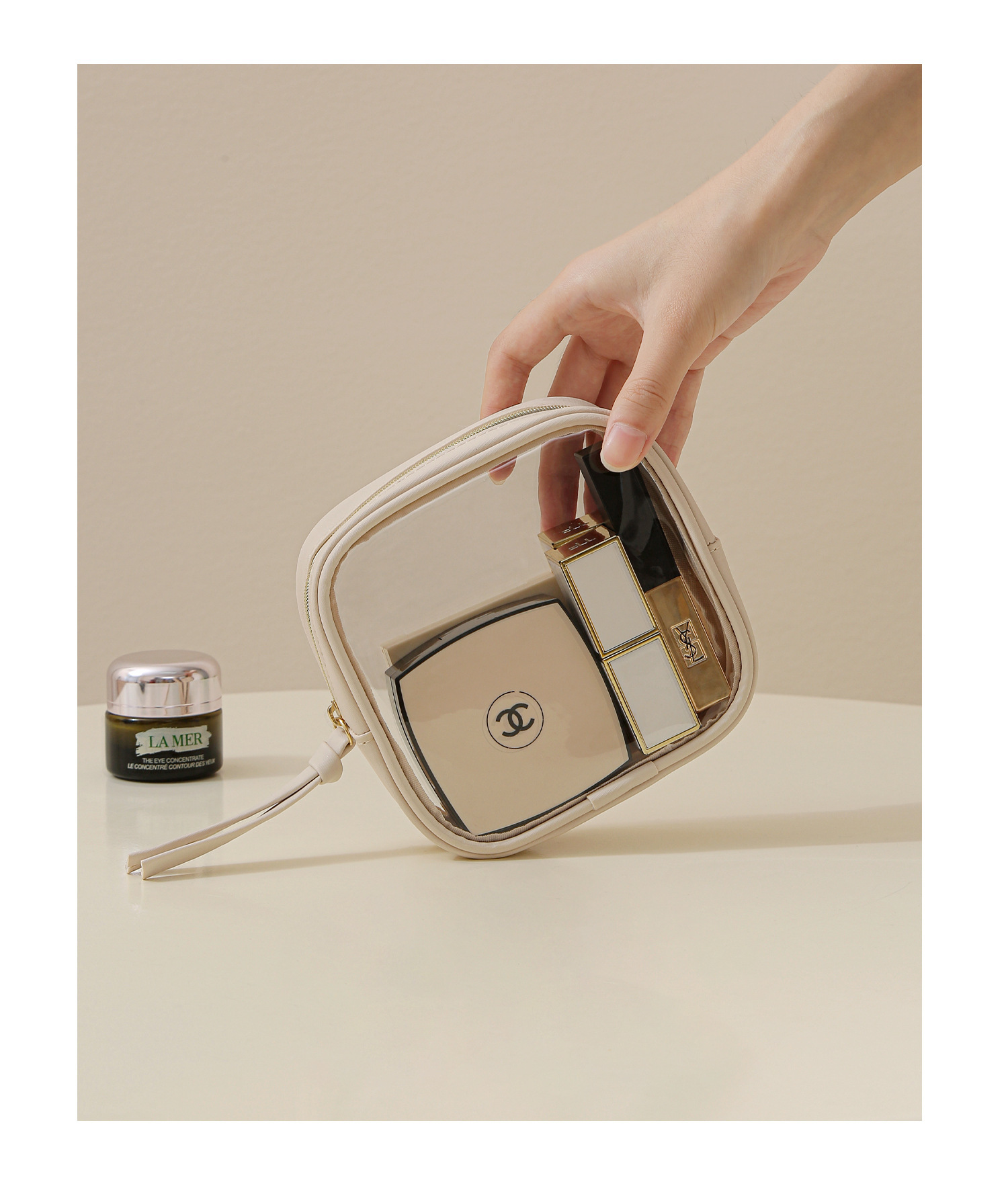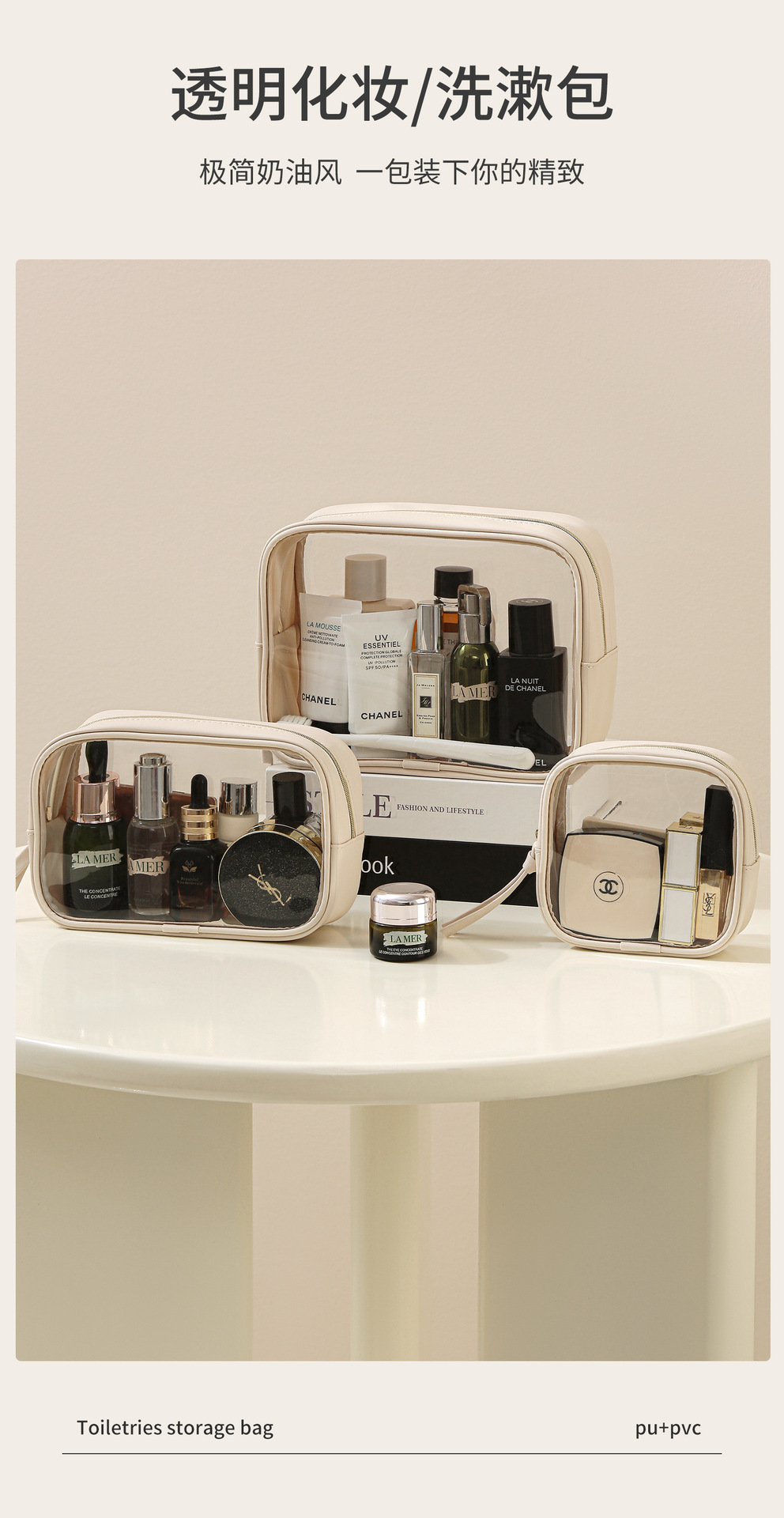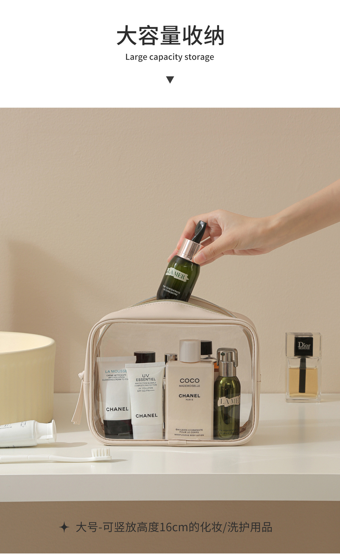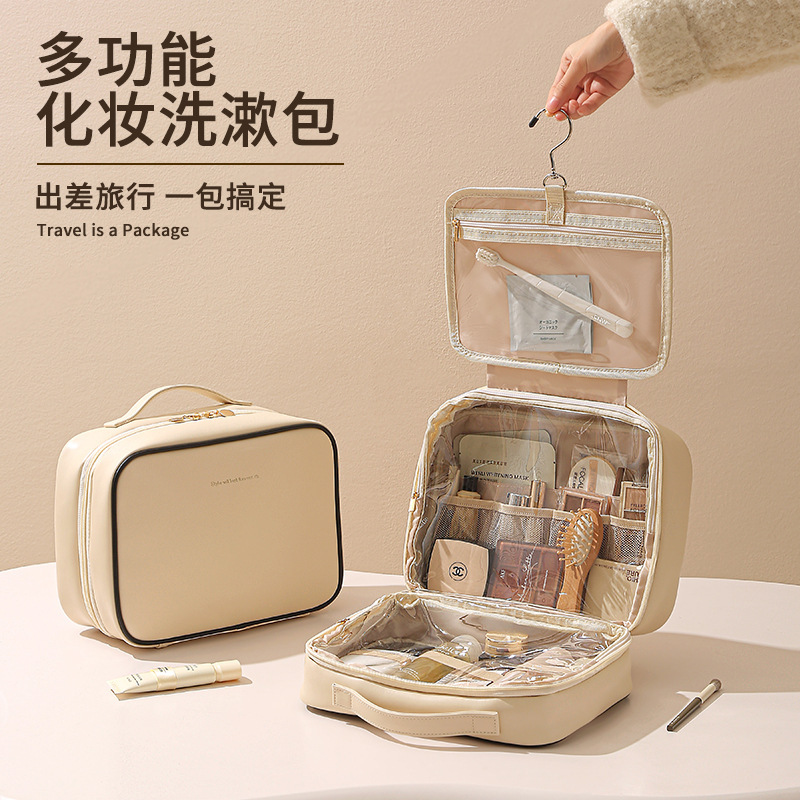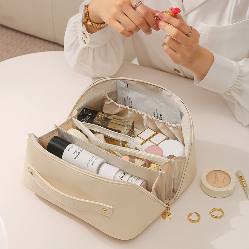 고투명 PU 화장품 수납 가방, 고급스러운 대용량 수납, 휴대용 방수 방진 립스틱 화장품 가방