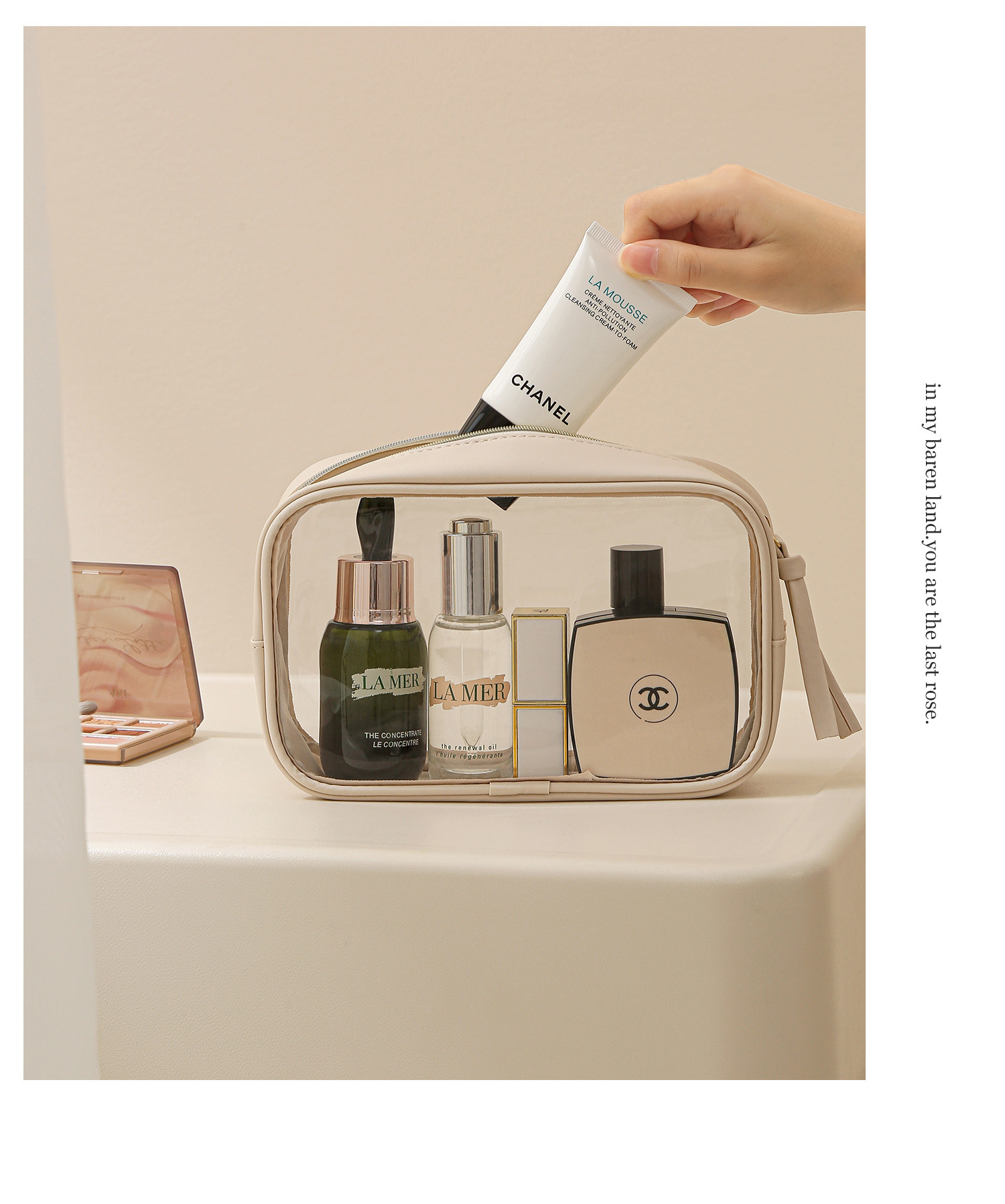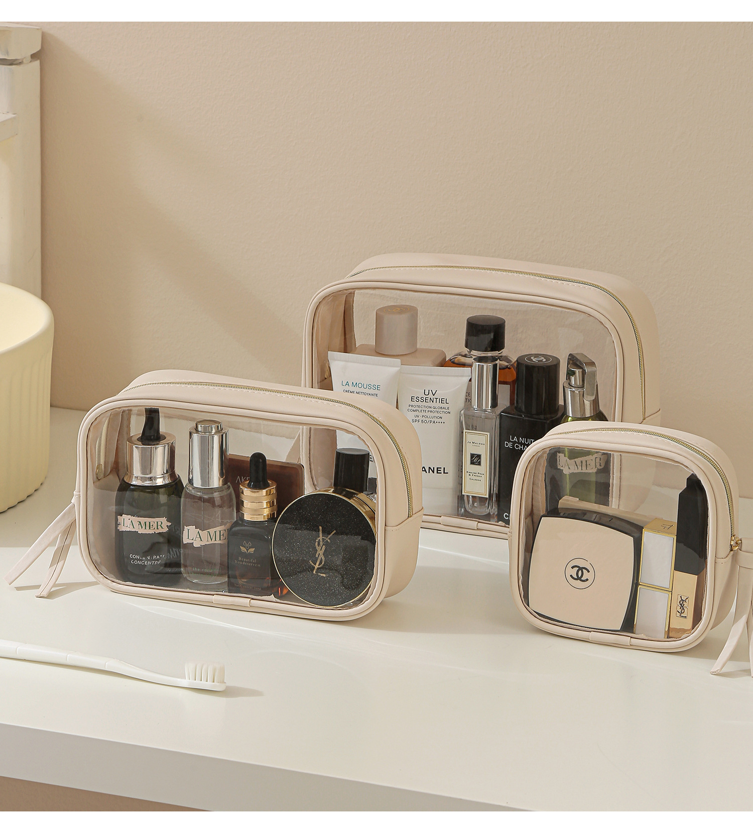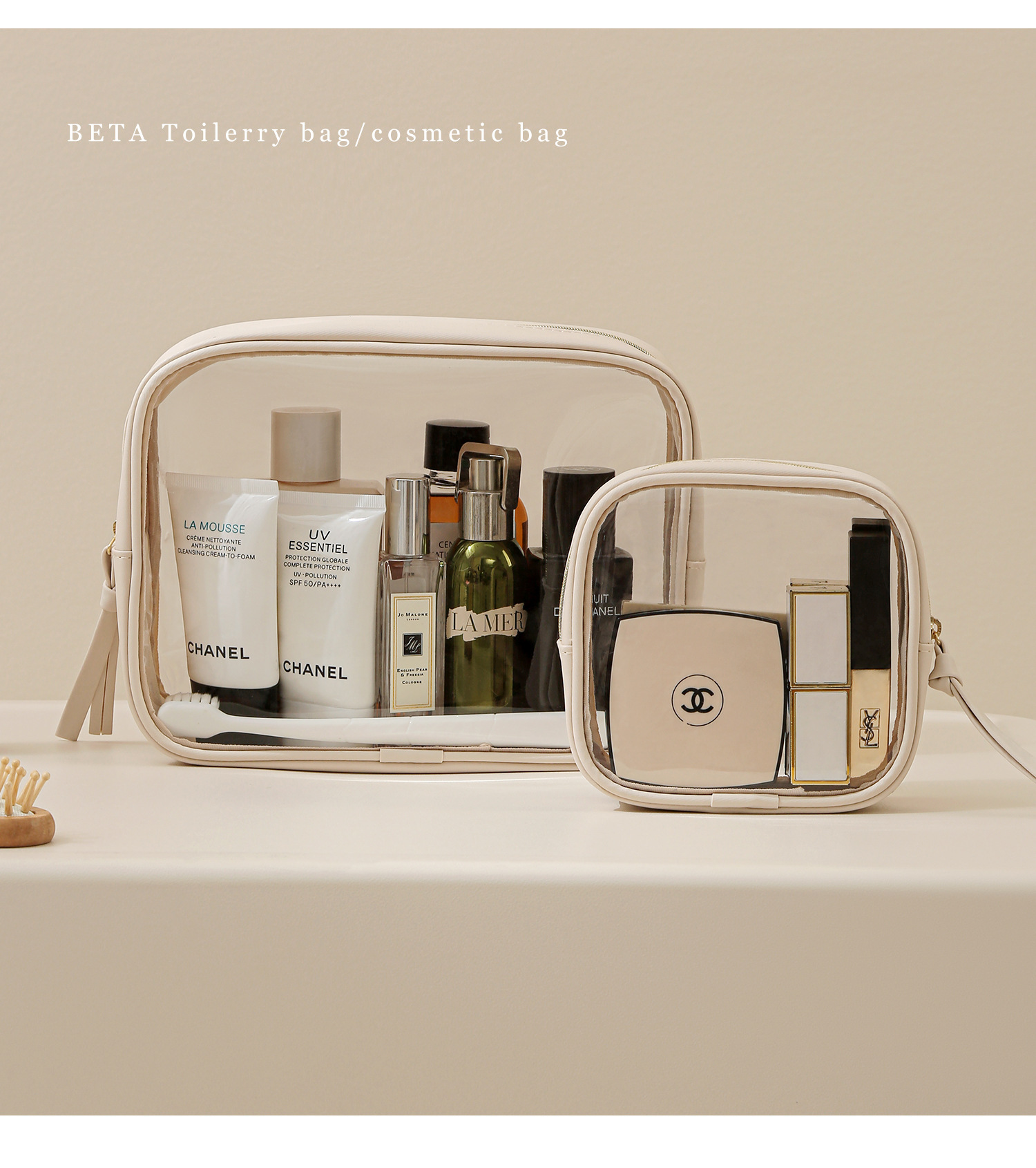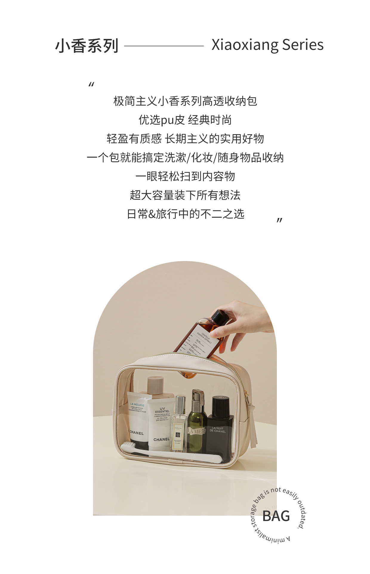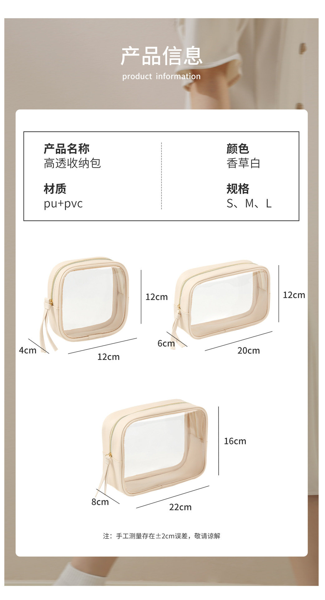 고투명 PU 화장품 수납 가방, 고급스러운 대용량 수납, 휴대용 방수 방진 립스틱 화장품 가방