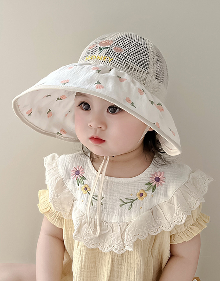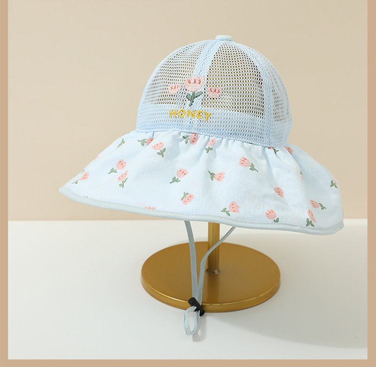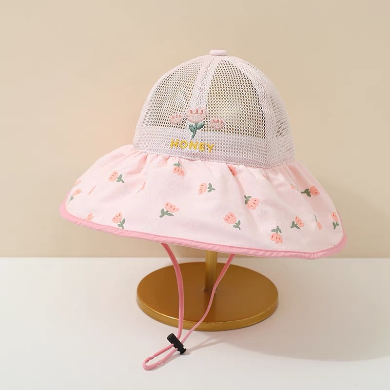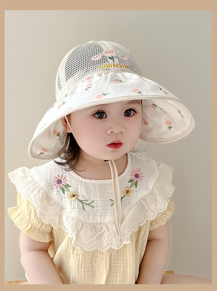 어린이 모자 2025 여름 얇은 통기성 메쉬 큰 브림 선스크린 모자 아기 소녀 달콤한 어부 모자