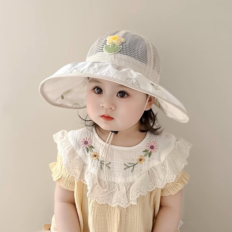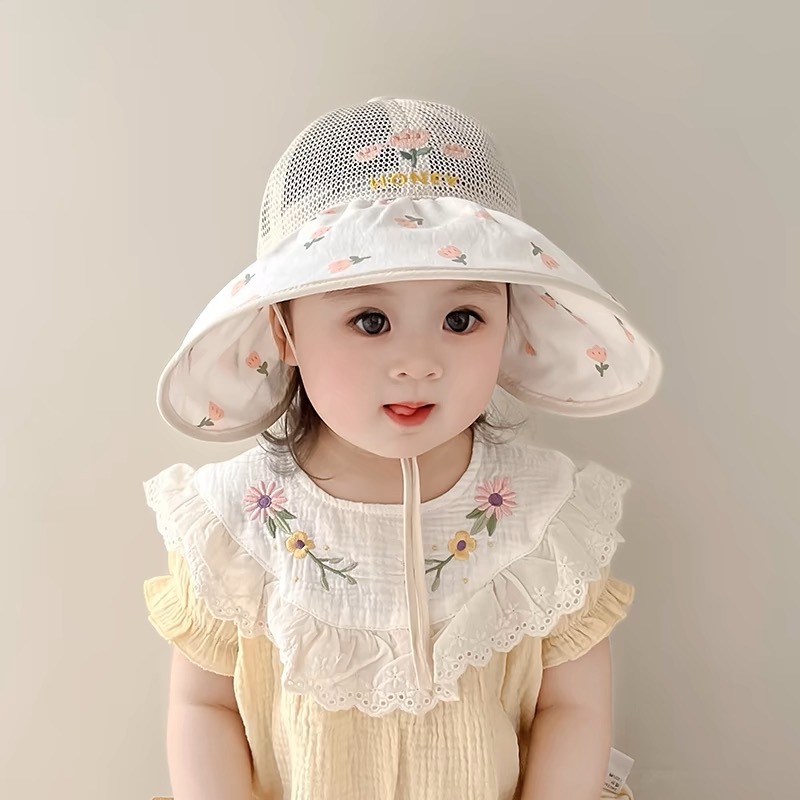 어린이 모자 2025 여름 얇은 통기성 메쉬 큰 브림 선스크린 모자 아기 소녀 달콤한 어부 모자스토어 가기